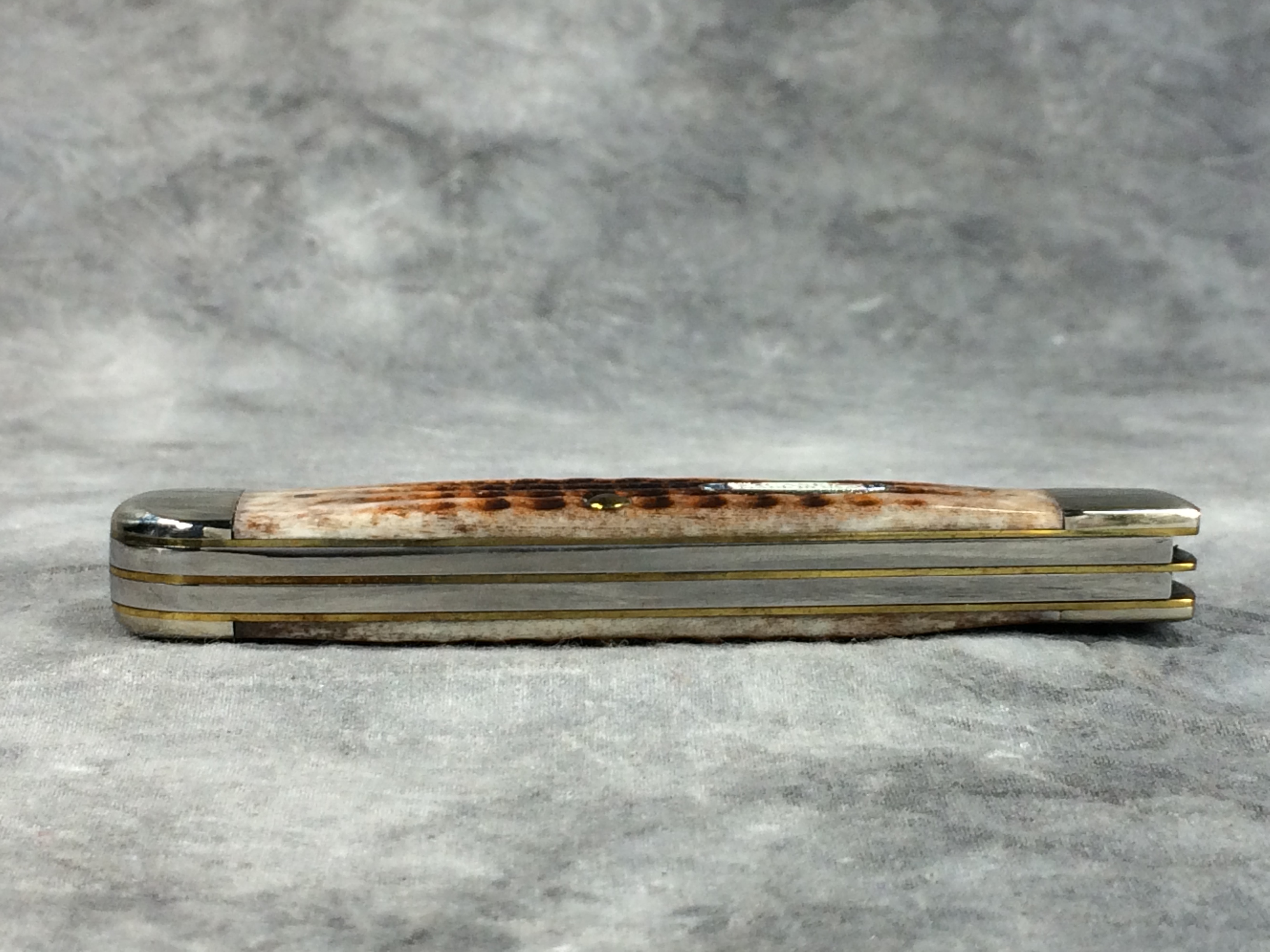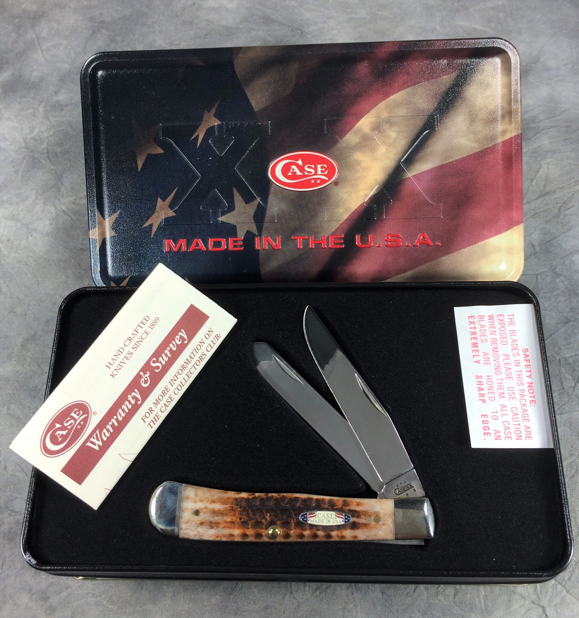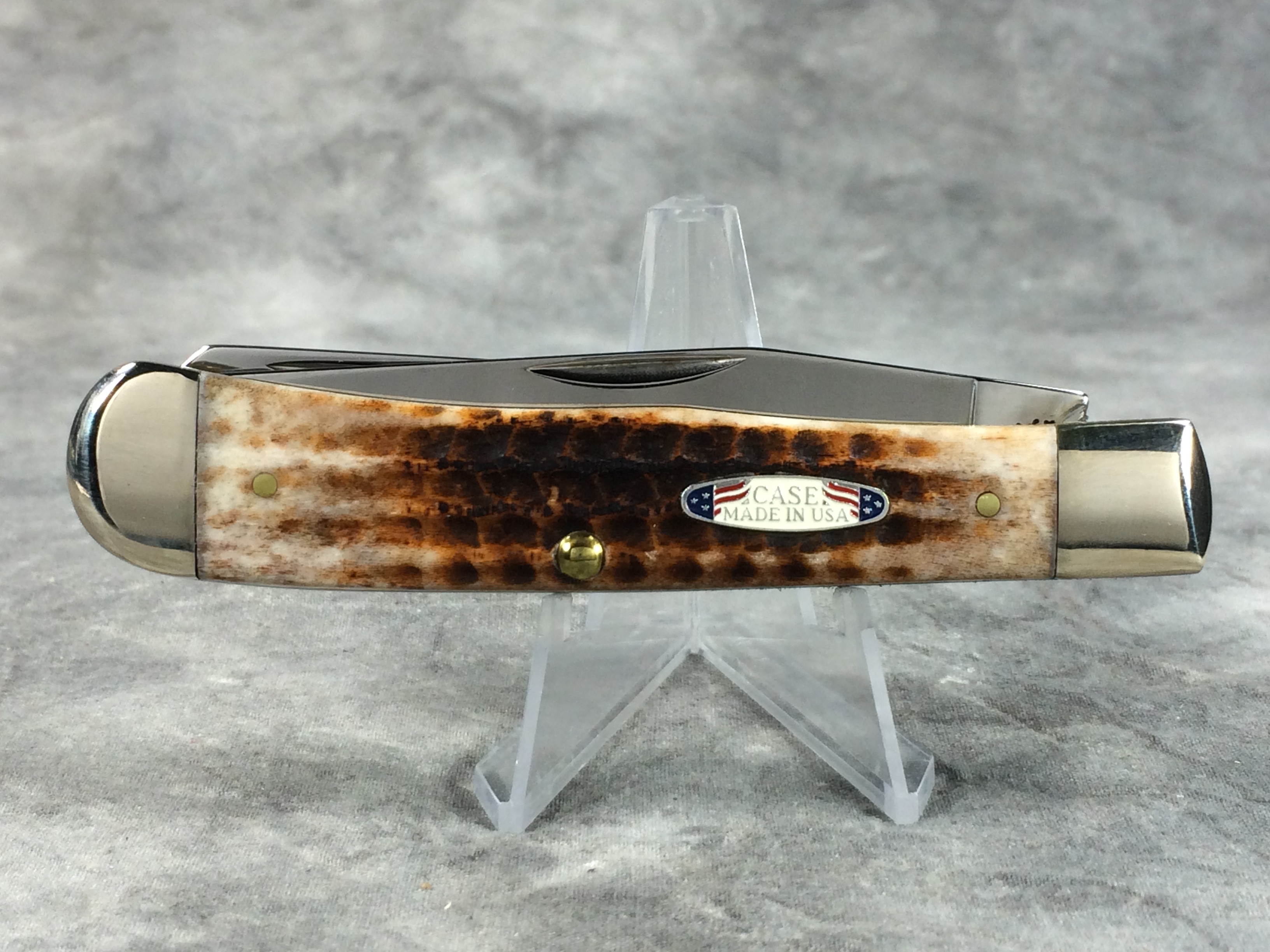 November 06, 2025 - 4-1/4 inches closed. 7-7/8 inches open. Made in USA. "  x*x  CASE XX  x x x  " (with lightning bolt S) and "USA 6254 SS" tang stamps. Oval "CASE MADE IN USA" shield. Stainless Steel blades. Jigged Honey Brown Bone handle. Nickel Silver bolsters. Brass liner.