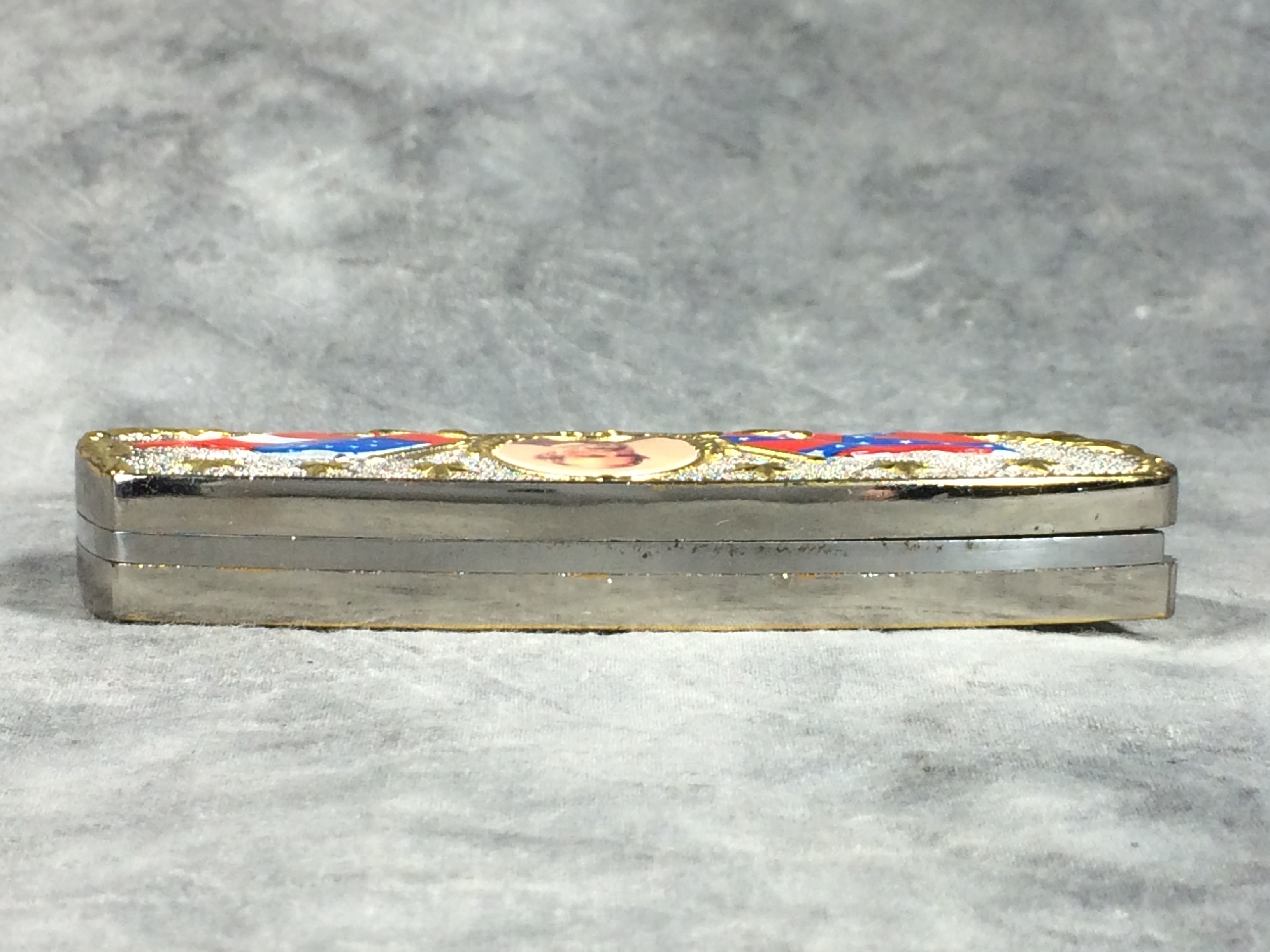 March 09, 2026 - 4-1/4 inches closed, 7-1/4 inches open. "CHINA" tang stamp. Very ornate handle with with image of Robert E. Lee. Blade etched "Gen. Robert E. Lee 1807-1870". Comes with a sword pin in a gift tin with an image of Lee on the lid.