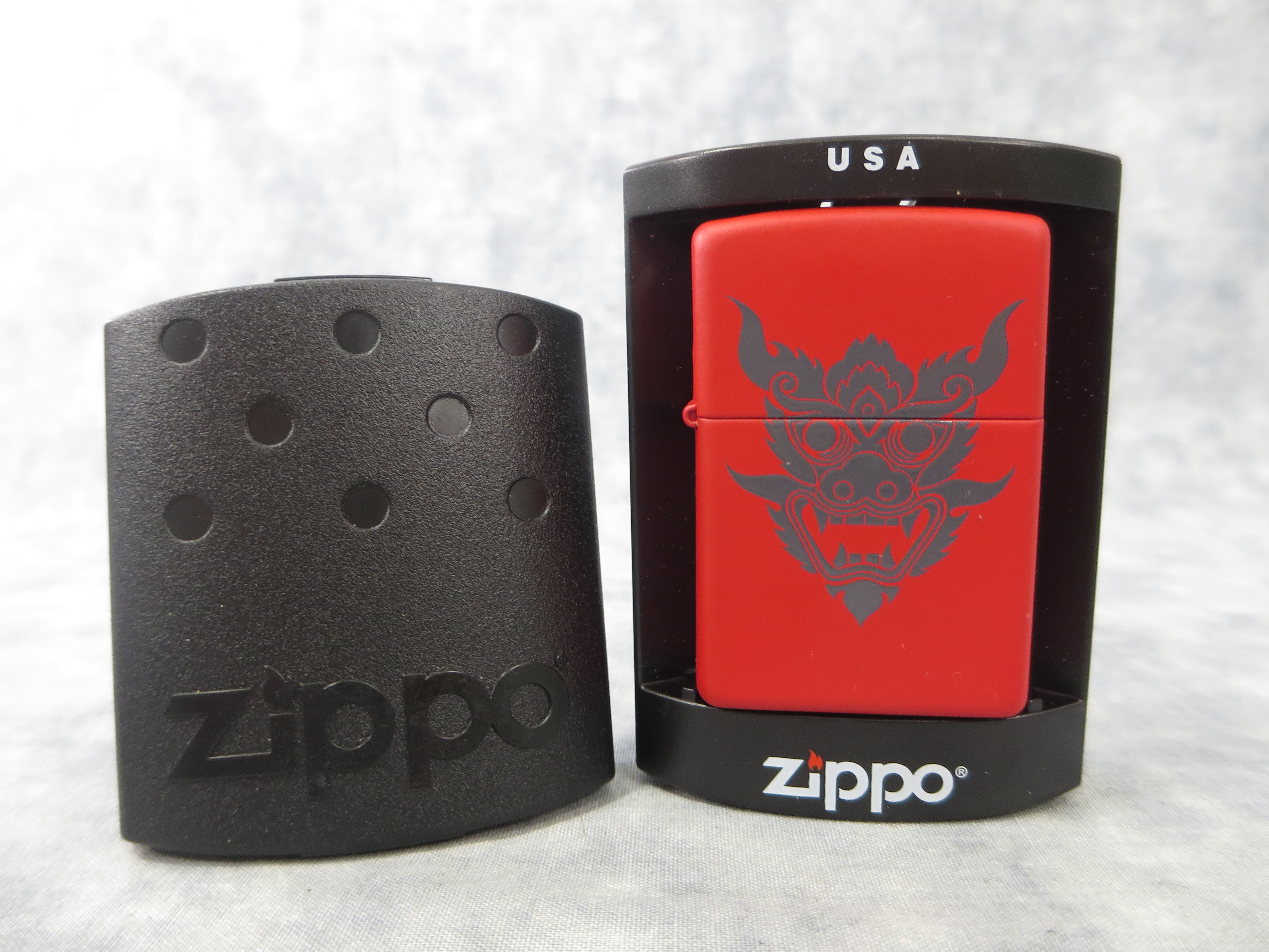 You have: ORIENTAL DRAGON FACE Matte Red Lighter (Zippo, 2003)