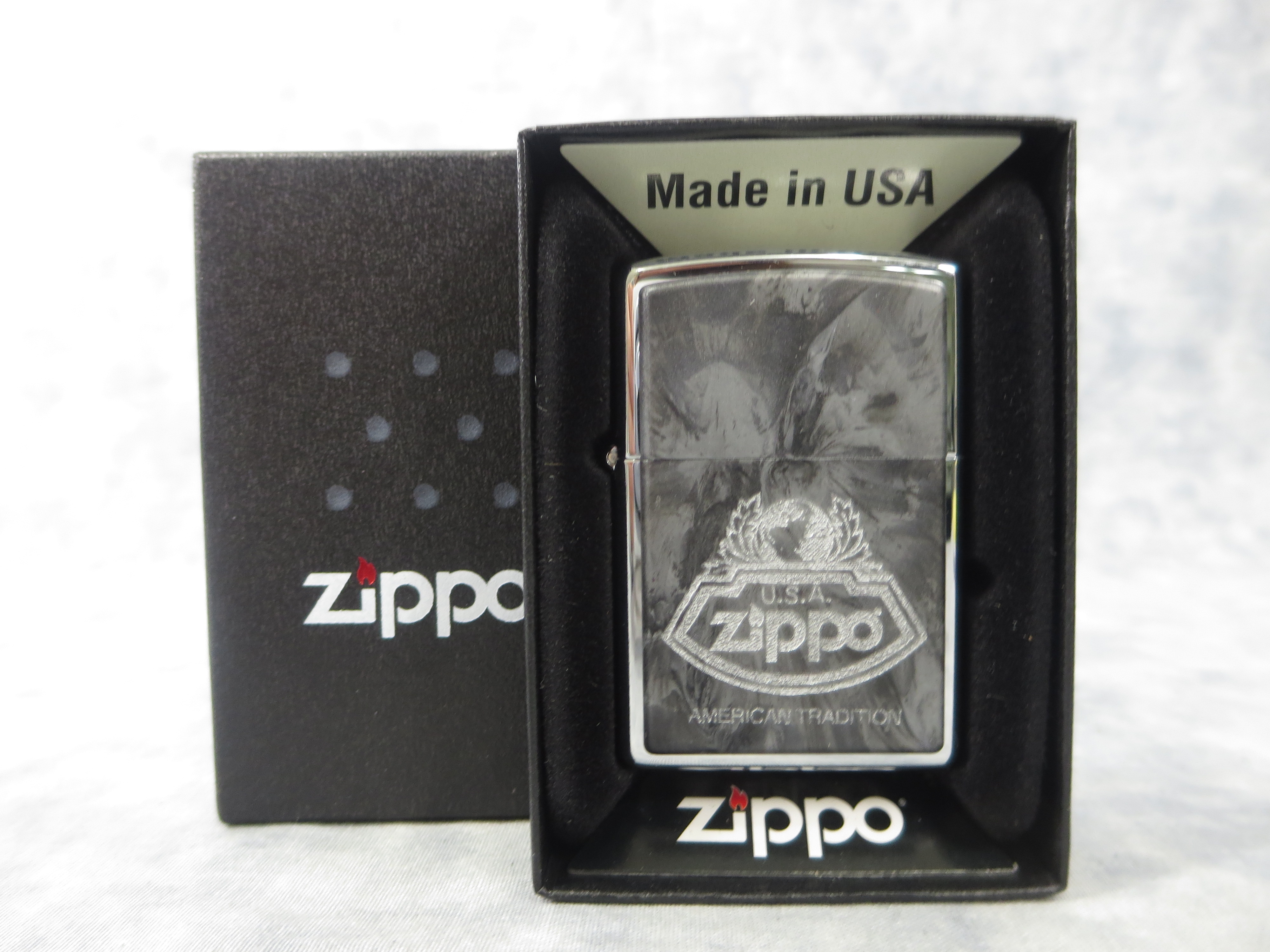You have: AMERICAN TRADITION Emblem Polished Chrome Lighter (Zippo, 2005)