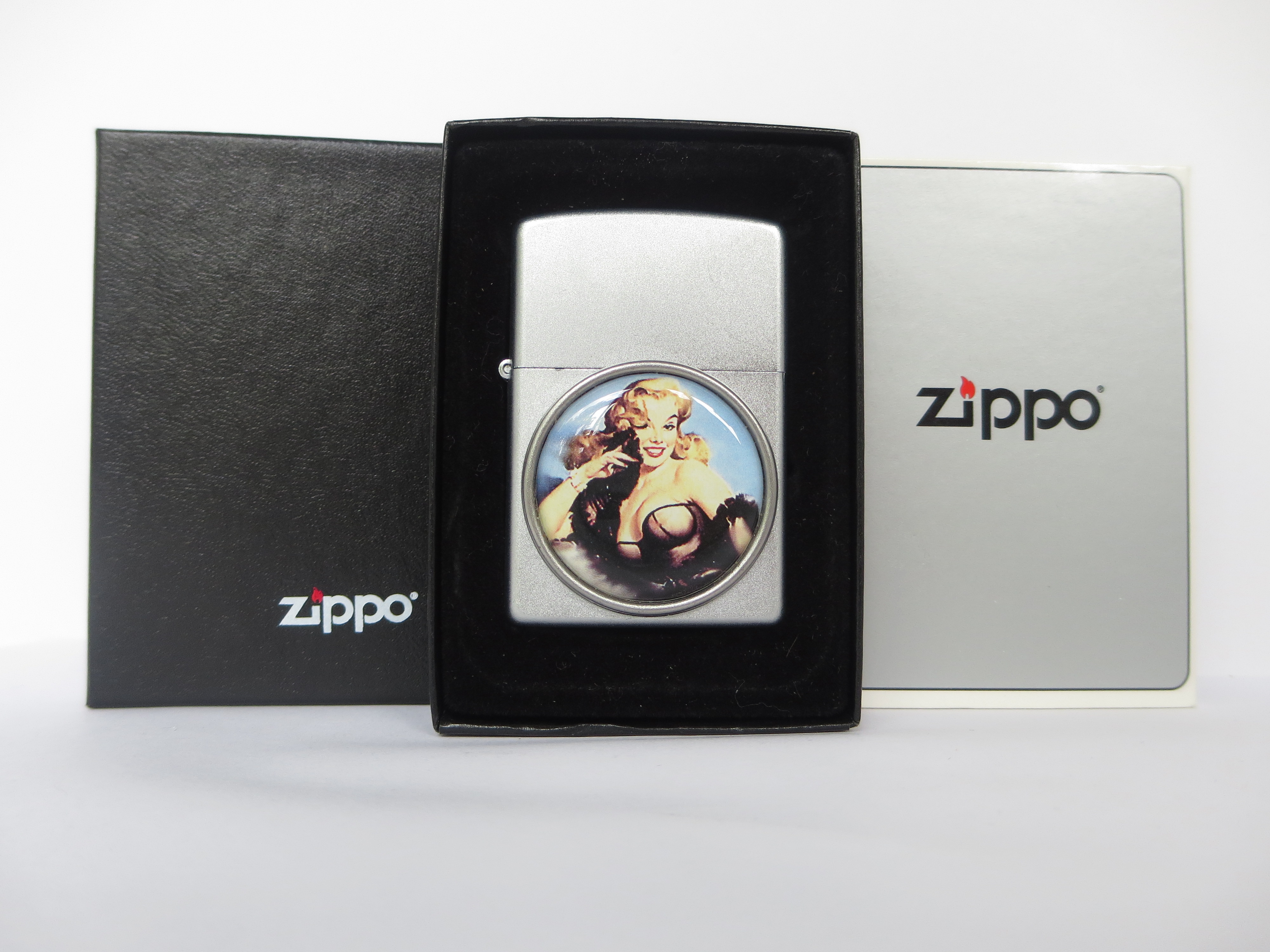 You have: JAYNE MANSFIELD Emblem Pin Up Satin Chrome Lighter (Zippo, 2005)