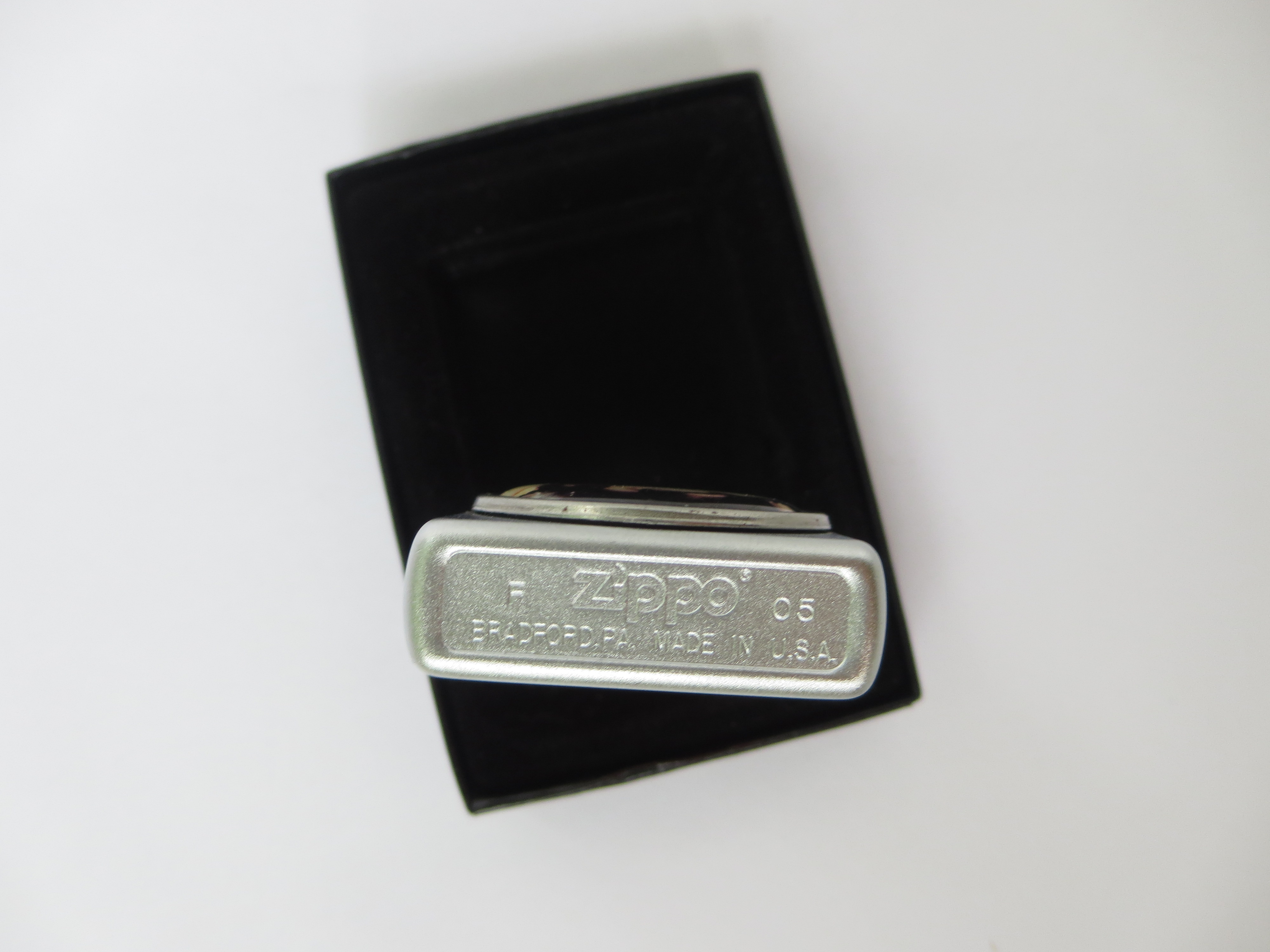 December 28, 2025 - ZIPPO Jayne Mansfield lighter circa 2005. Satin Chrome finish over solid Brass with front emblem. Standard size 1-7/16 inches wide by 2-1/4 inches high. Bottom of lighter reads: F Zippo 05 Bradford, PA. Made in U.S.A. Includes original, unfired insert.