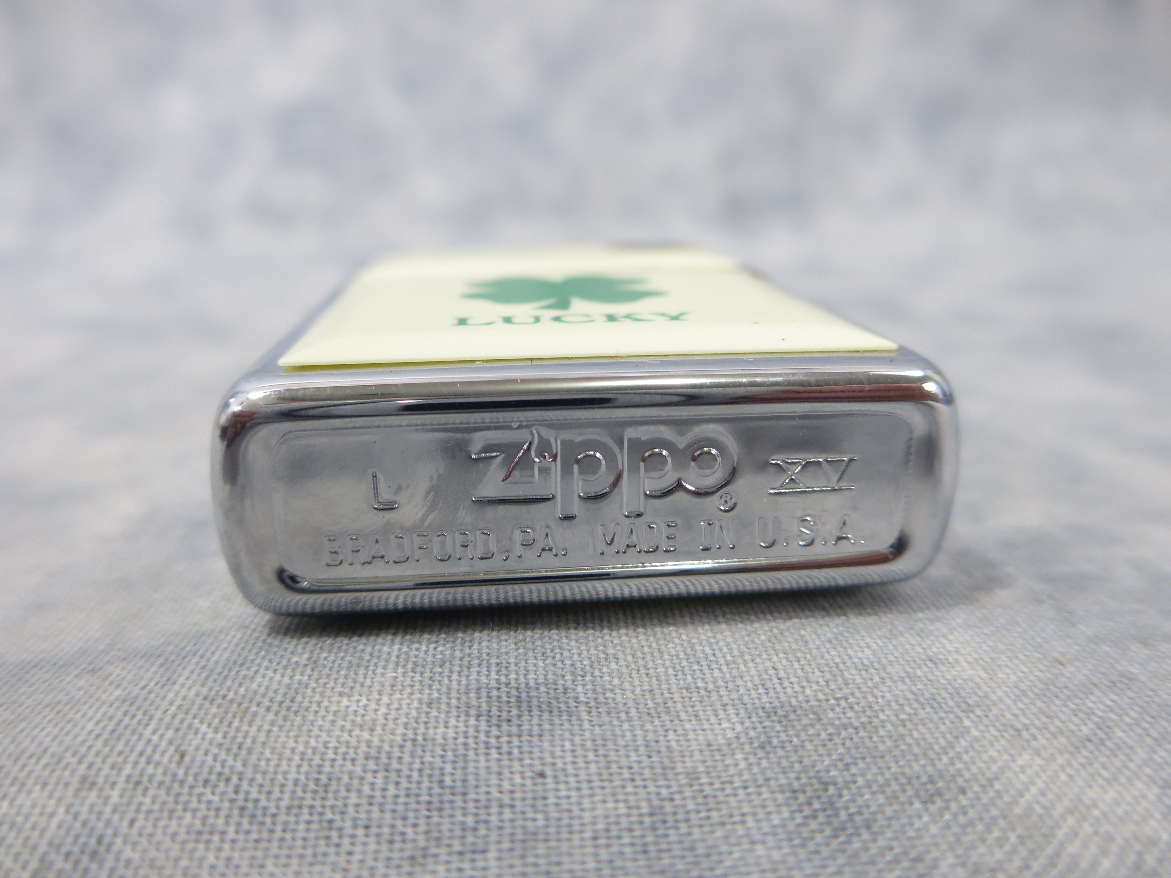 You have: LUCKY/FOUR LEAF CLOVER Cream Ultralite Chip Polished Chrome Lighter (Zippo, 1999)