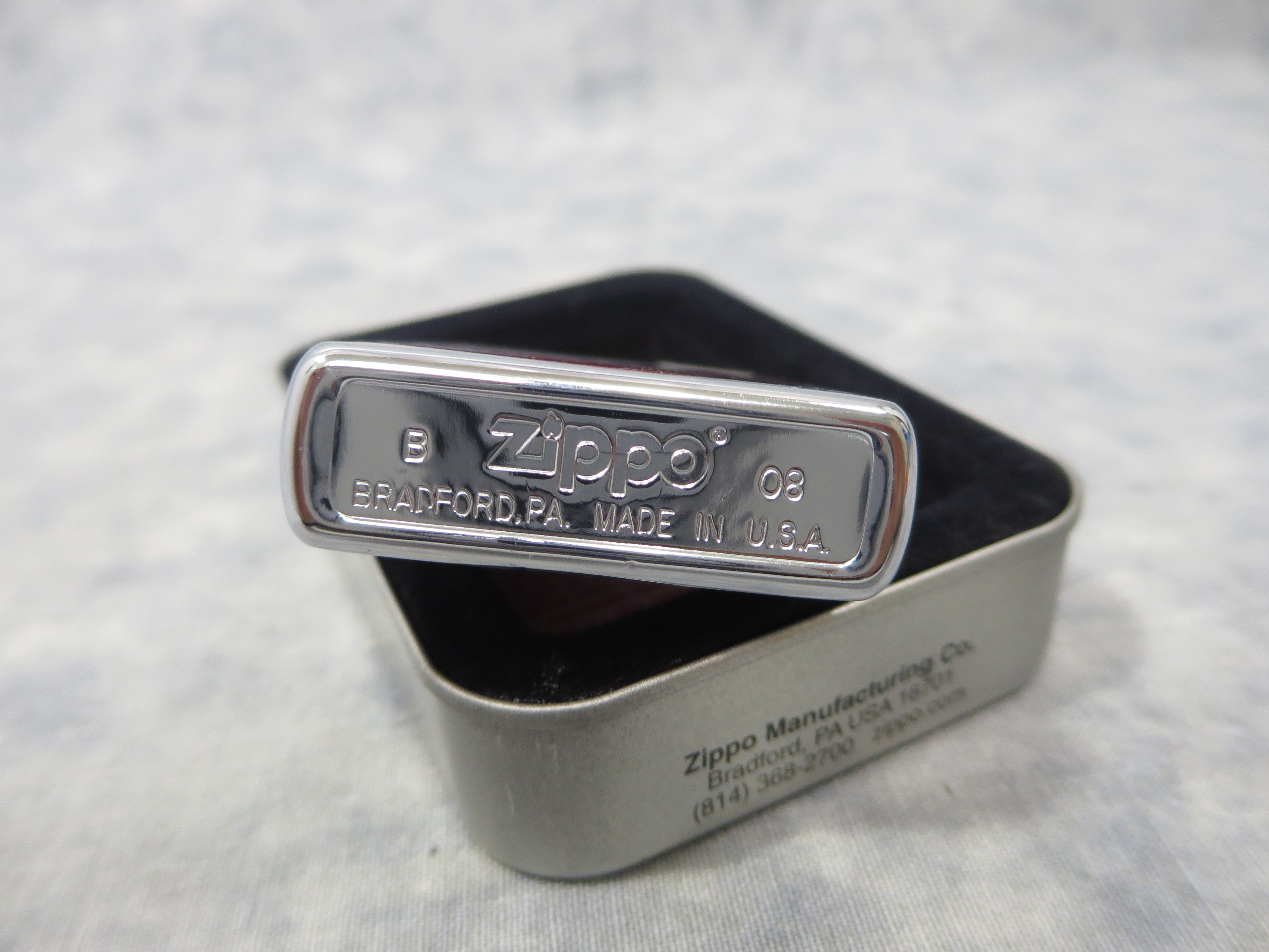 October 27, 2025 - ZIPPO Kasey Kahne Budweiser Racing lighter circa 2008. Polished Chrome finish over solid Brass front color printed design. Standard size 1-7/16 inches wide by 2-1/4 inches high. Bottom of lighter reads: B Zippo 08 Bradford, PA. Made in U.S.A. Includes original, unfired insert.