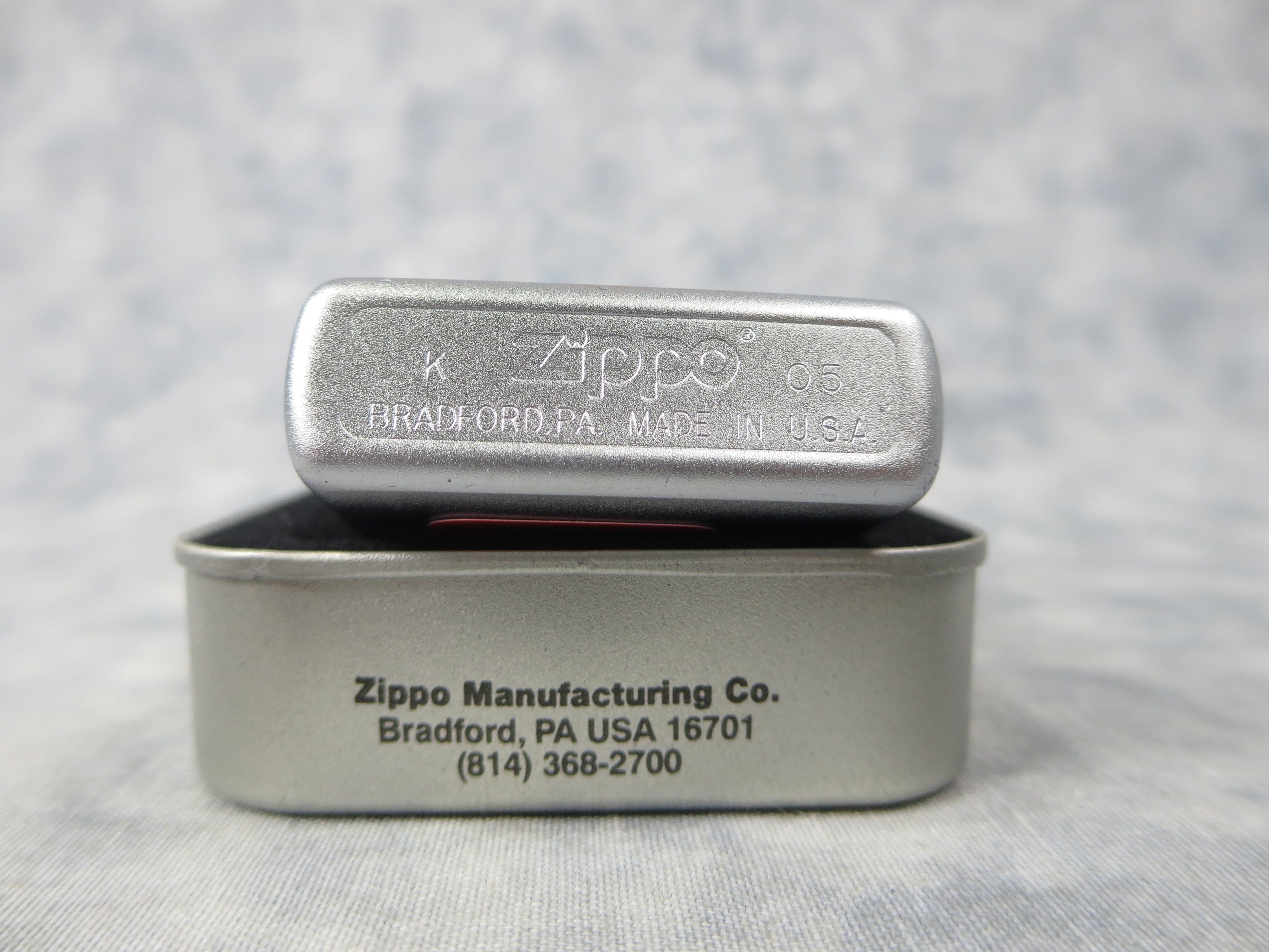 December 19, 2025 - ZIPPO Piano Lady Lighter manufactured in 2005. Satin Chrome finish over solid Brass with color printed front design. Standard size 1-7/16 inches wide by 2-1/4 inches high. Bottom of lighter reads: K Zippo 05 Bradford, PA. Made in U.S.A. Includes original, unfired insert.