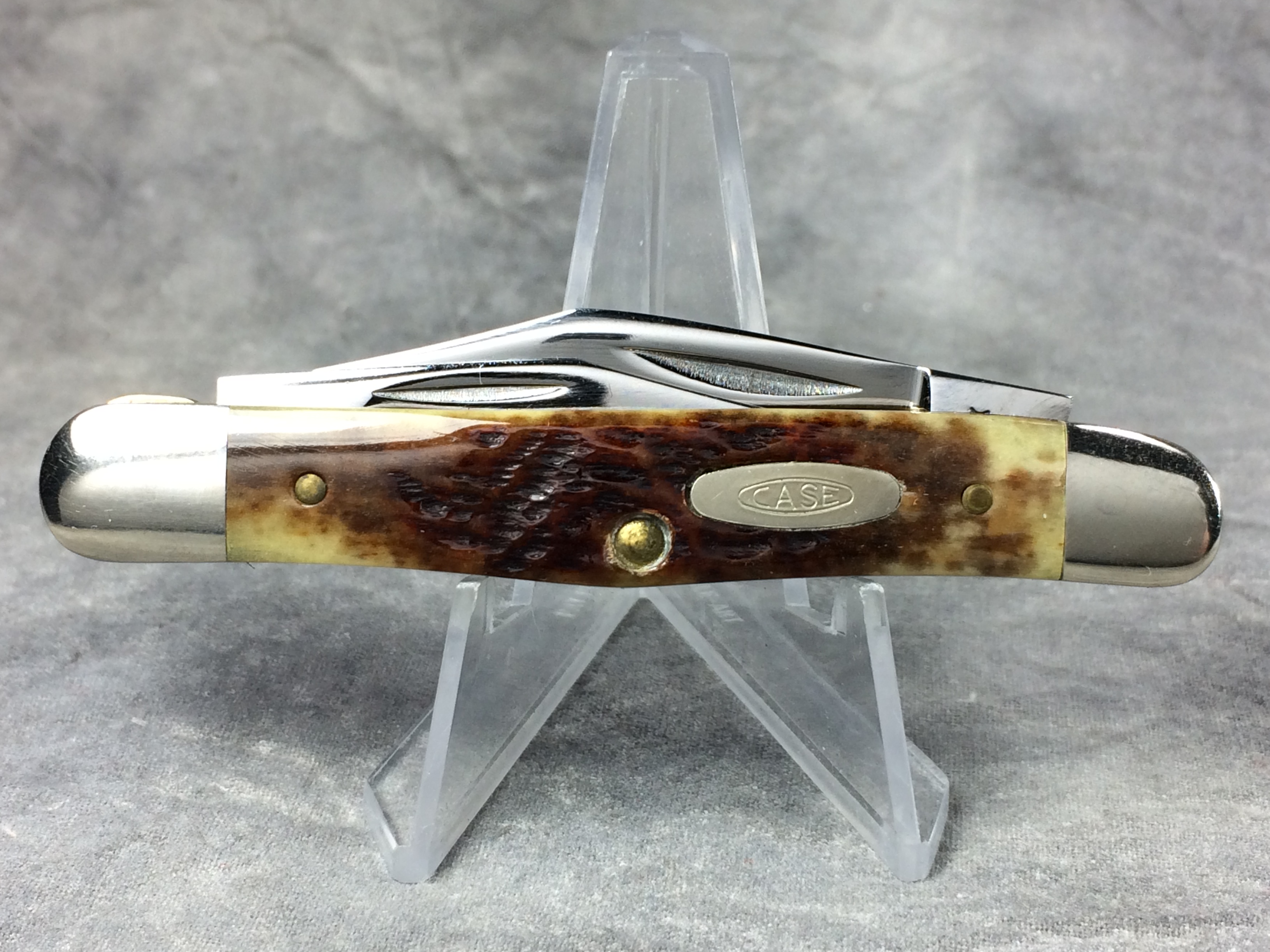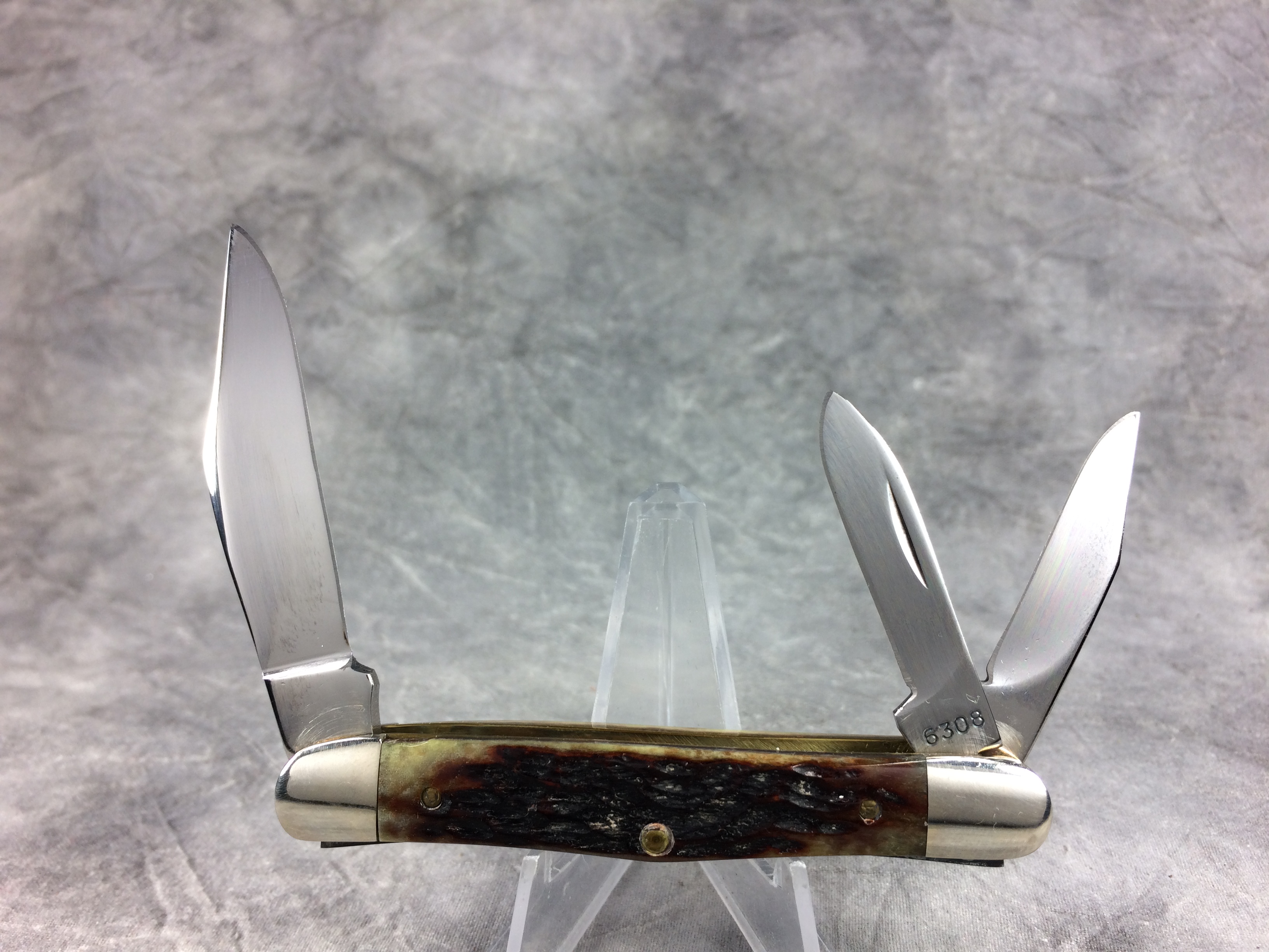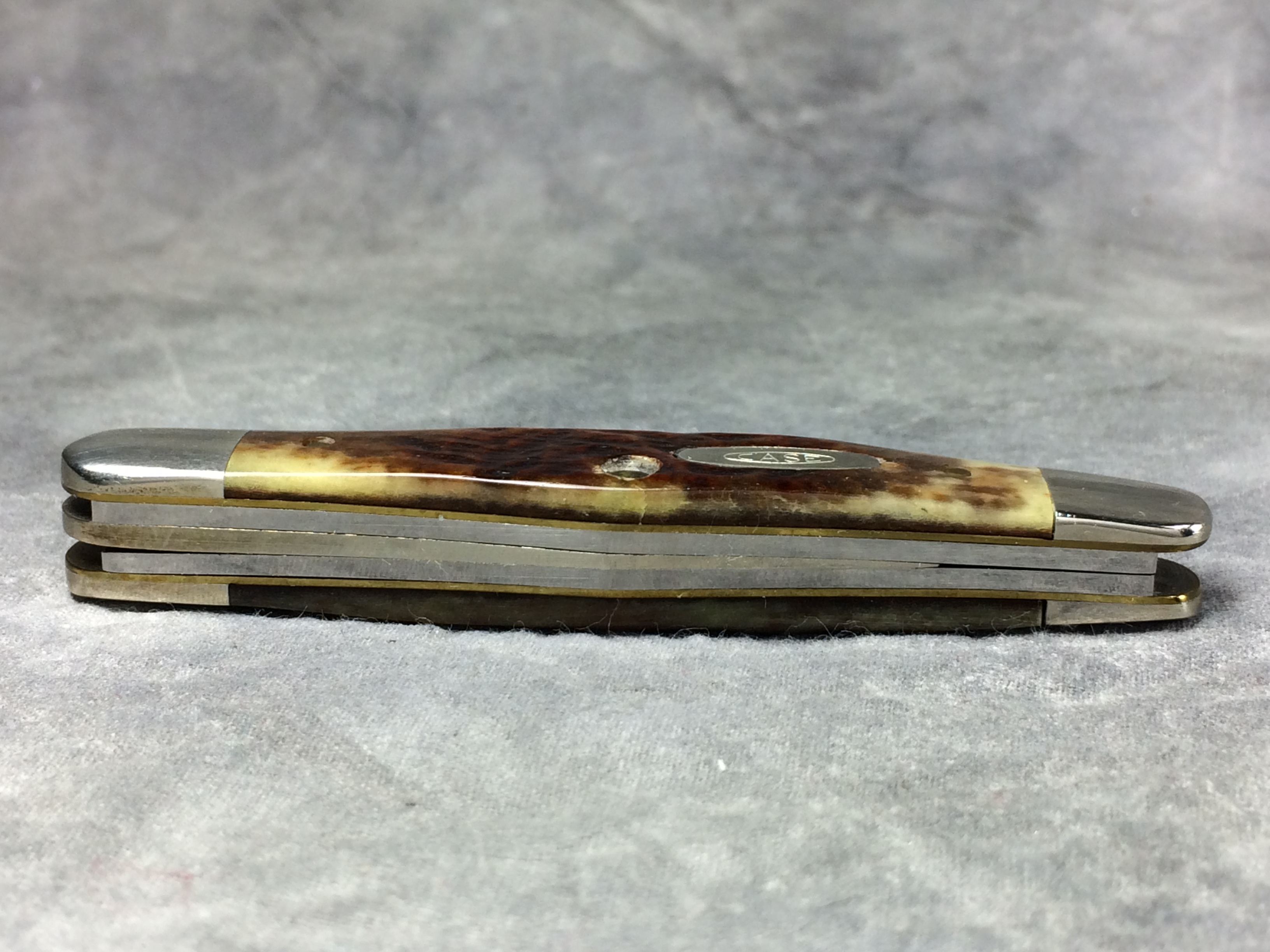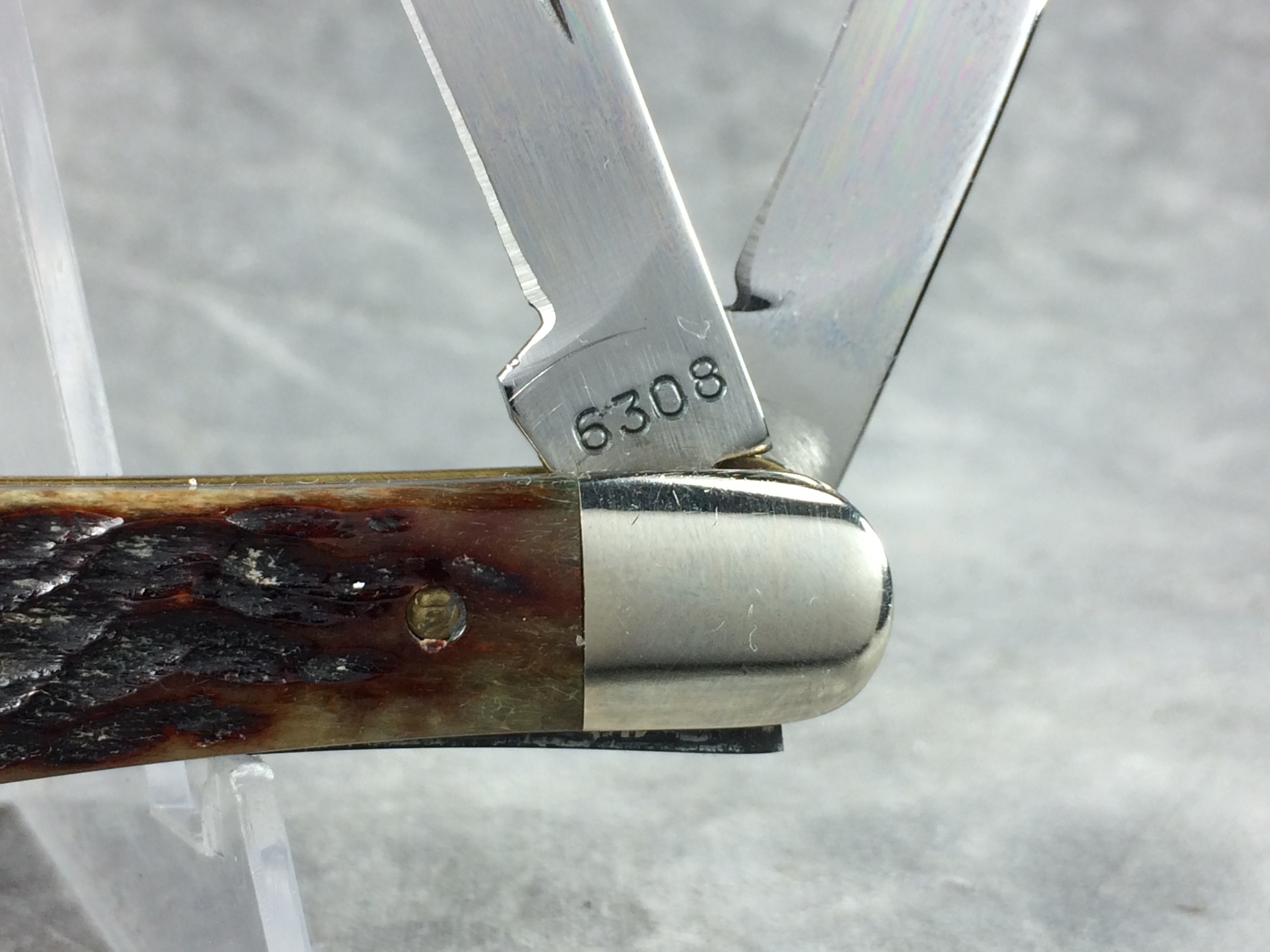 November 03, 2025 - 3-1/4 inches closed. 5-3/8 inches open. Made in USA. "CASE XX ******* USA " (7 dot with lightning bolt S) and "6308" tang stamps. Double oval 'open C' CASE shield. Chrome vanadium blades. Jigged Bone handle. Nickel Silver bolsters. Brass liner.