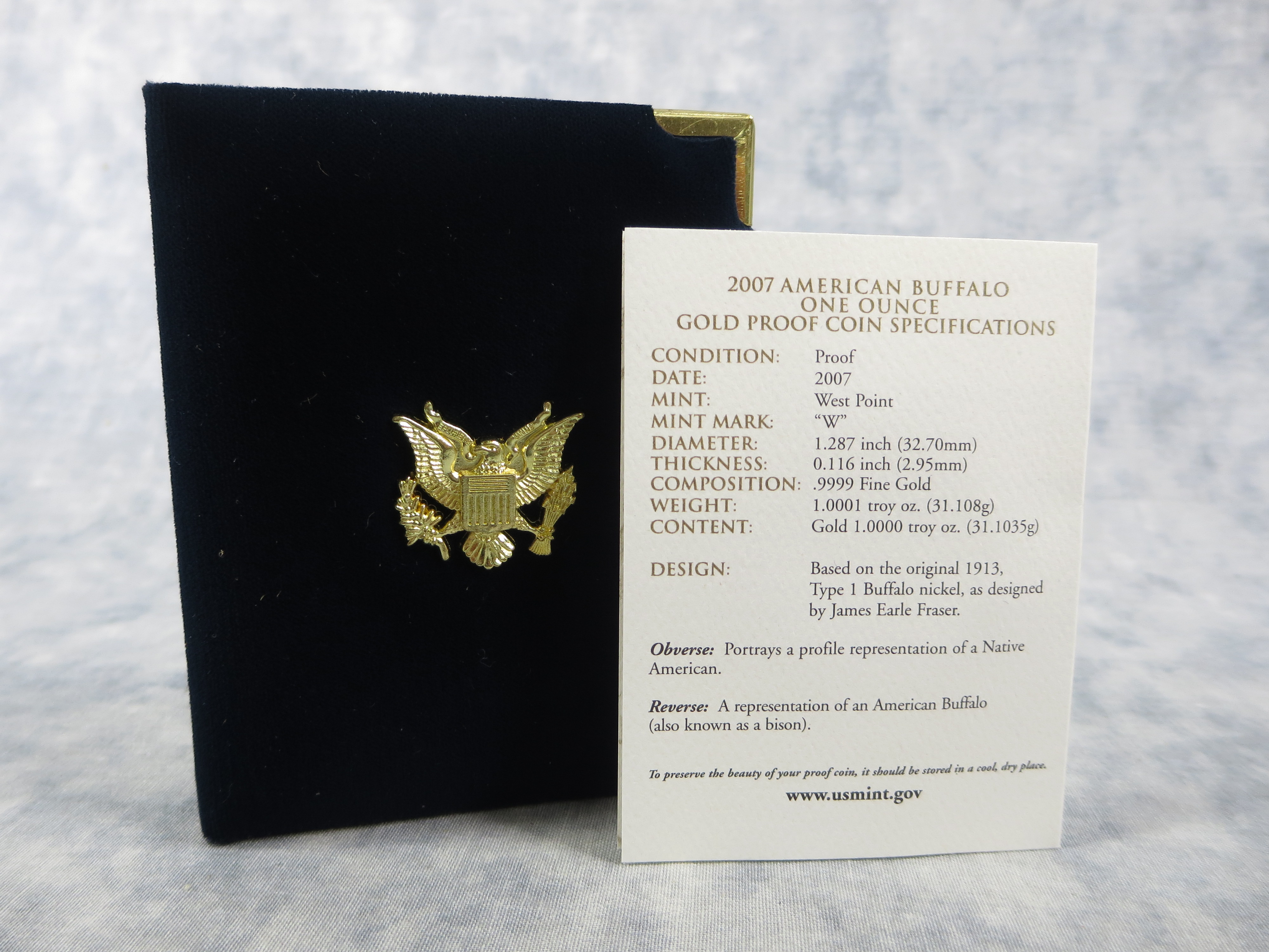 November 04, 2025 - West Point Mint. Includes $50 gold American Buffalo proof, one ounce .9999 gold, 31.1035 grams (1.0000 Troy Ounce) pure gold in US Mint box, velvet lined display box, and including certificate of authenticity.