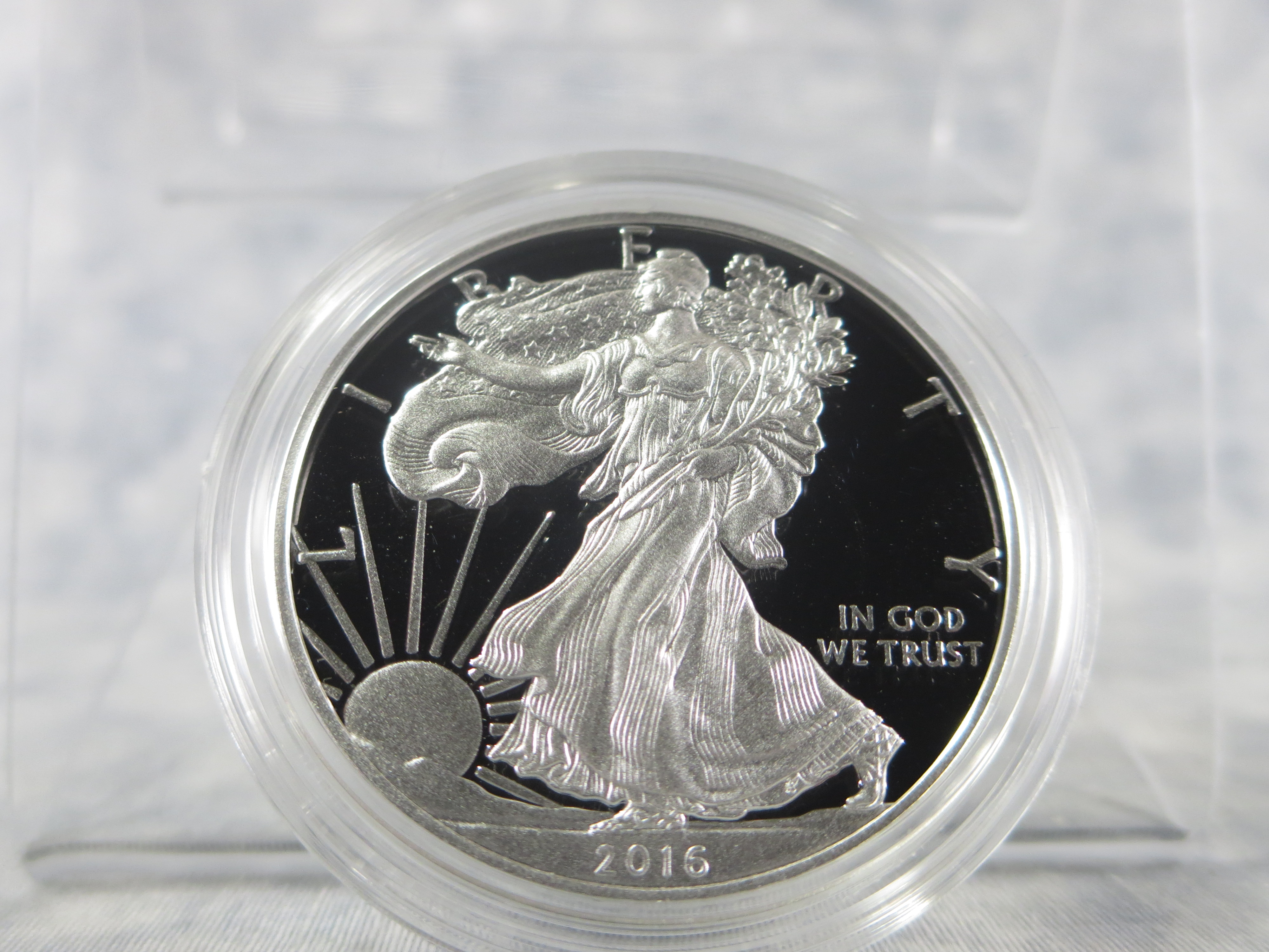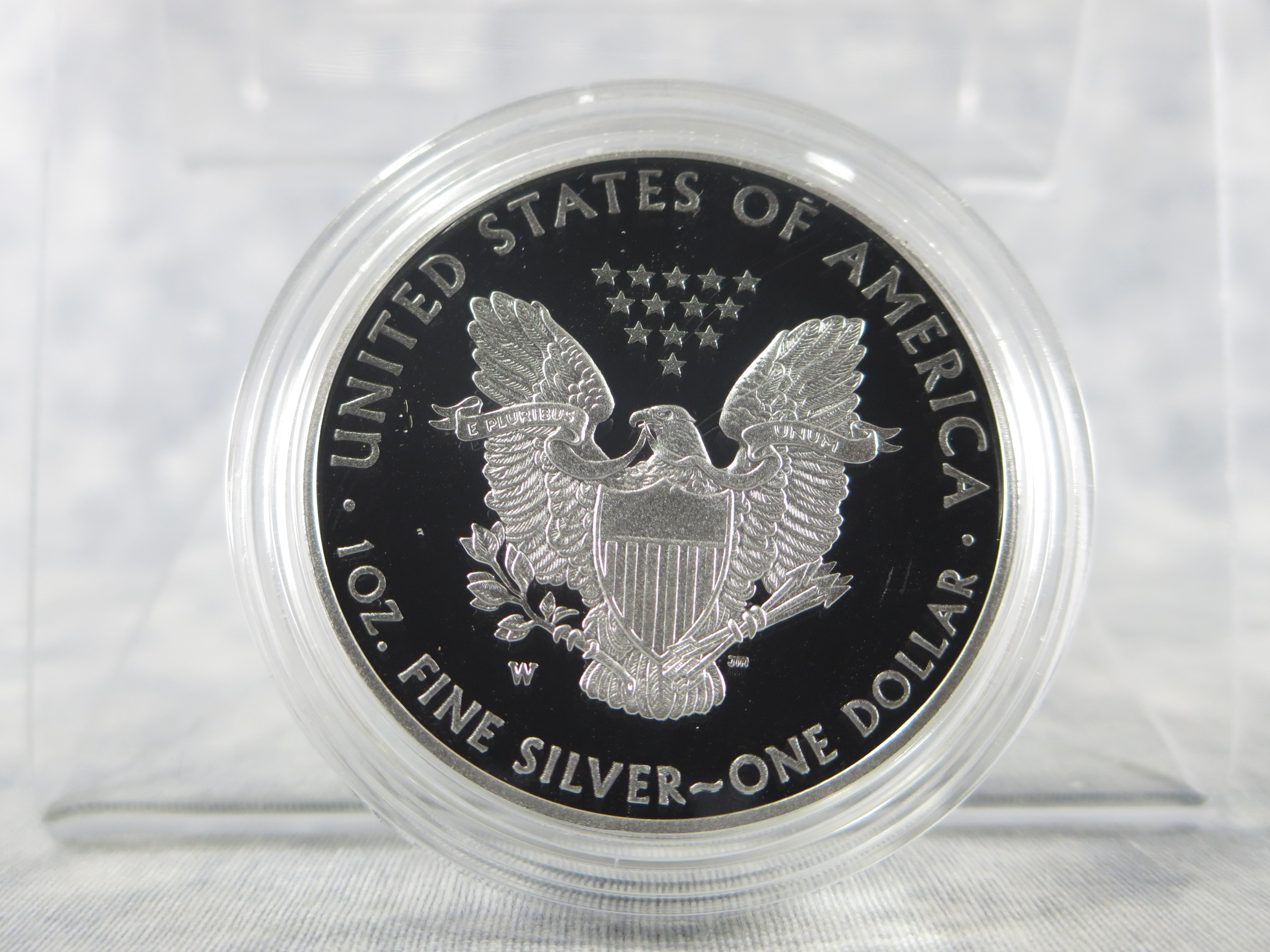 March 27, 2026 - West Point Mint. Includes American Eagle silver dollar proof, one troy ounce of pure .999 fine silver, in original velvet display case and US Mint box, with certificate of authenticity.
