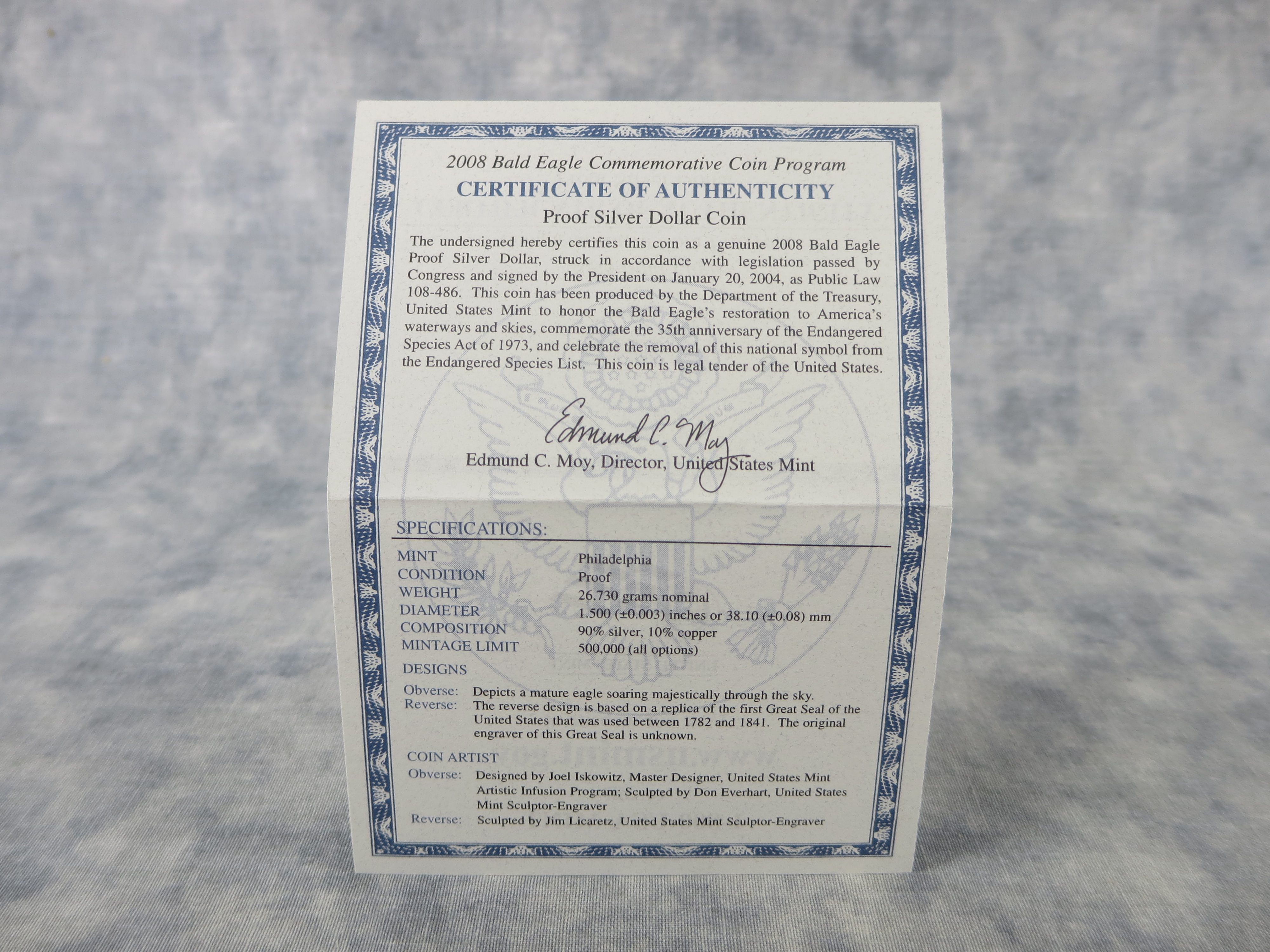 January 05, 2026 - Issued to honor the Bald Eagle's restoration to America's waterways and skies, commemorate the 35th anniversary of the Endangered Species Ace of 1973, and celebrate the removal of this national symbol from the Endangered Species List. Philadelphia Mint. Includes silver dollar proof, 26.730 grams 90% silver, mintage 500,000, in original US Mint box, slipcase, velvet-lined coin holder, and certificate of authenticity.