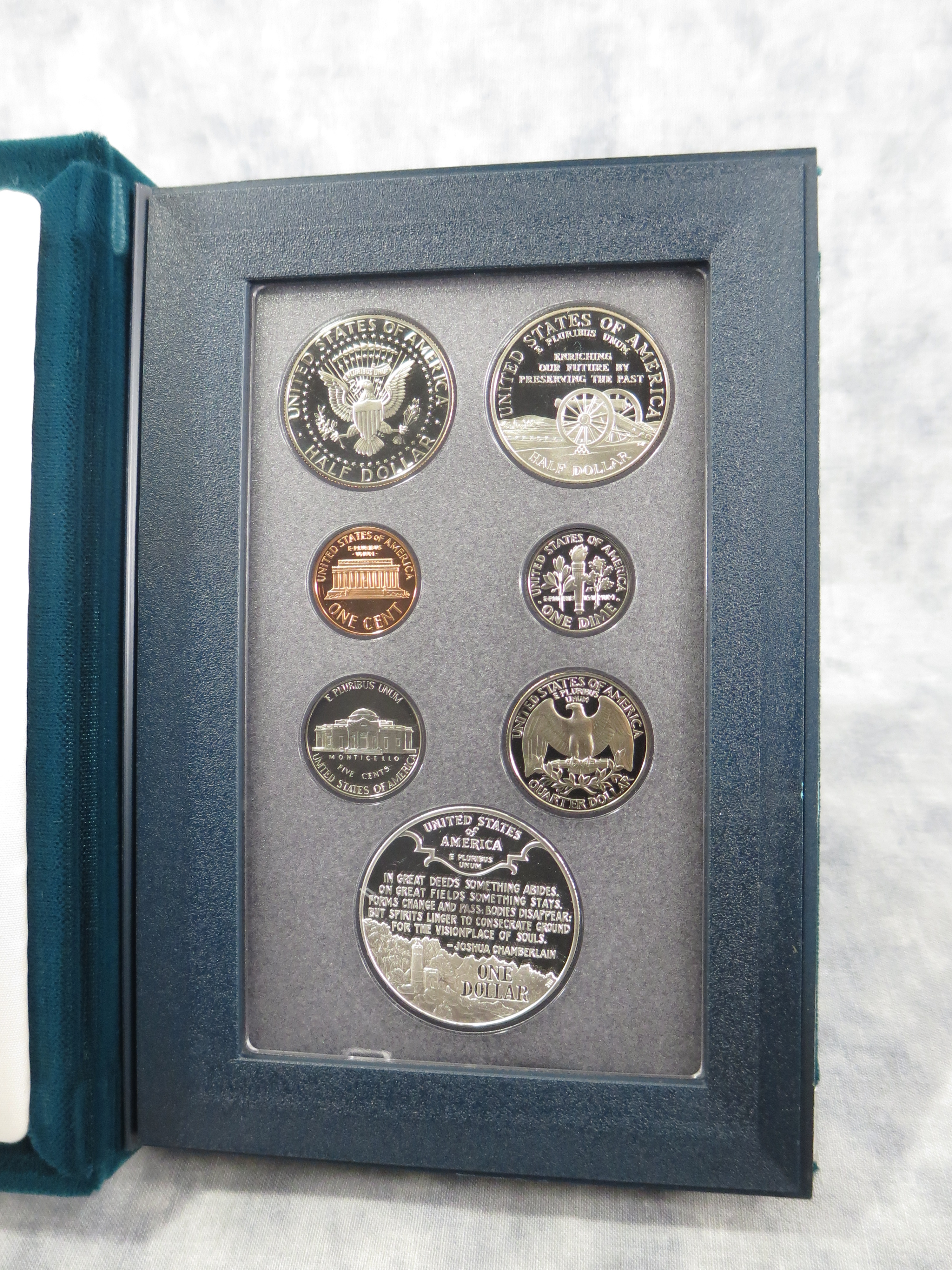 You have: 1995 Civil War Battlefield Prestige Proof Set (dark green box 7 coins)