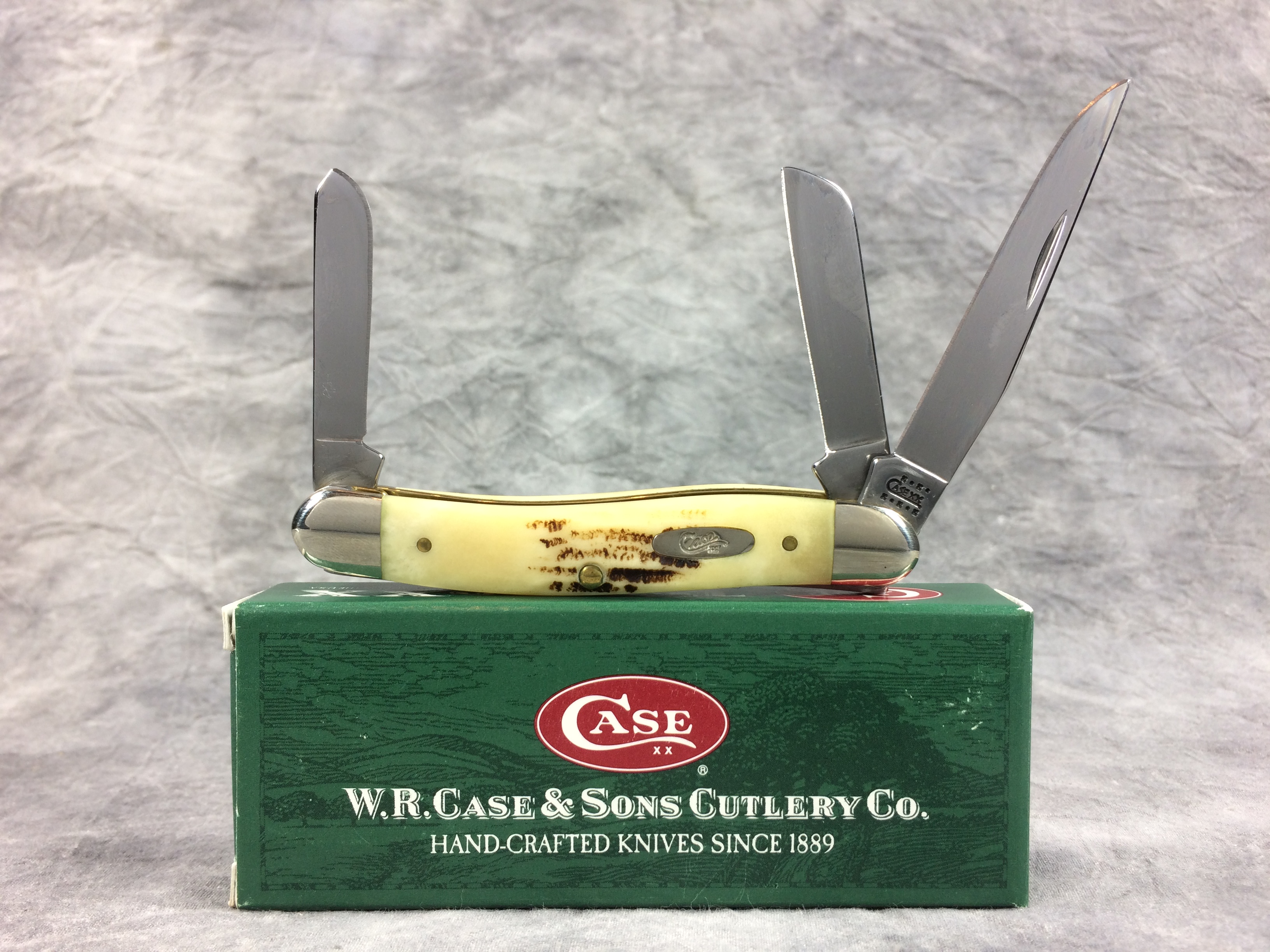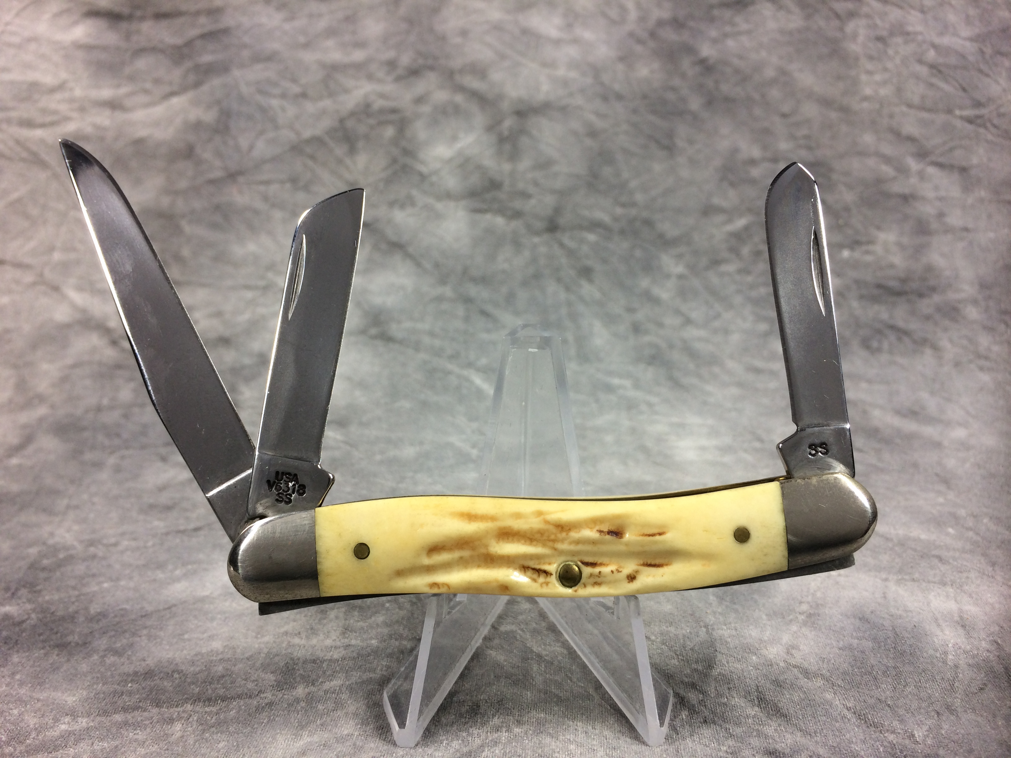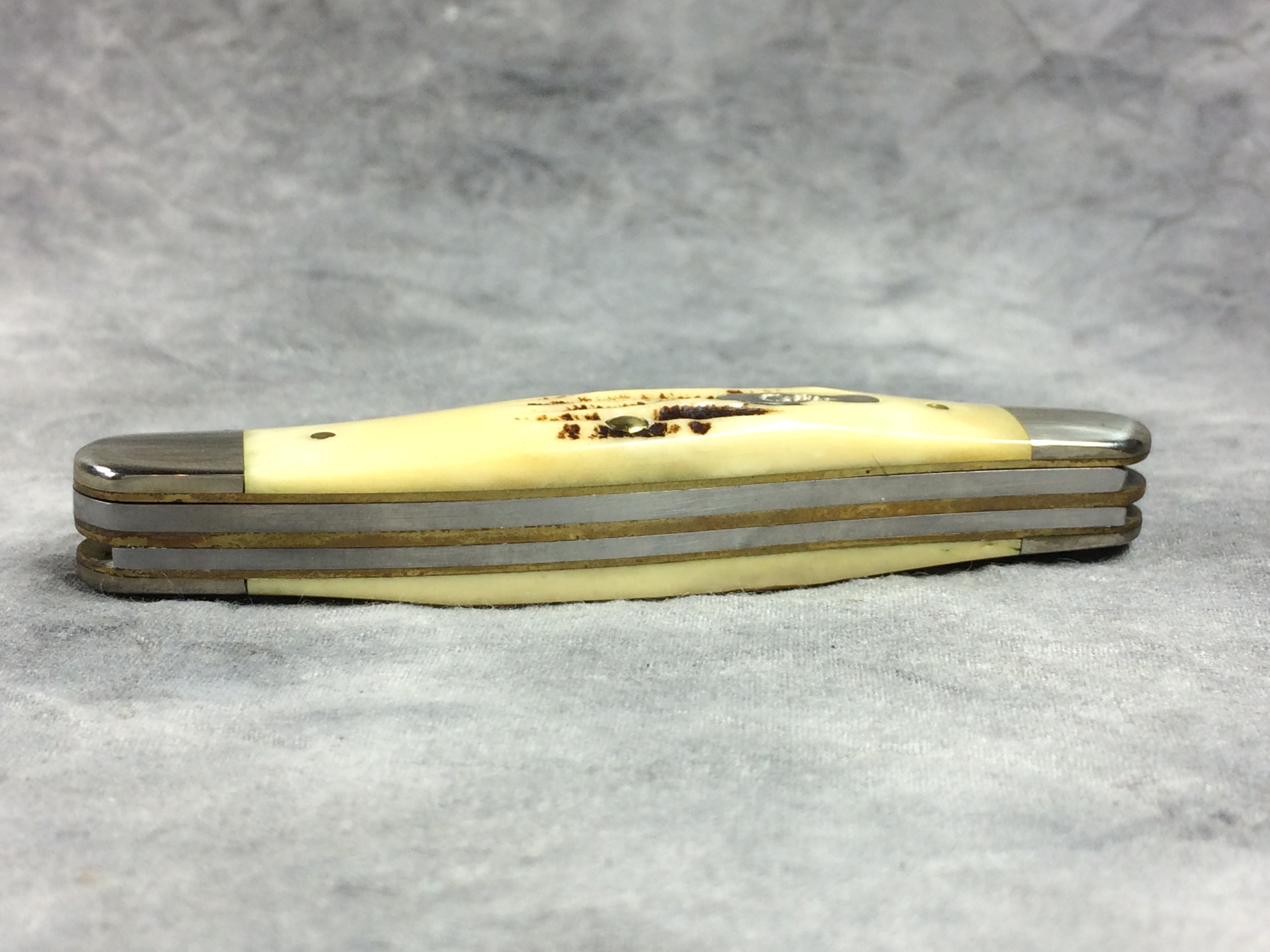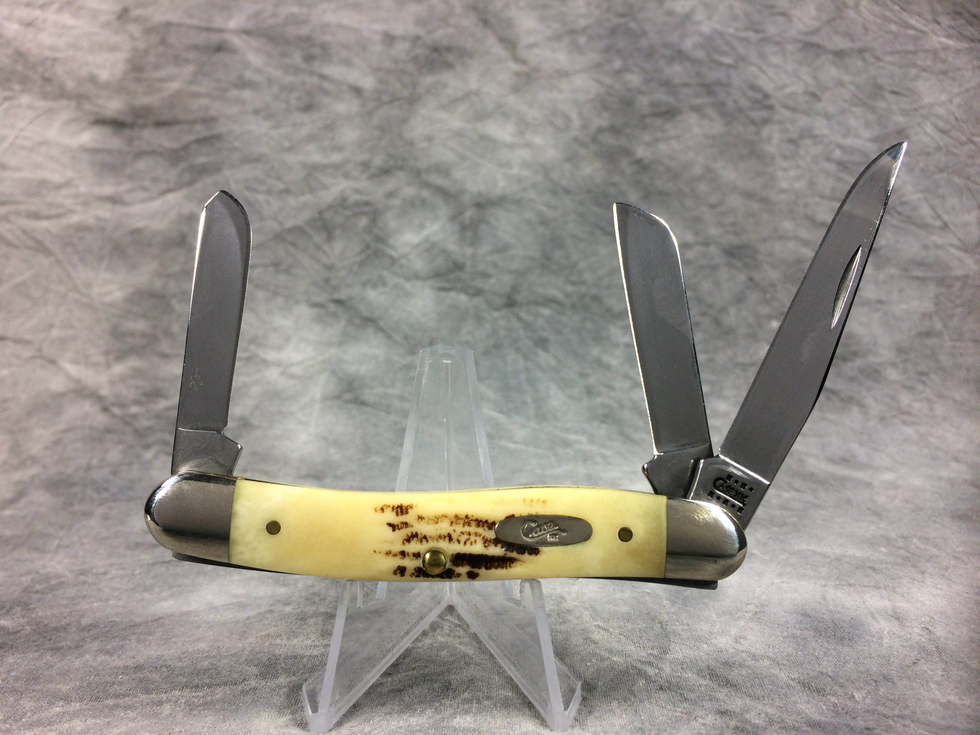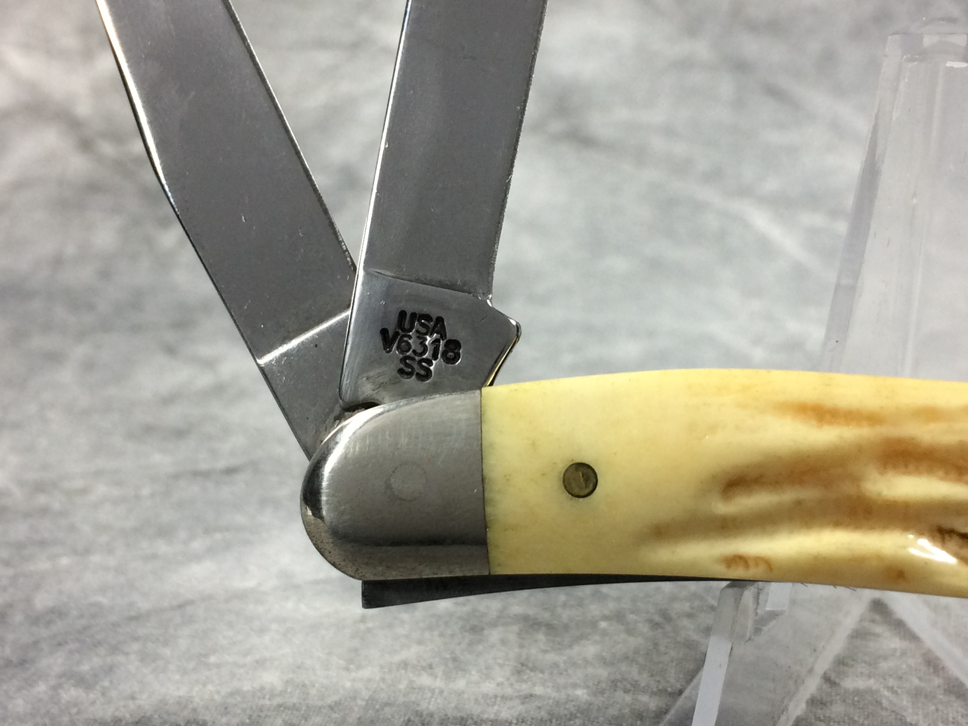 November 06, 2025 - 3-1/8 inches closed. 6-1/8 inches open. Made in USA. " x*x* CASE XX x*x*x " and "USA 6318 SS" tang stamps. Single Oval 'Long C' Case XX shield. Stainless Steel blades. Vintage Bone handle. Nickel Silver bolsters. Brass liner.