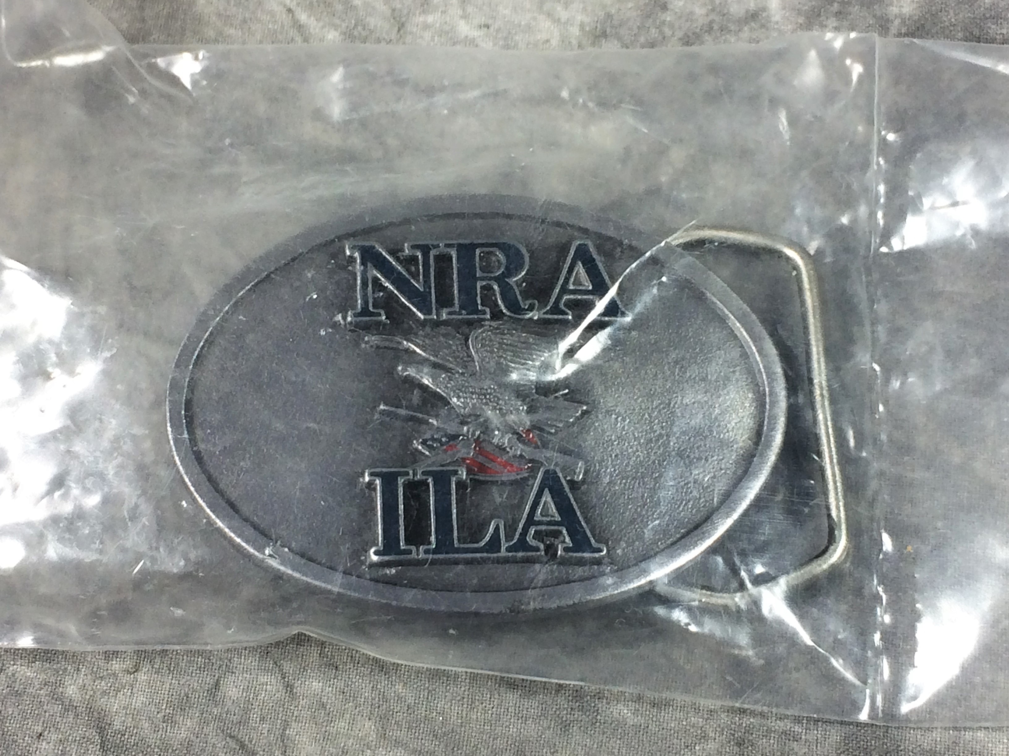 November 06, 2025 - National Rifle Association NRA & ILA Belt Buckle. Made in USA. Measures 2-1/2 inches by 1-7/8 inches. Still sealed in plastic.