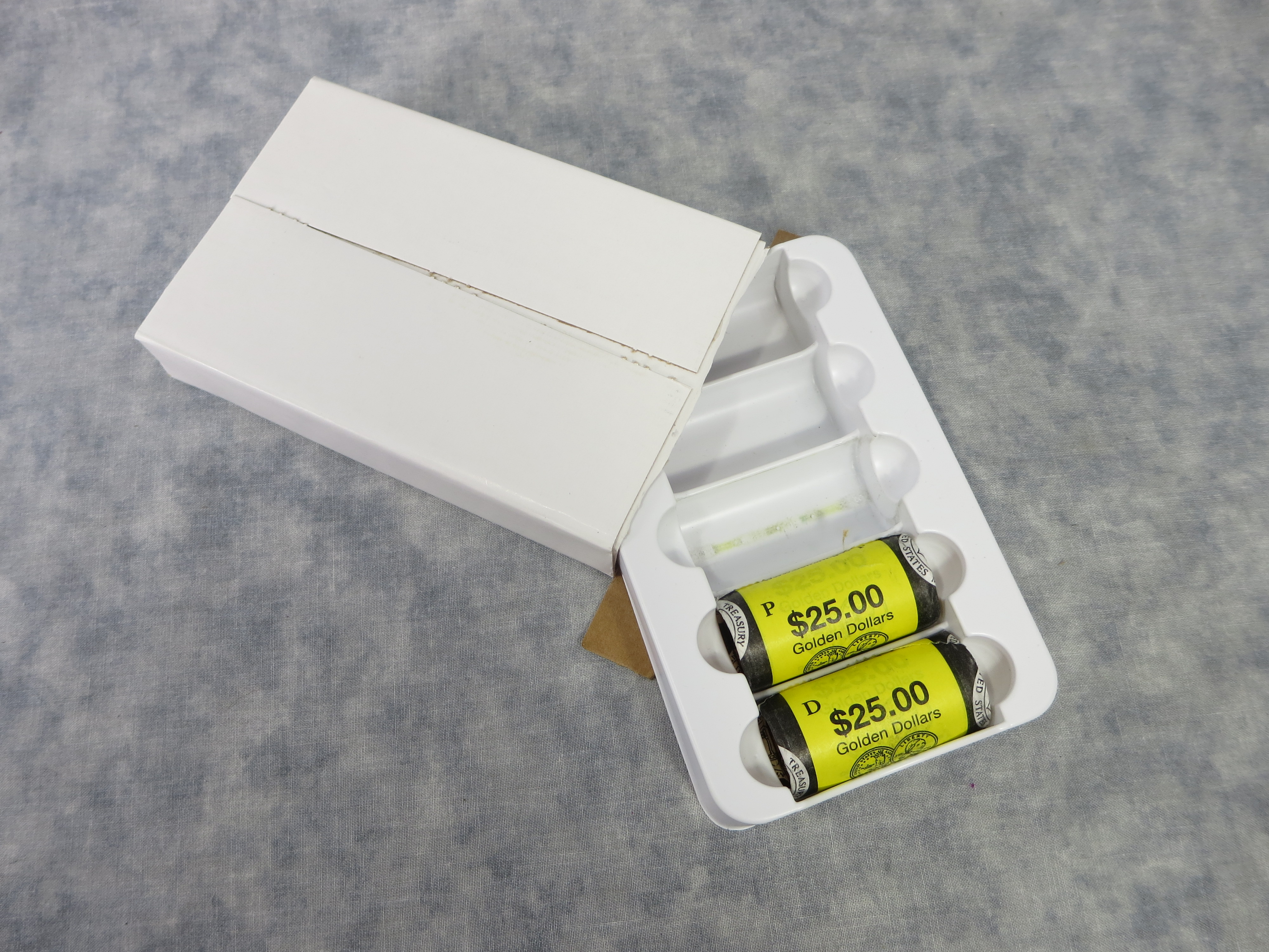 February 12, 2026 - 1 roll from the Philadelphia Mint and 1 roll from the Denver Mint. Each roll contains 25 Sacagawea Golden Dollars.