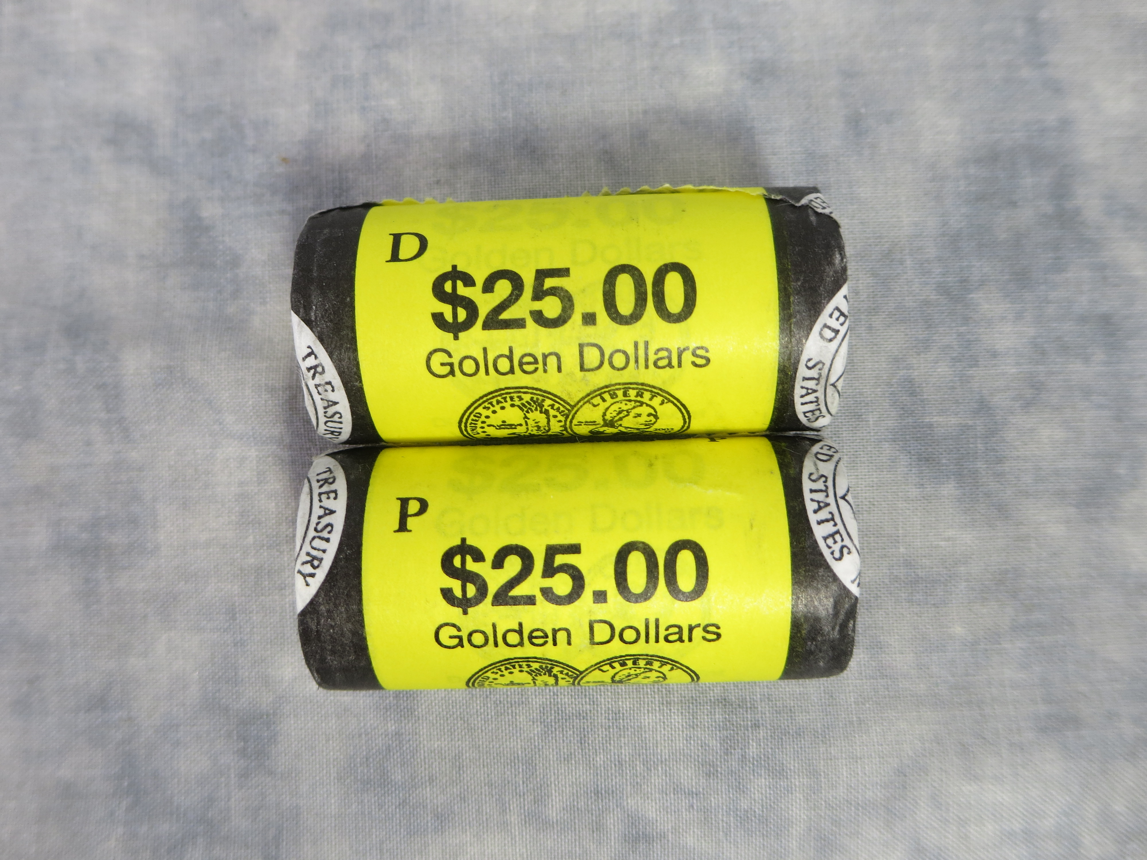 You have: Sacagawea GOLDEN DOLLARS Philadelphia & Denver $25 Roll Lot (U.S. Mint, 2002)