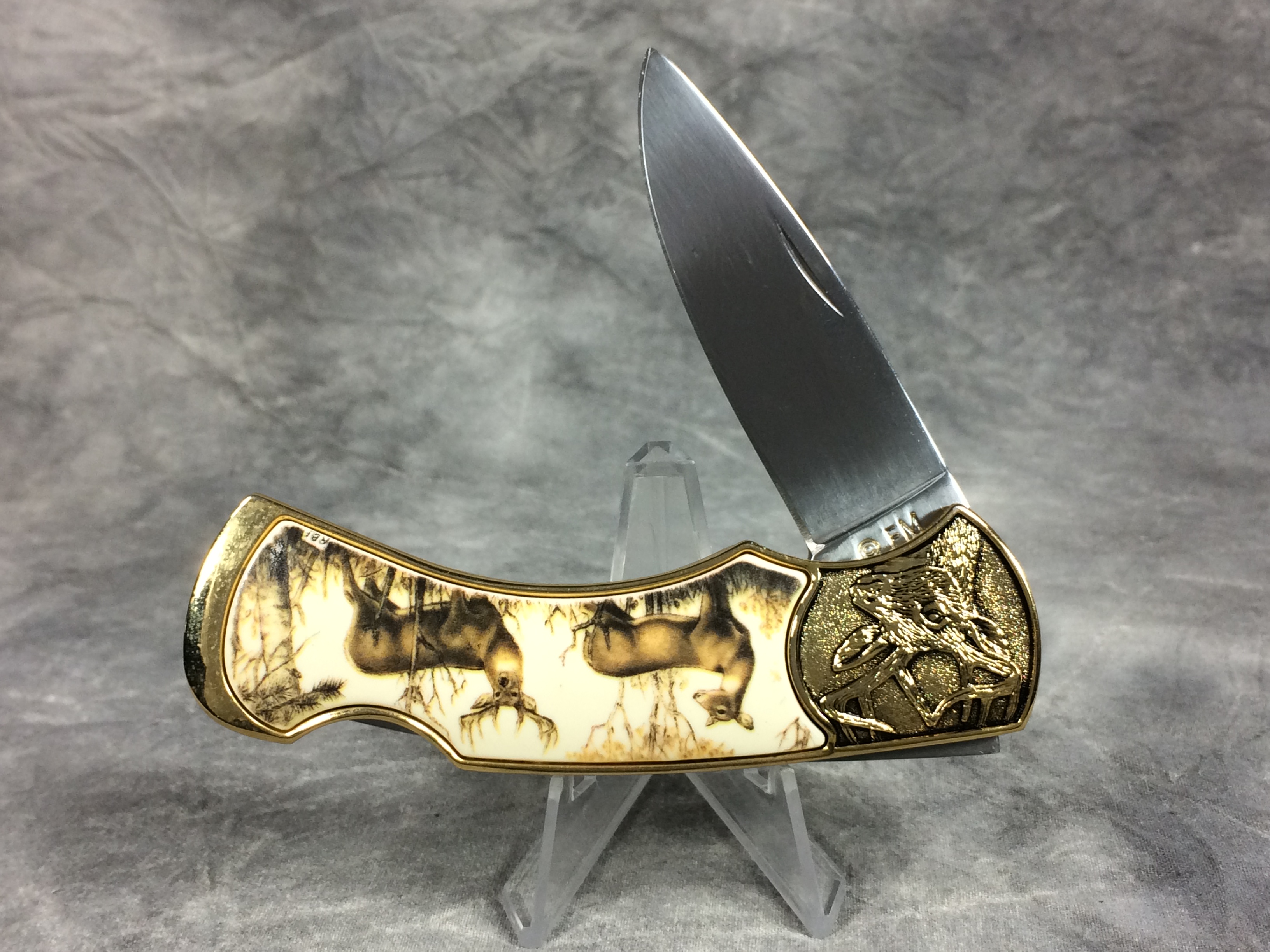 FRANKLIN MINT Deer Folding Lockback Collector Knife