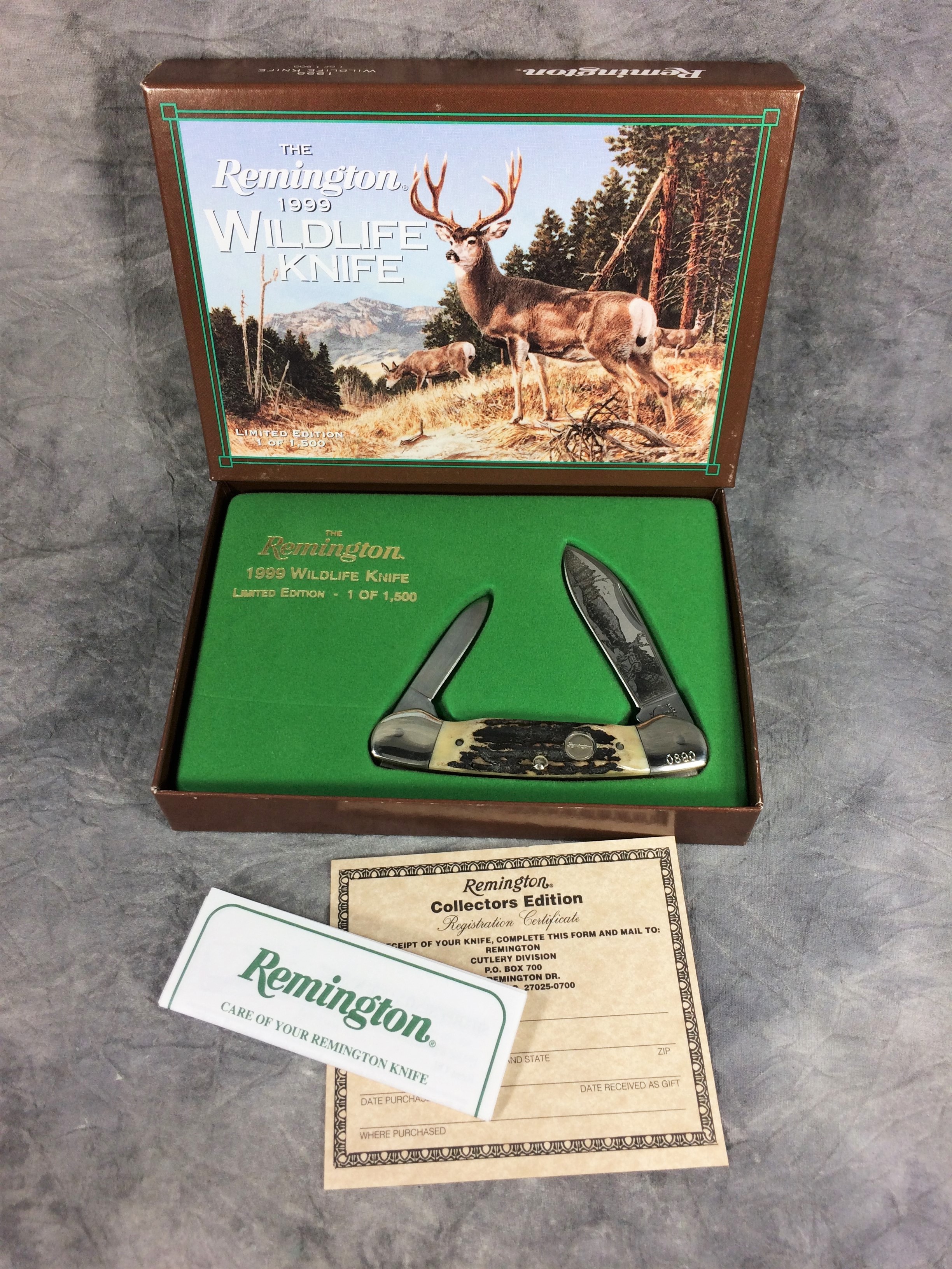 You have: Rare 1999 REMINGTON UMC Limited Edition 1/1500 Stag Canoe Wildlife Knife