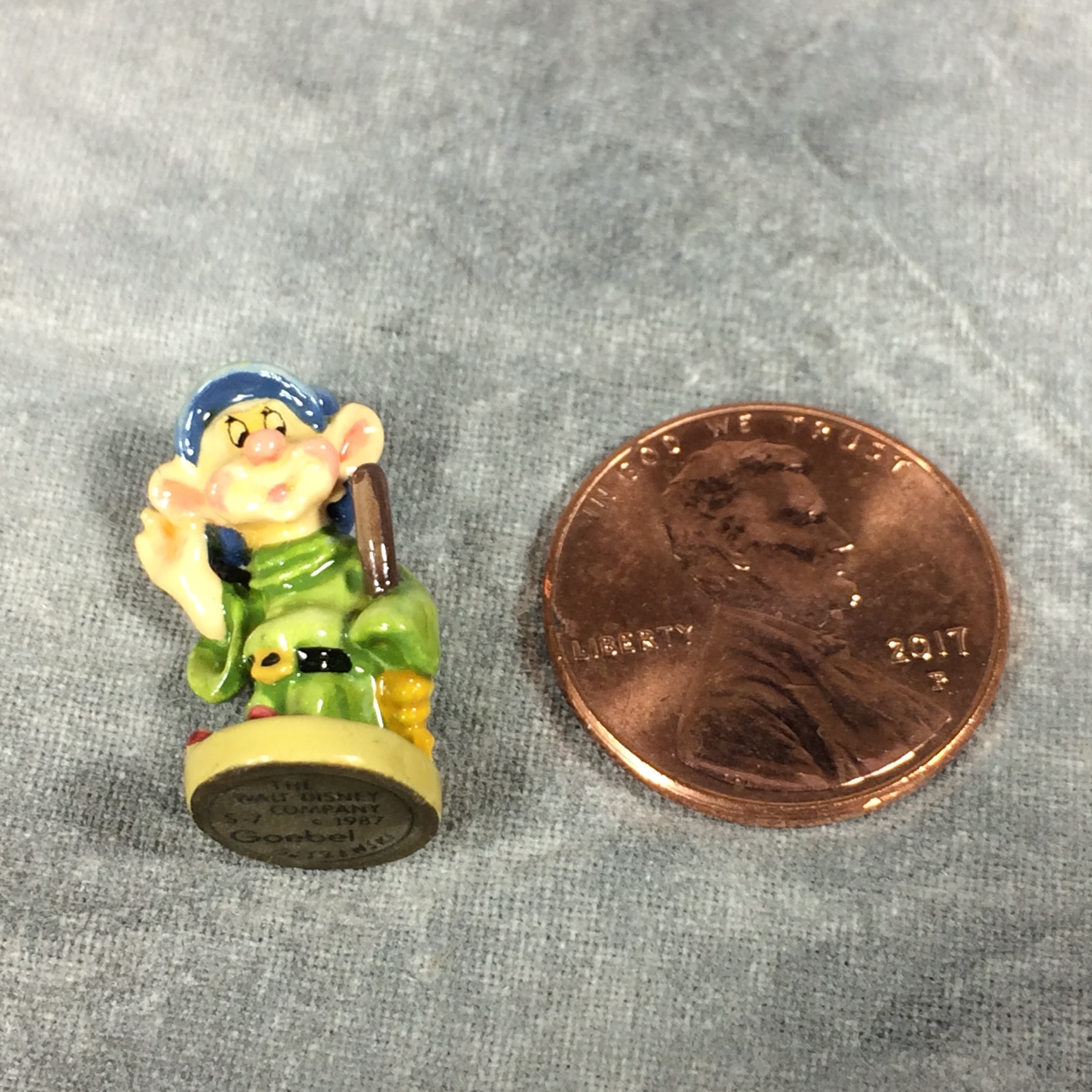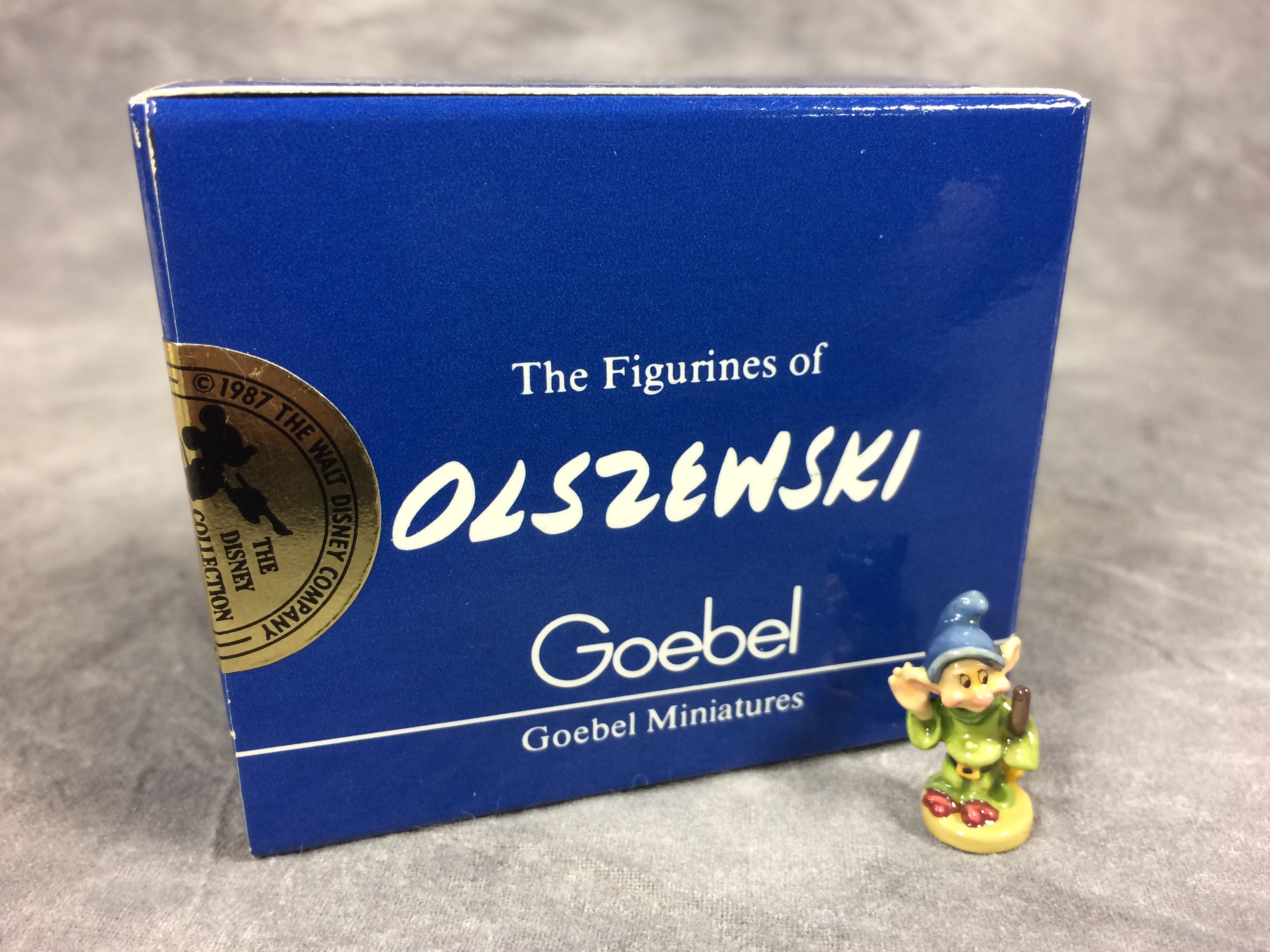 January 18, 2026 - Limited Edition, 7/8 inch bronze, hand-painted, miniature of Snow White & The Seven Dwarfs' DOPEY. Base stamped: The Walt Disney Company / S-7 / c 1987 / Goebel / Olszewski. Includes original paperboard box.