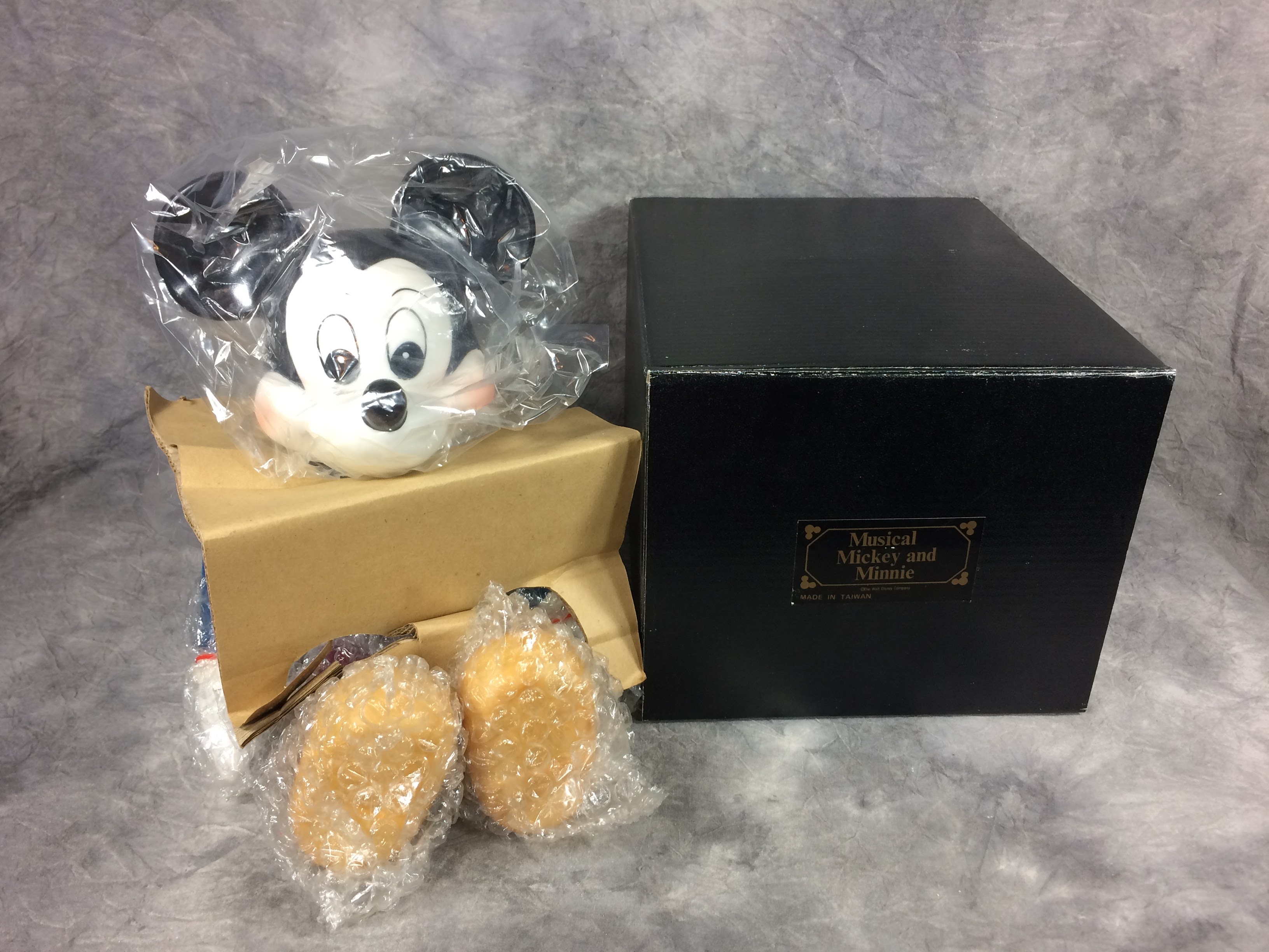 February 17, 2026 - 9 inches tall. Plays "M-I-C-K-E-Y M-O-U-S-E" song. Made in Taiwan. New in box.