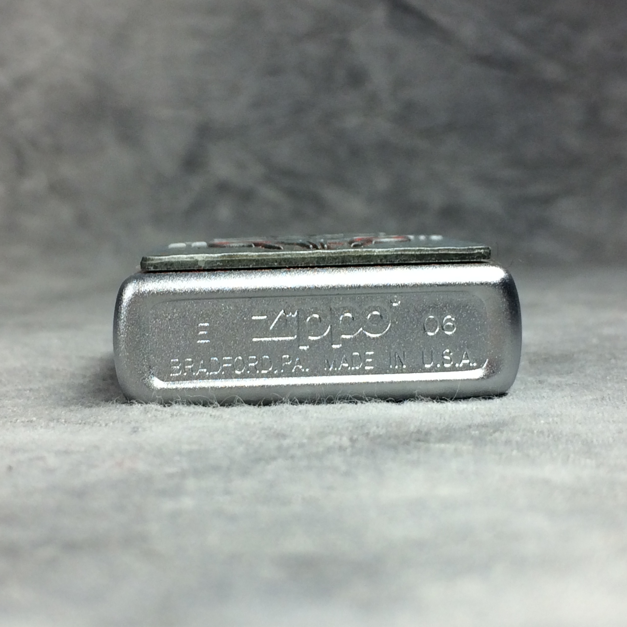 April 15, 2026 - ZIPPO Lighter, 2006. MATTE CHROME finish over solid Brass with American Classic Emblem. Standard size 1-7/16 inches wide by 2-1/4 inches high. Bottom of lighter reads: E Zippo 06 Bradford, PA. Made in U.S.A. Sealed.