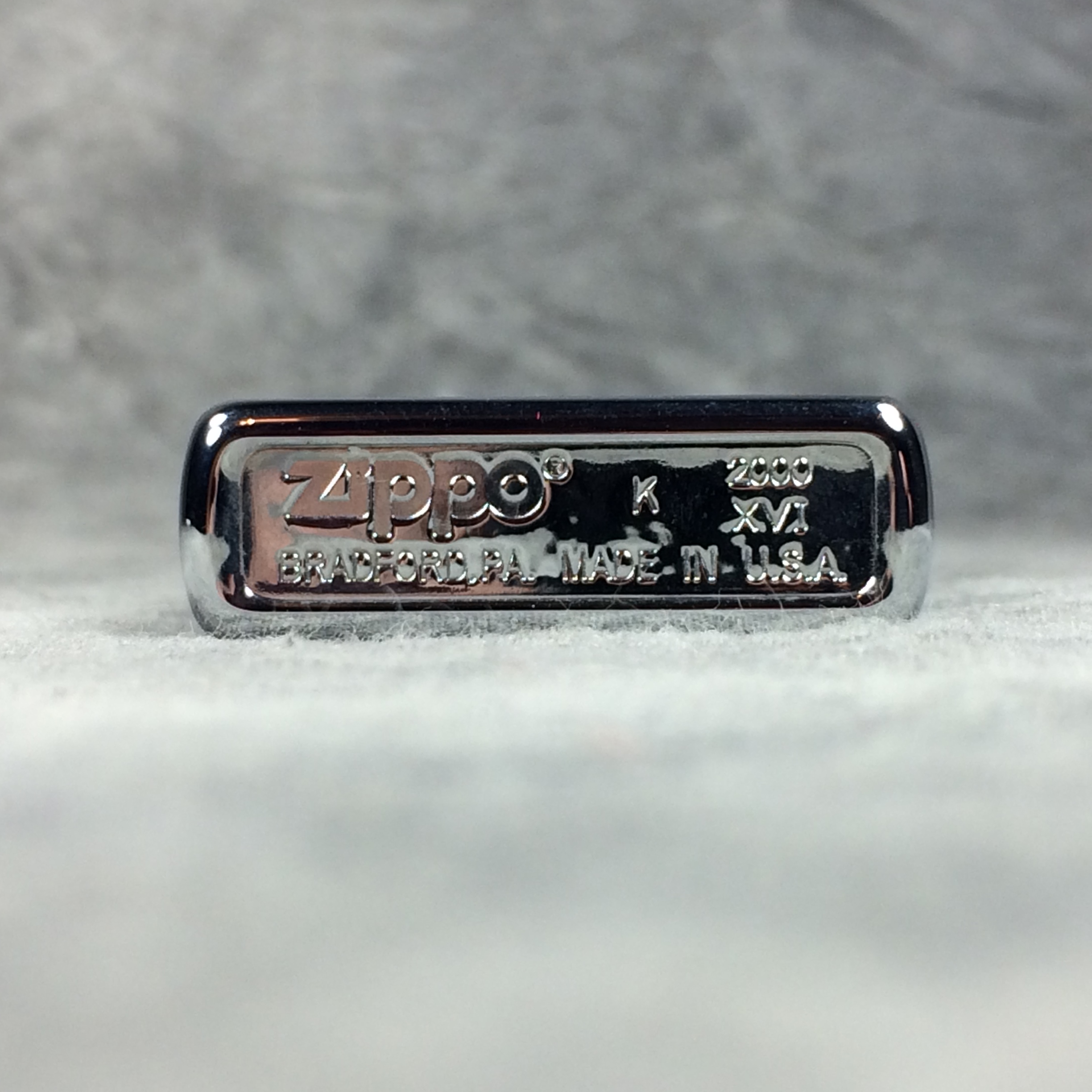 December 28, 2025 - ZIPPO Lighter, 2000. High-polish Chrome with logo on front. Standard size 1-7/16 inches wide by 2-1/4 inches high. Bottom of lighter reads: Zippo K 2000 XVI Bradford, PA Made in U.S.A. Sealed.