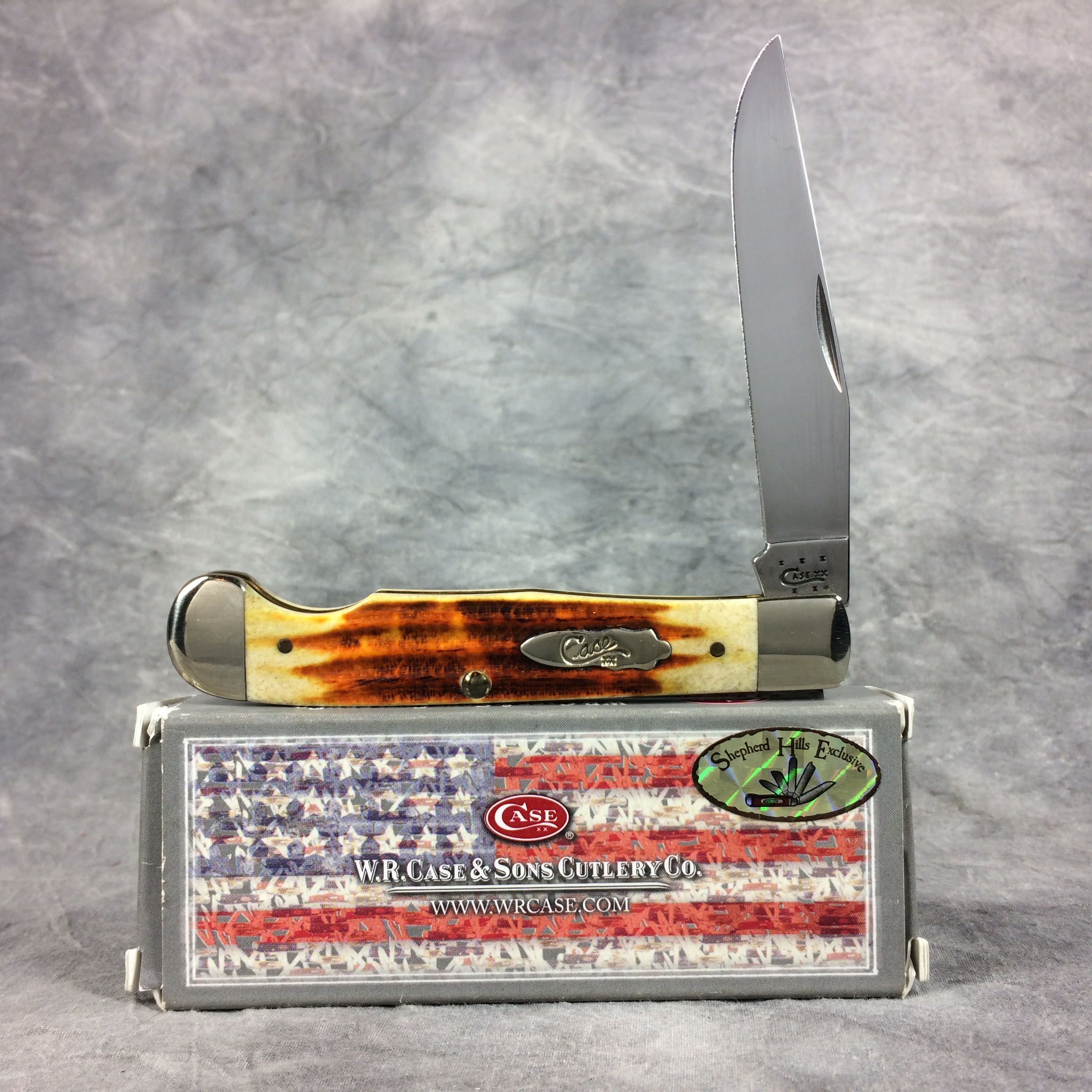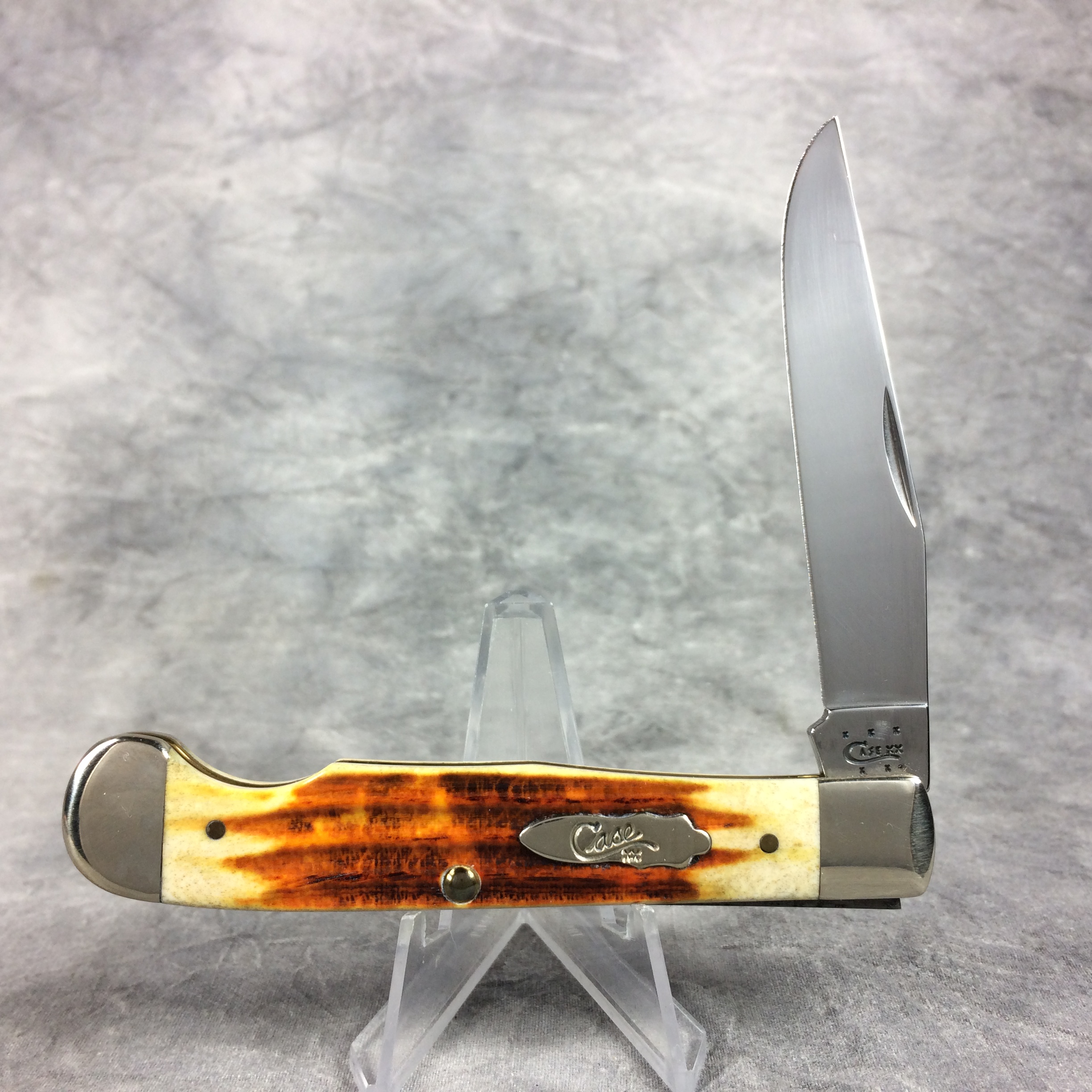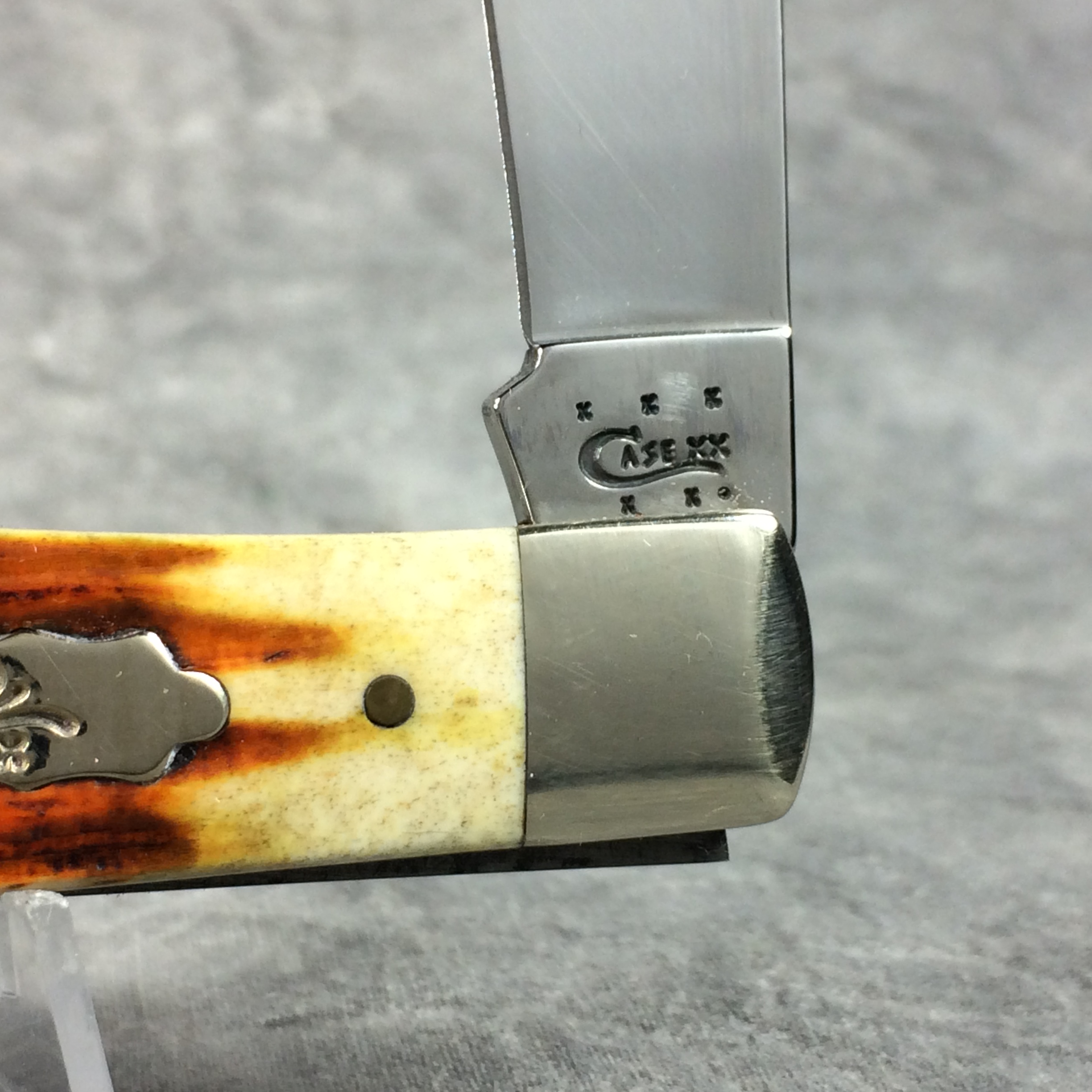 November 03, 2025 - 4-1/8 inches closed. 7-1/4 inches open. Made in USA. "  x x x  Case XX   x x*  " (with lightning bolt S) and "USA 6154EZ SS" tang stamps. Oval long-C script "Case xx" shield. Stainless Steel blade. Antique jigged bone handle. Nickel Silver bolsters. Brass liner.
