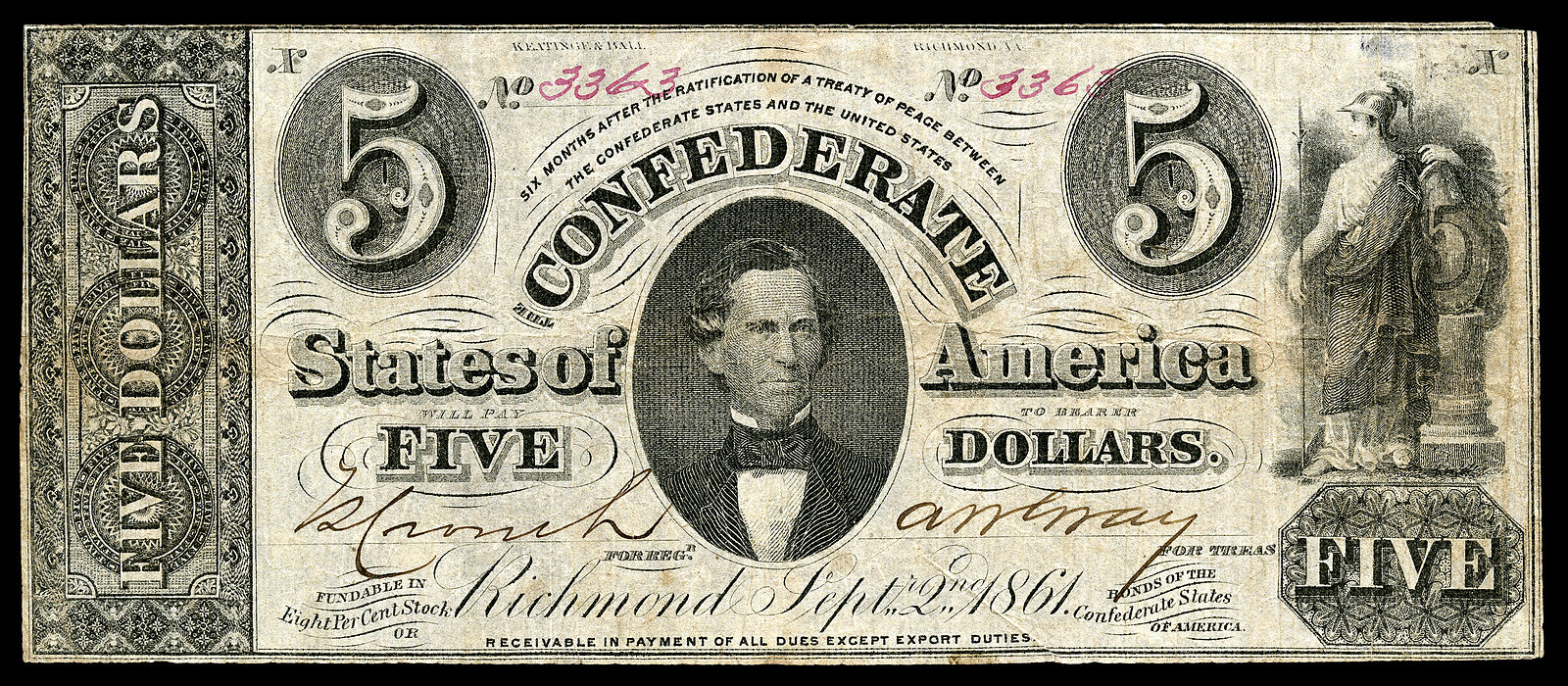 You have: (CSA T-34) 1861 $5 Confederate States of America Note