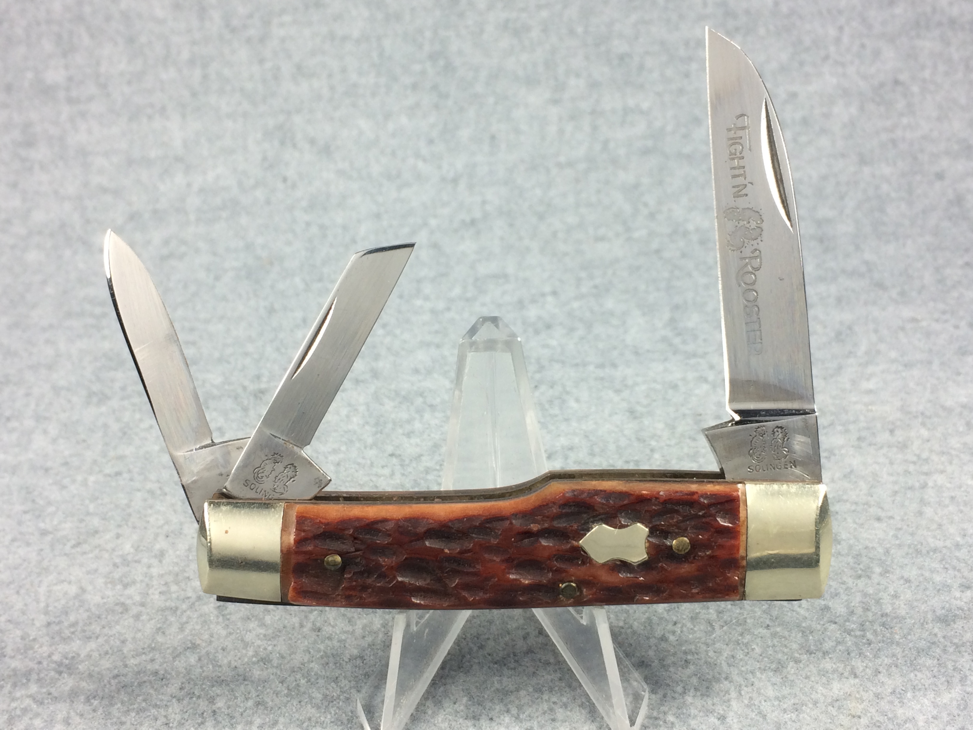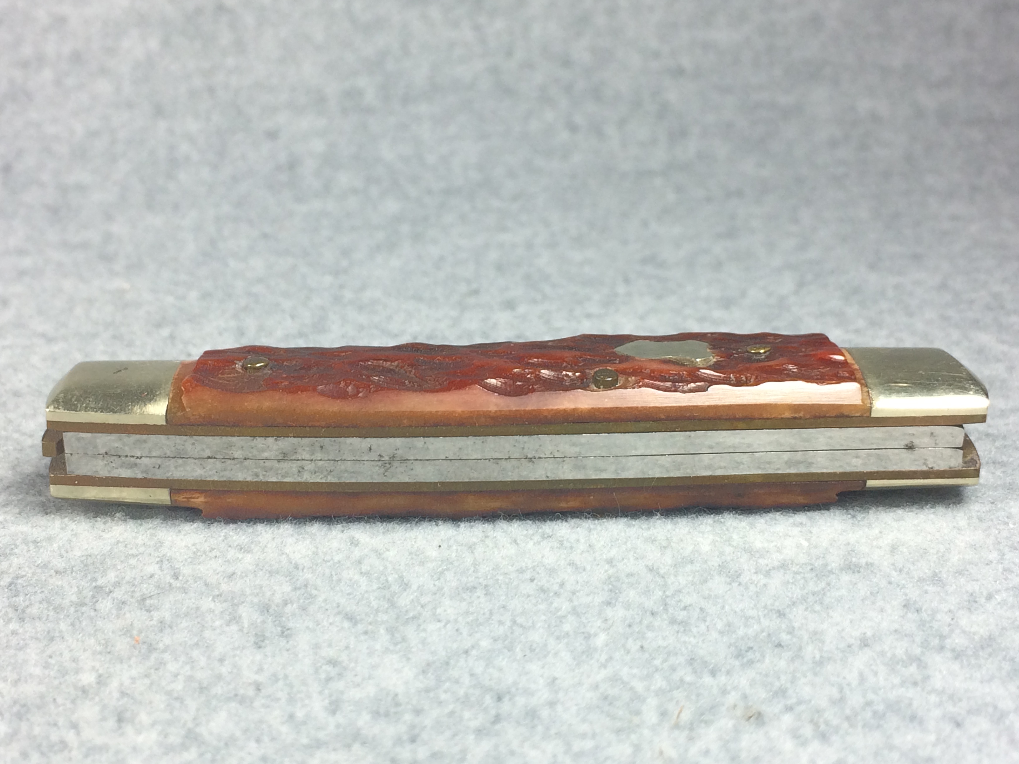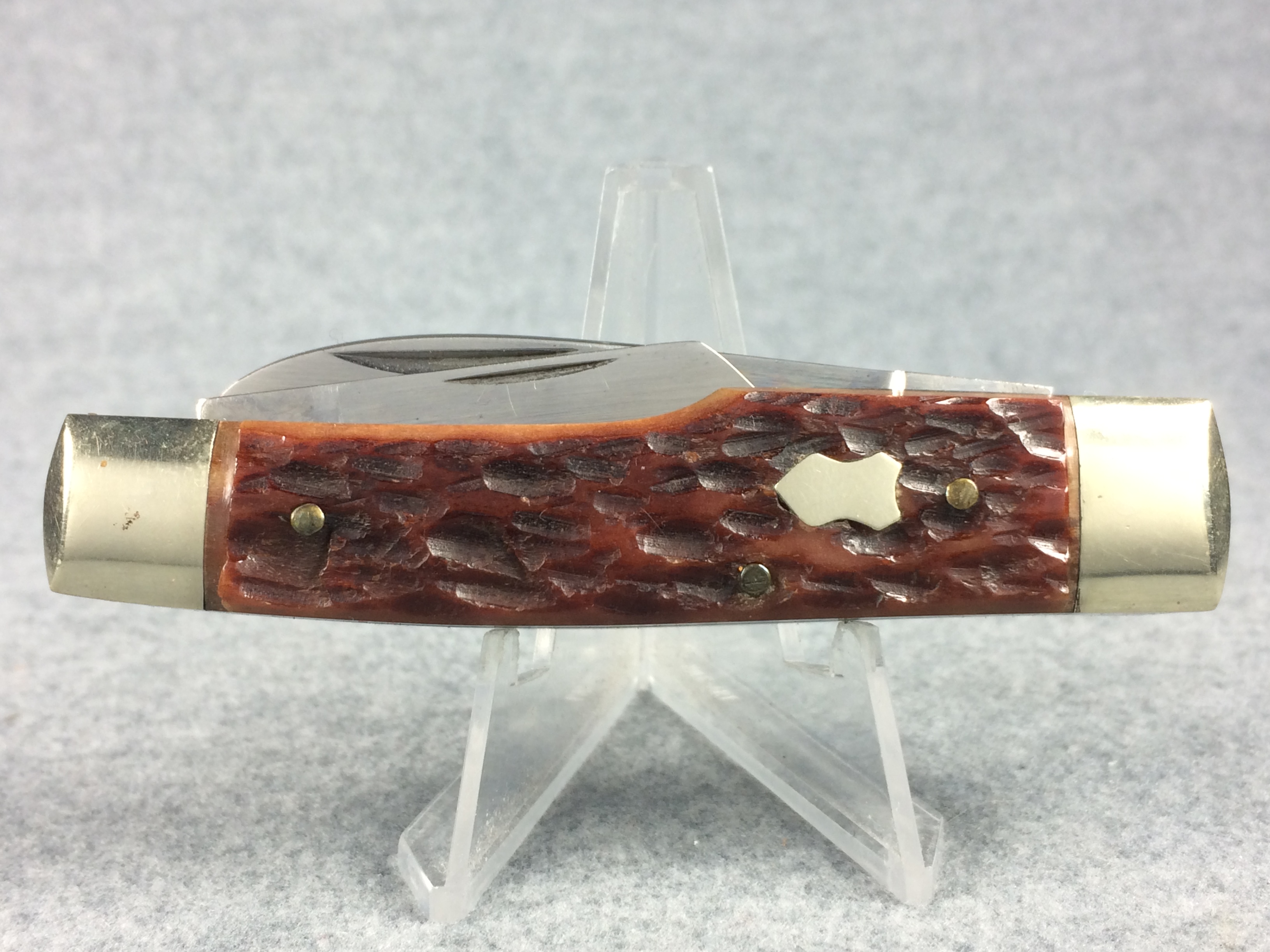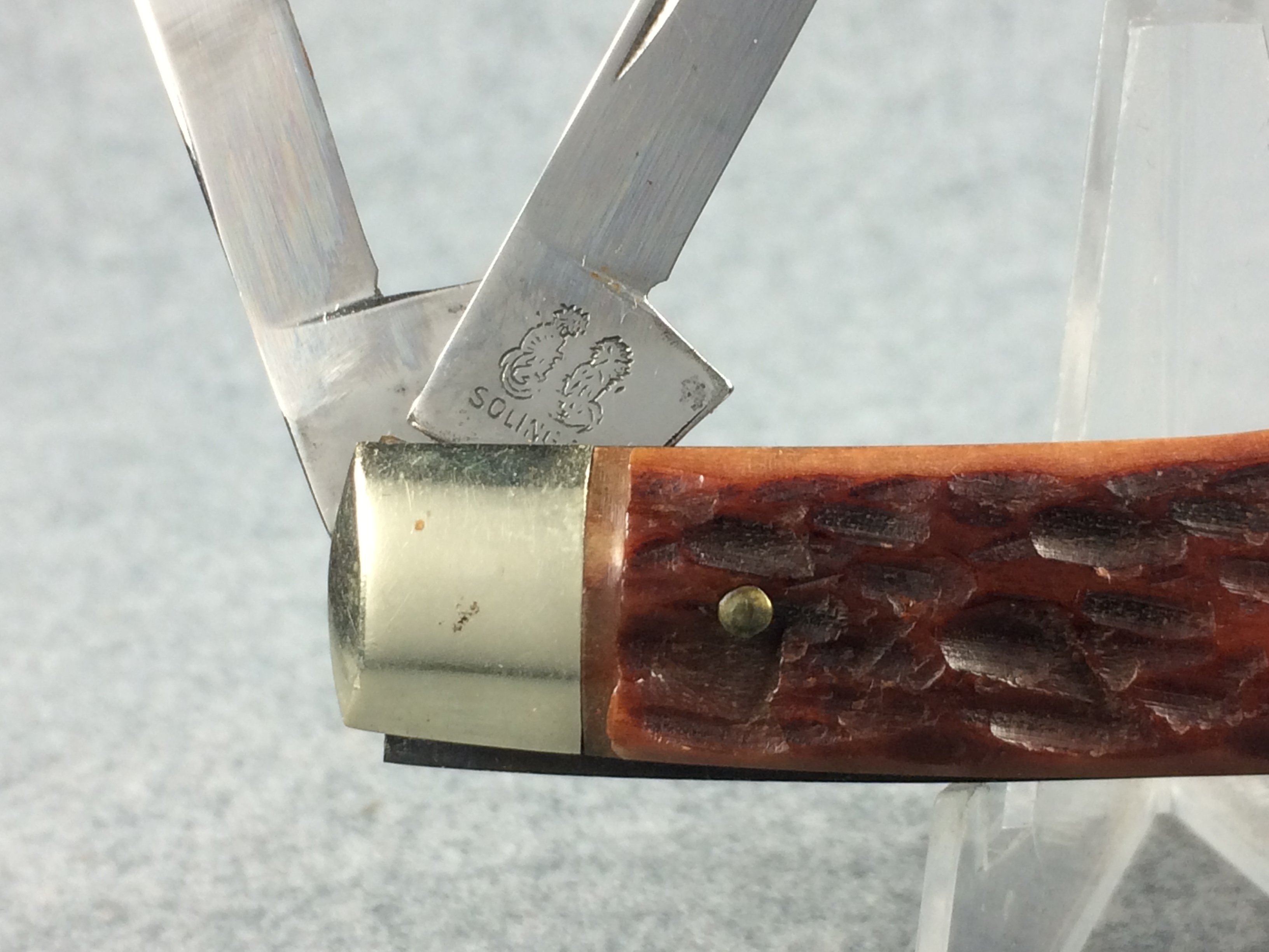 November 06, 2025 - 3-1/2 inches closed. 6 inches open. Made in Germany. Fight'n Rooster logo with "SOLINGEN" and "FRANK BUSTER CUTLERY CO. GERMANY" tang stamps. Master blade etched "FIGHT'N ROOSTER" with logo. Brown jigged bone handle. Nickel Silver bolsters. Brass liner.