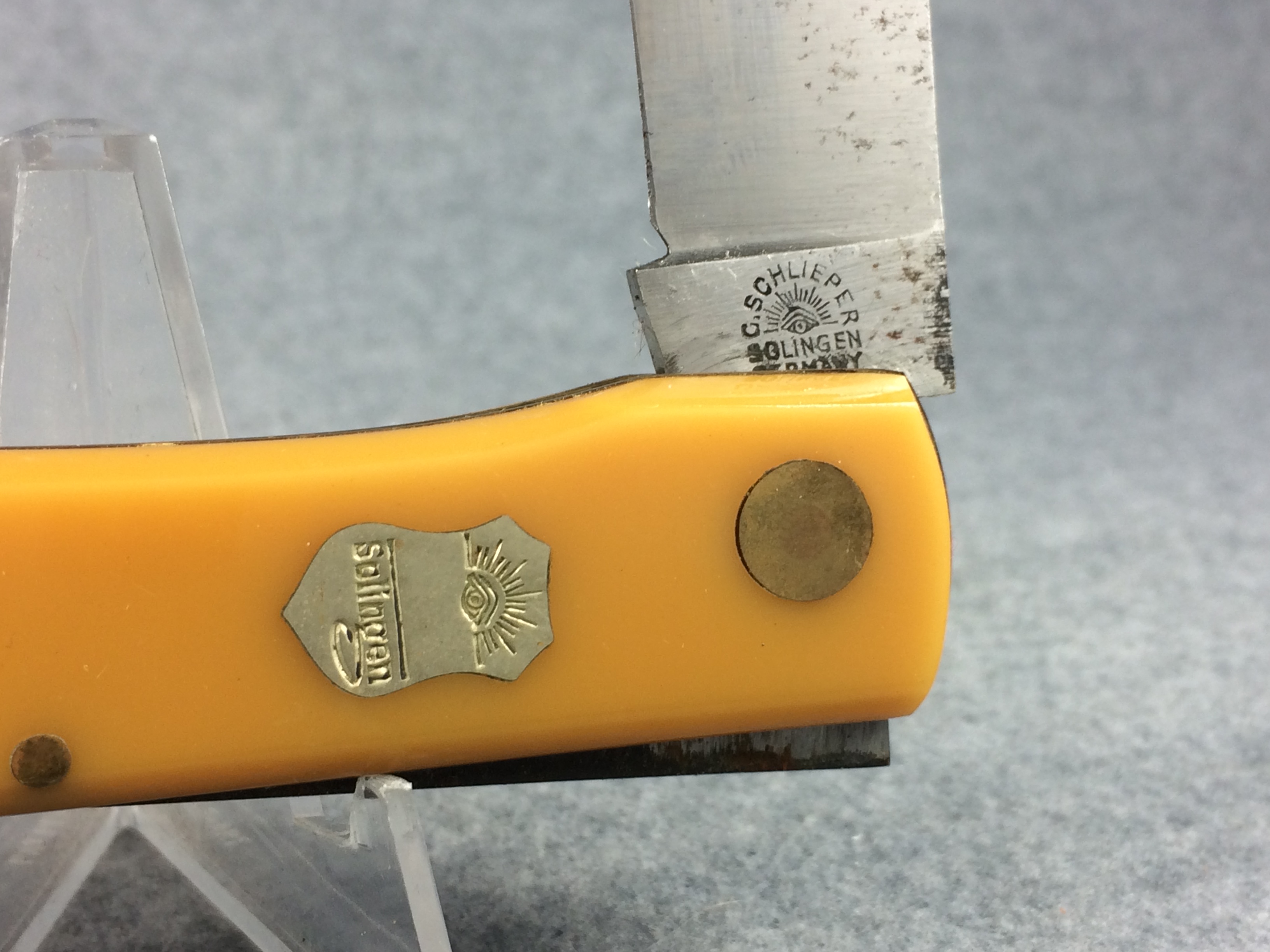 You have: CARL SCHLIEPER GERMAN EYE 99YL Yellow Single-Blade 4-5/8" Lockback