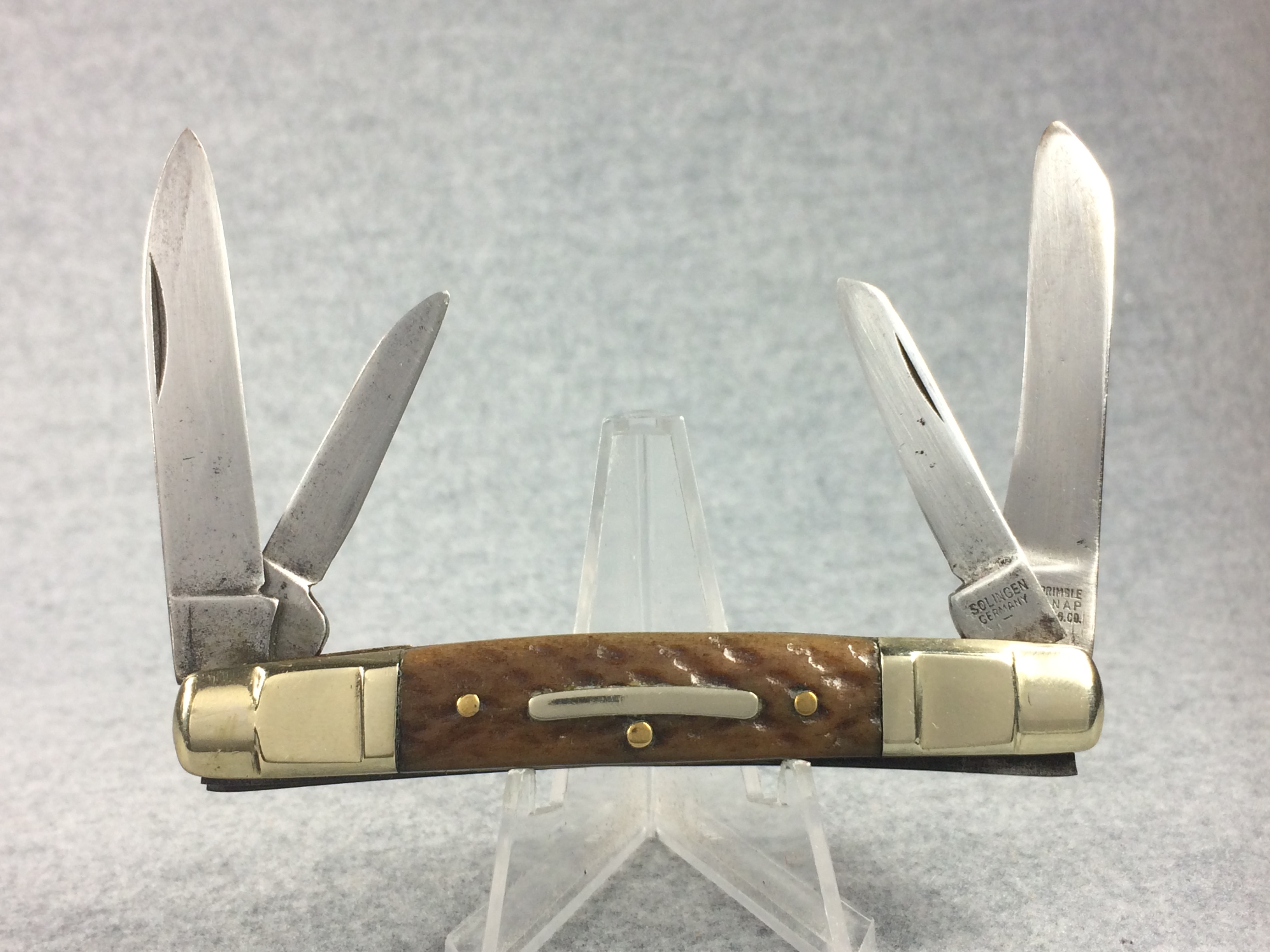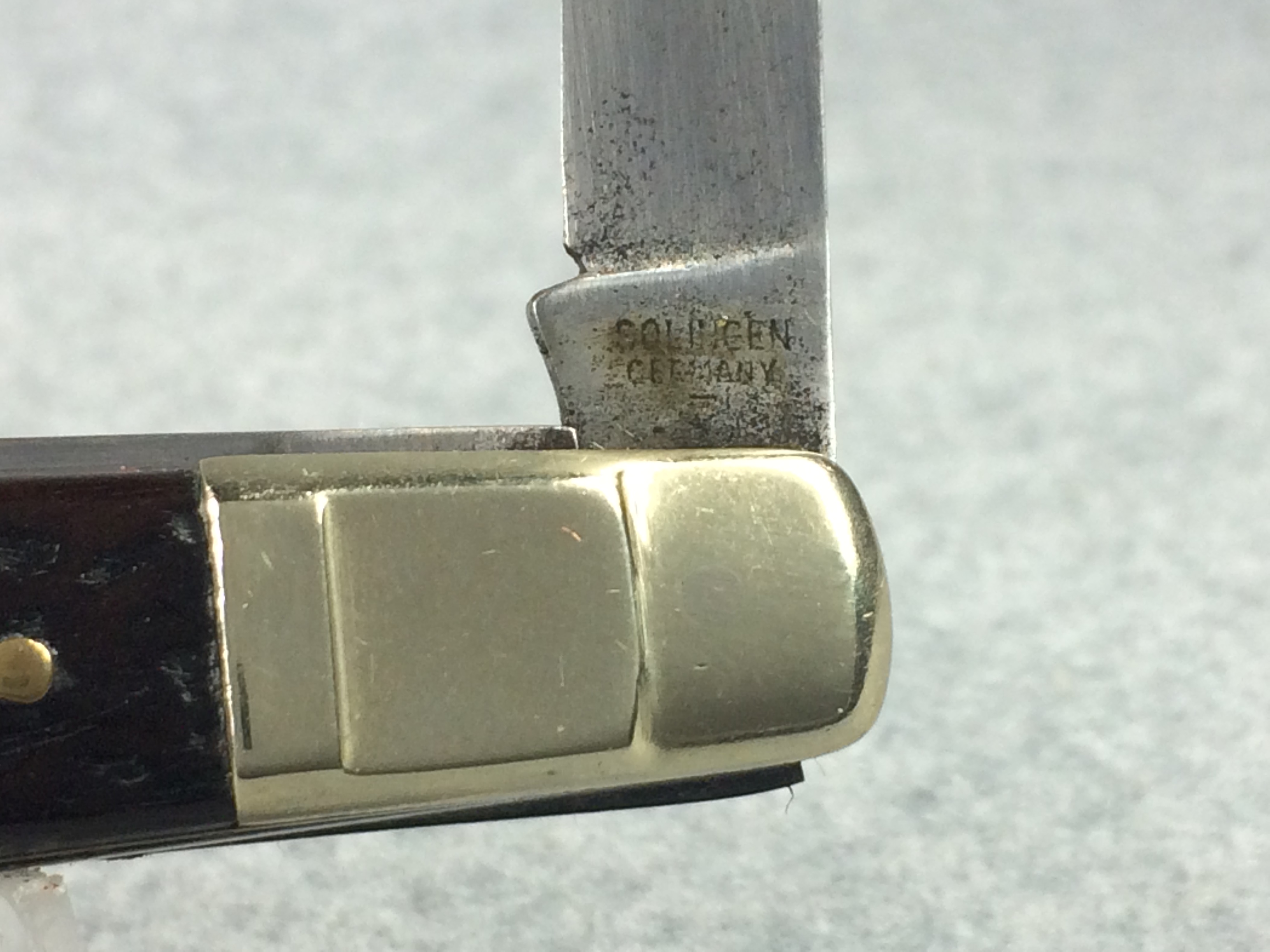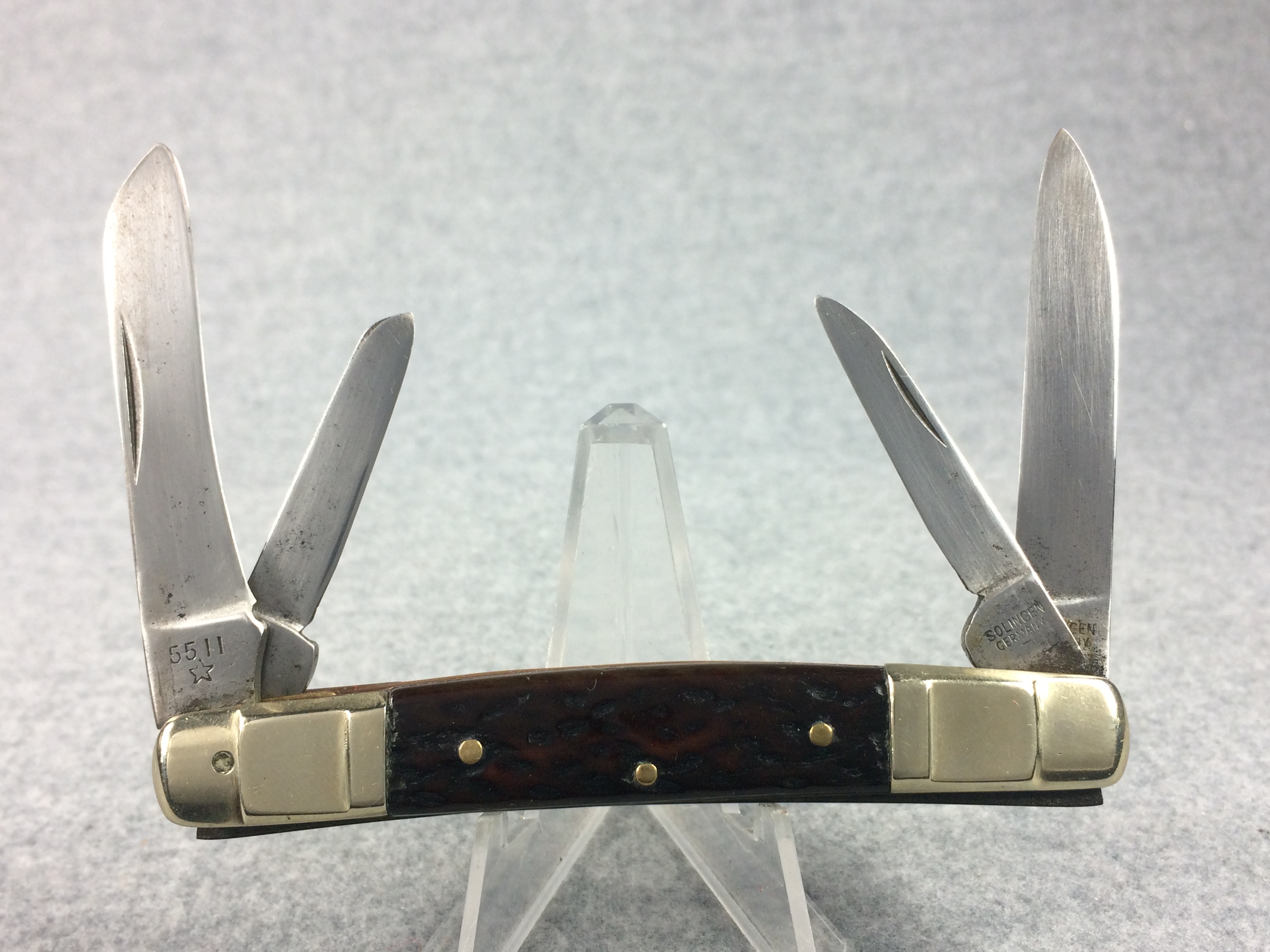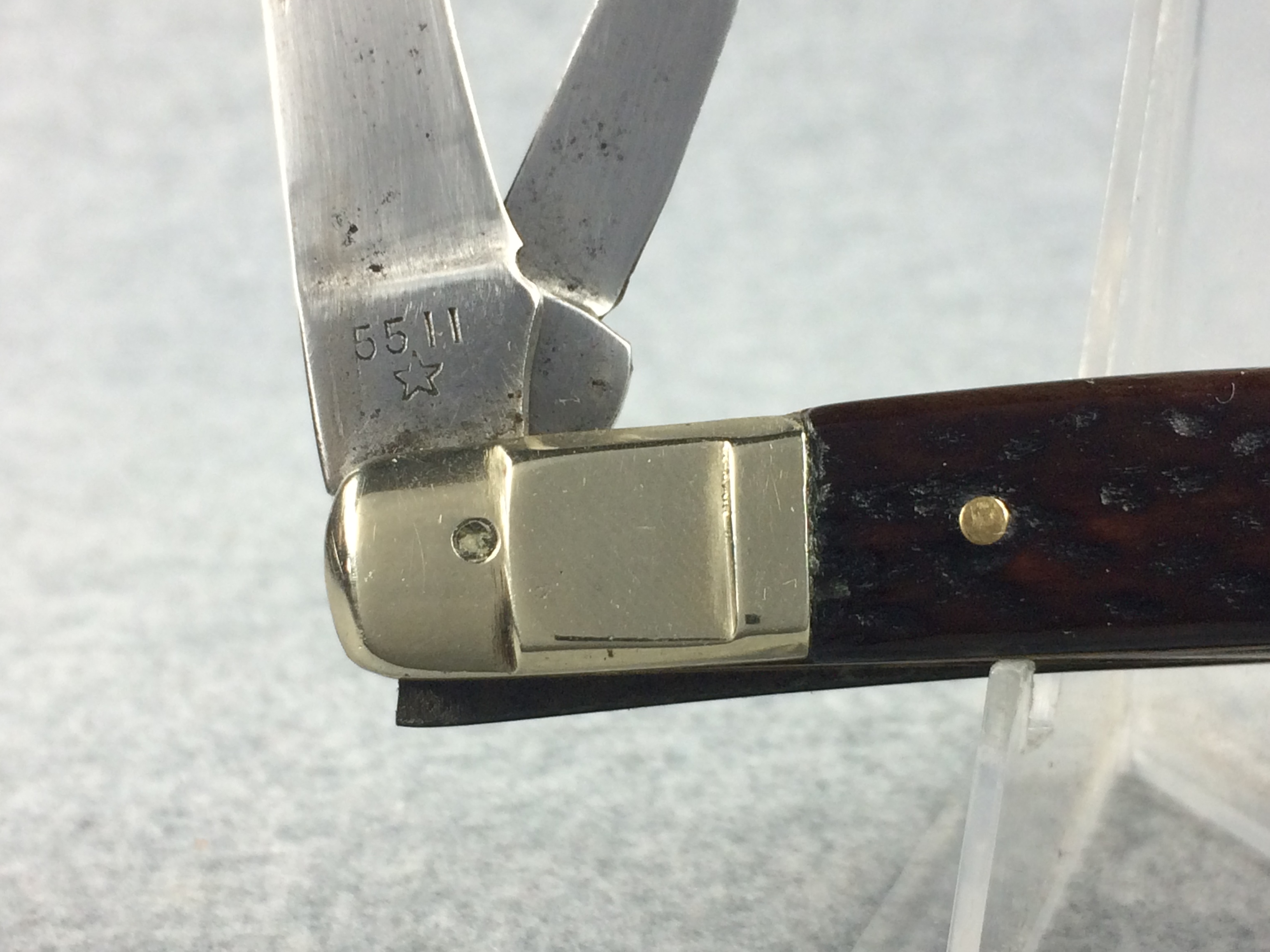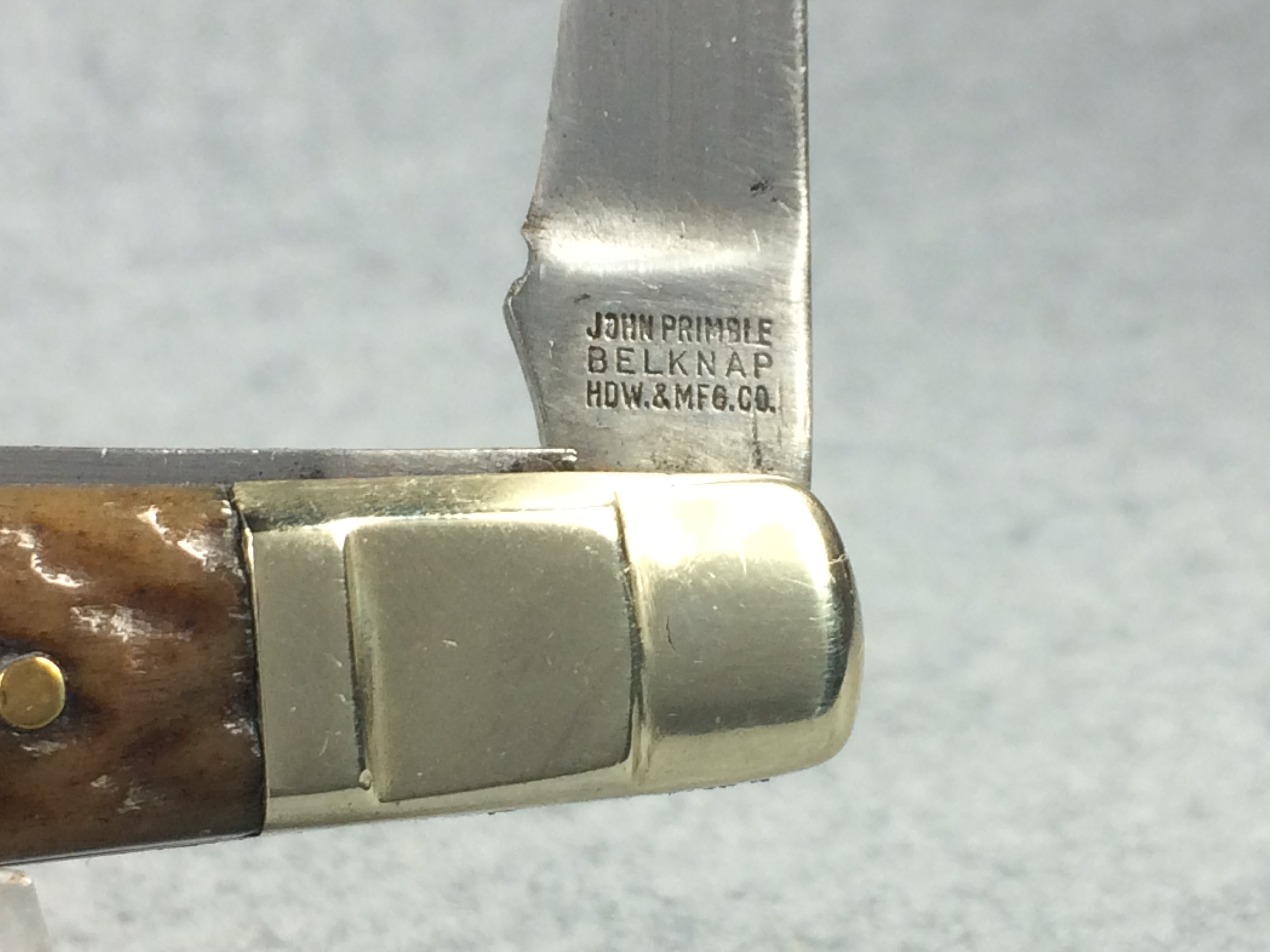 March 09, 2026 - 3-5/8 inches closed. 5-7/8 inches open. "JOHN PRIMBLE BELKNAP HDW. & MFG. CO.", "5511" over star symbol, and "SOLINGEN GERMANY" tang stamps. Plain bar shield. Brown jigged bone handles. Brass liner. No box.