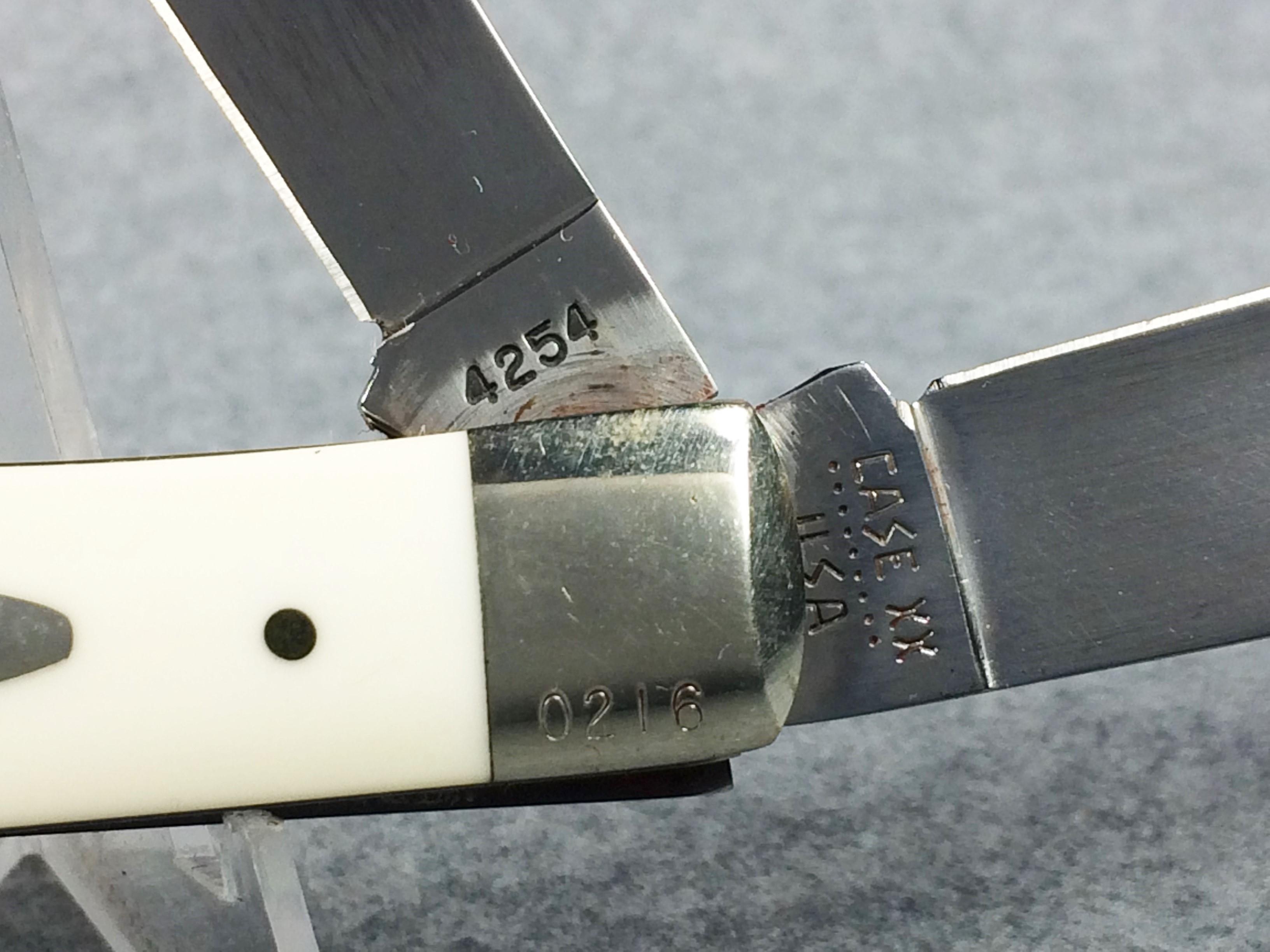 November 03, 2025 - Limited Edition of 2500. 4-1/8 inches closed. 7-3/8 inches open. Made in USA. "CASE XX ********* USA" (9 dot with lightning bolt S) and "4254" tang stamps. Single Oval 'Open C' CASE shield. Chrome vanadium blades. Smooth white composition handle. Nickel Silver bolsters. Front right bolster etched with serial. Brass liner.