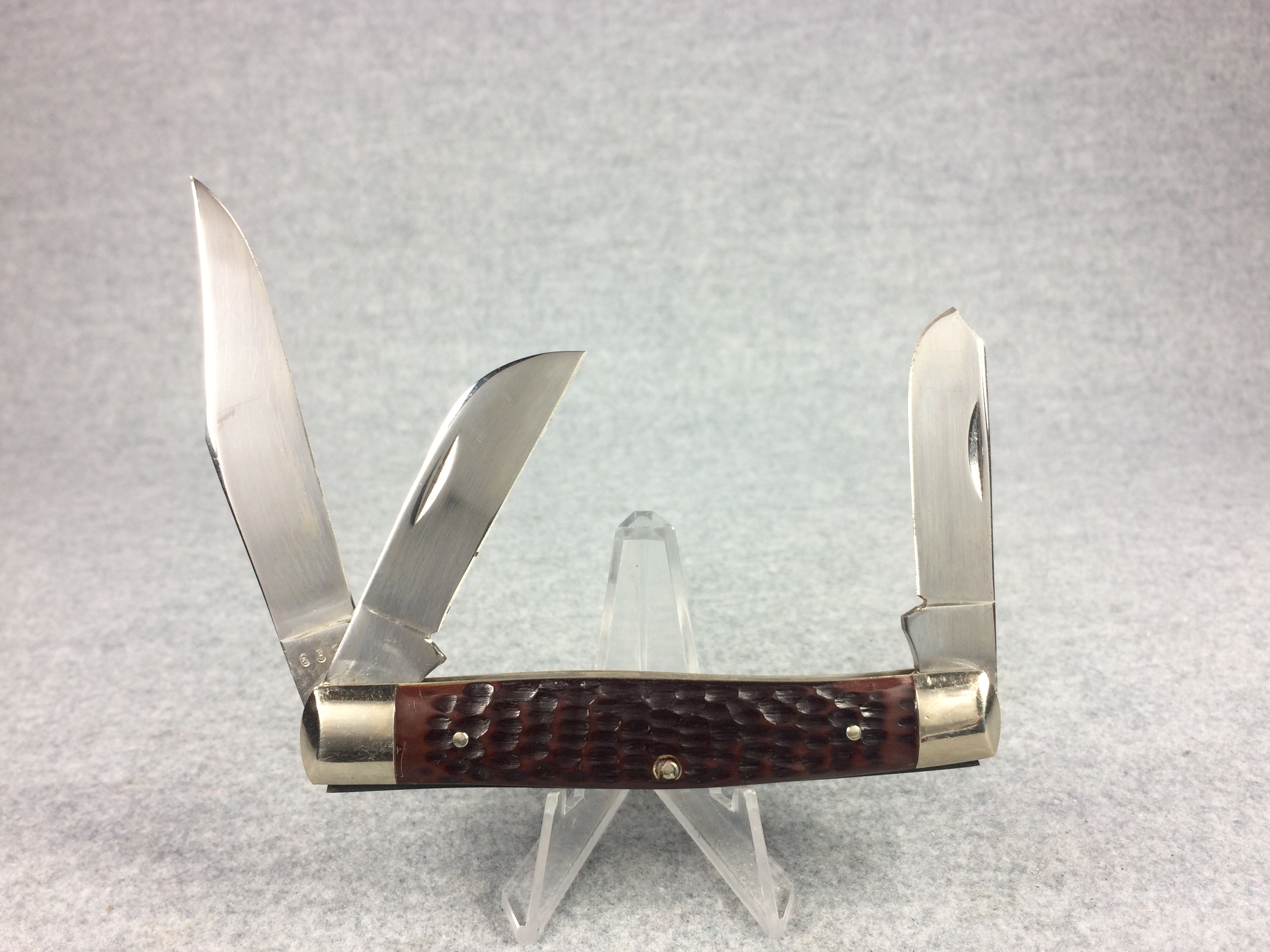 November 06, 2025 - 3-Blade Texas Stockman Knife. 4 inches closed. 7 inches open. Made in USA. "CASE XX USA ****** " (6 dot) and "6392" tang stamps. Double Oval 'Open C' CASE shield. Chrome Vanadium blades. Jigged delrin handle. Nickel Silver bolsters and liner.