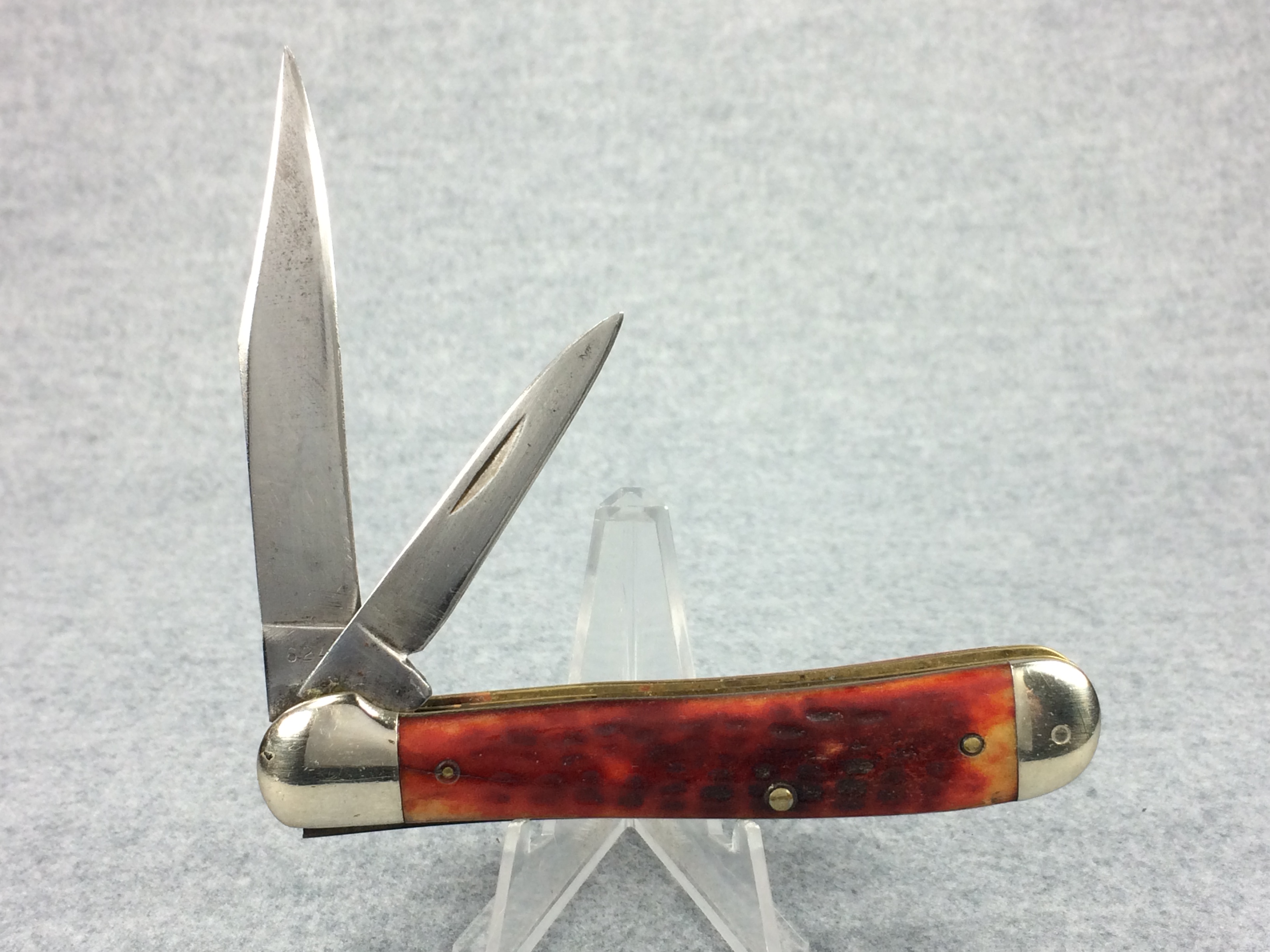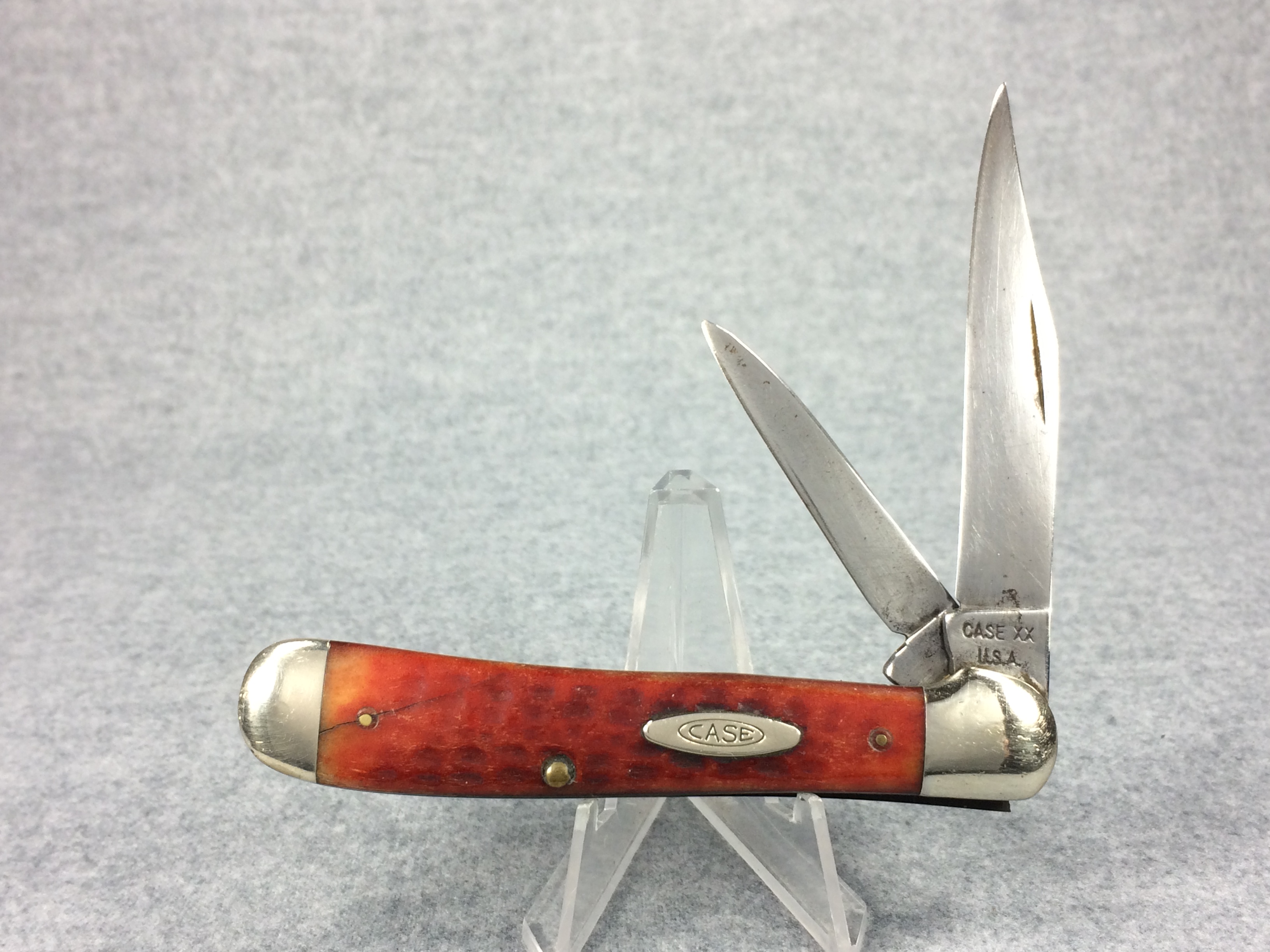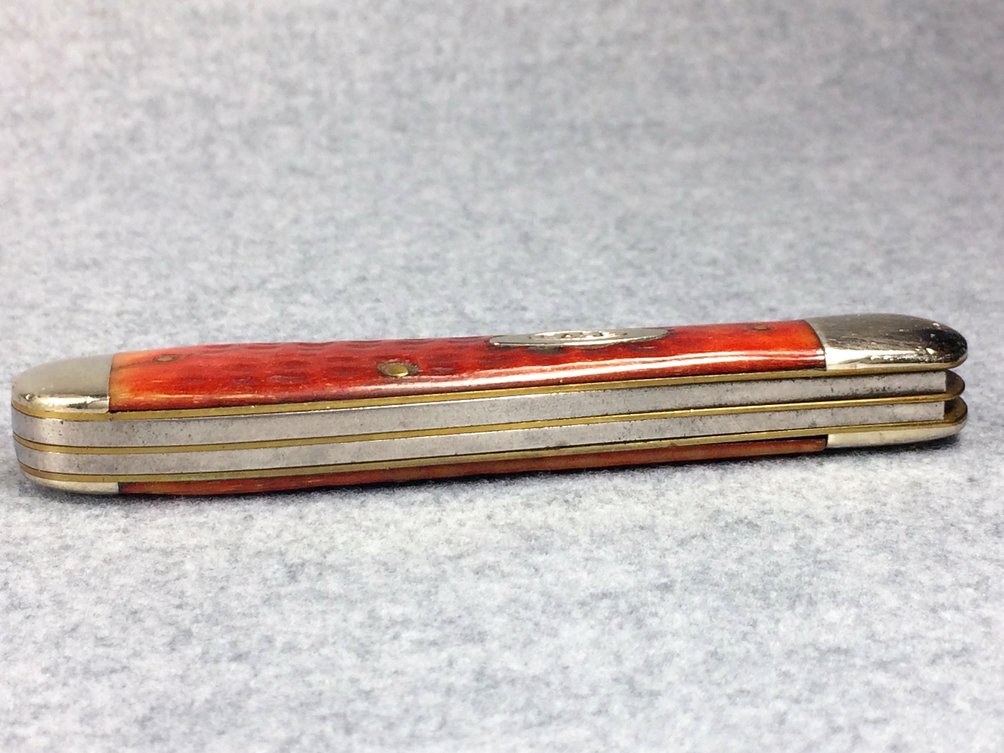 January 08, 2026 - 3-7/8 inches closed. 6-7/8 inches open. Made in USA. "CASE XX U.S.A." and "6249" tang stamps. Double Oval 'Open C' CASE shield. Chrome Vanadium blades. Red/Brown Jigged Bone handle. Nickel Silver bolsters. Brass liner.