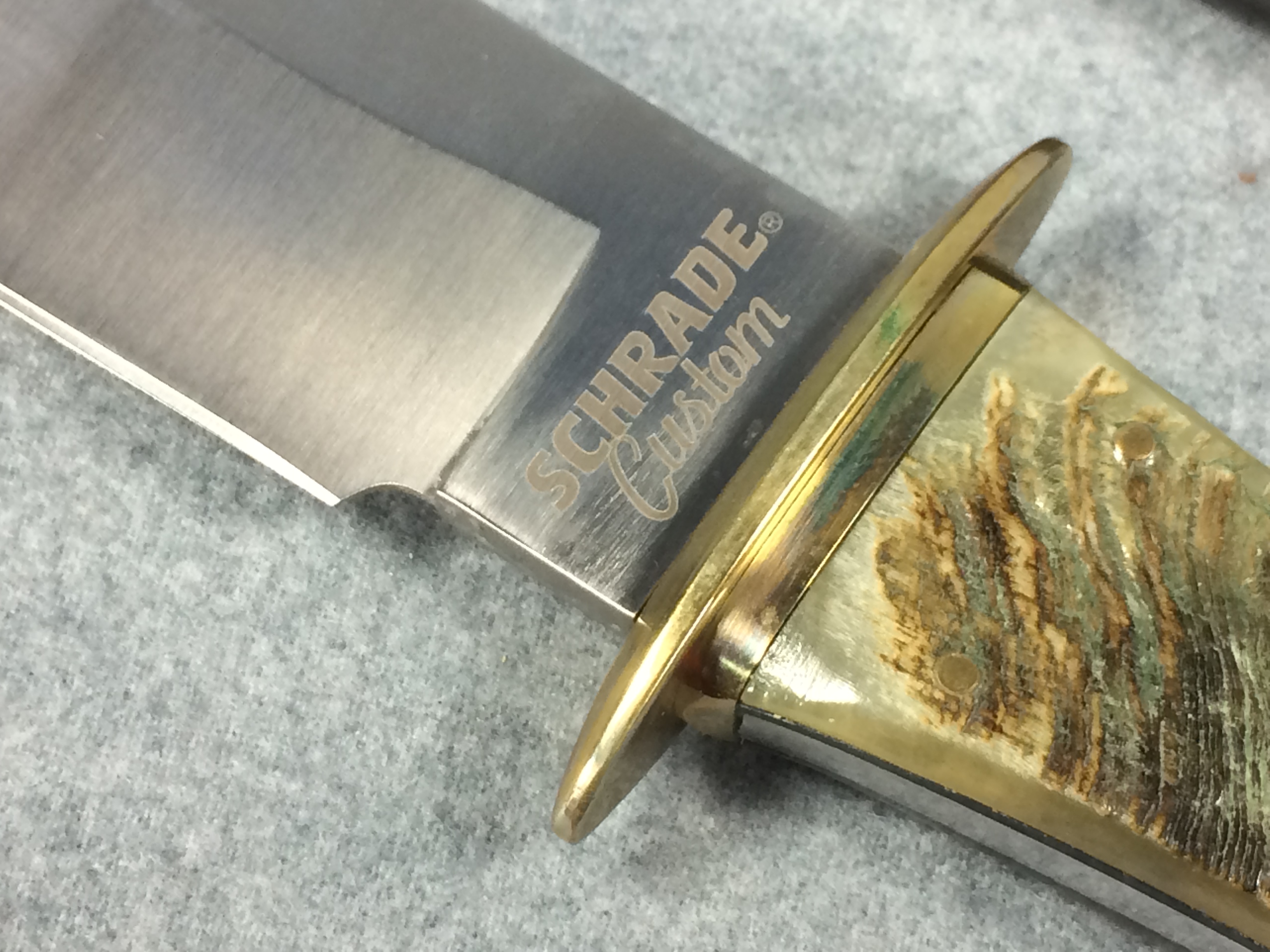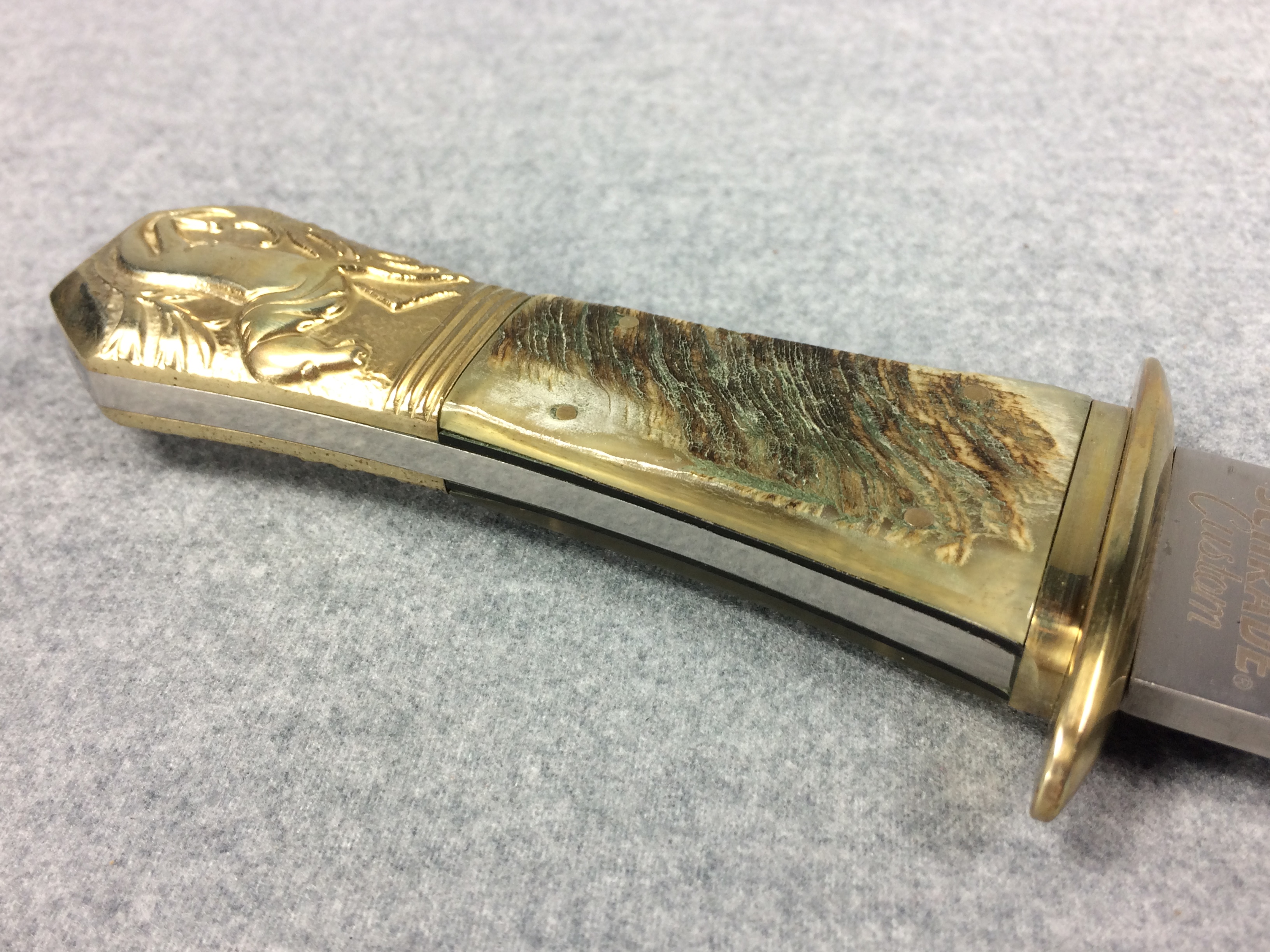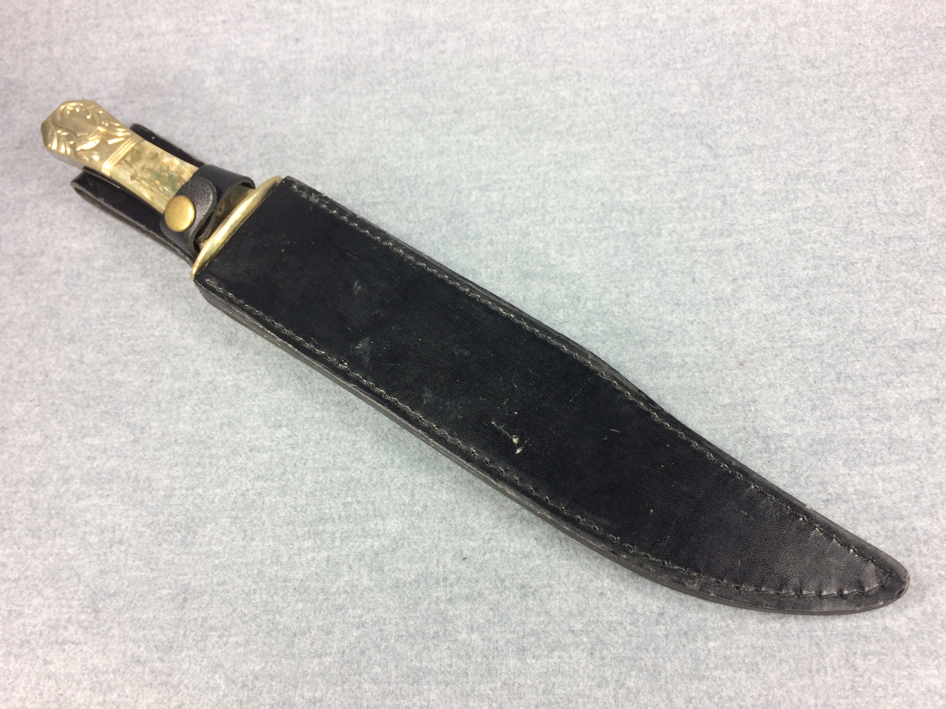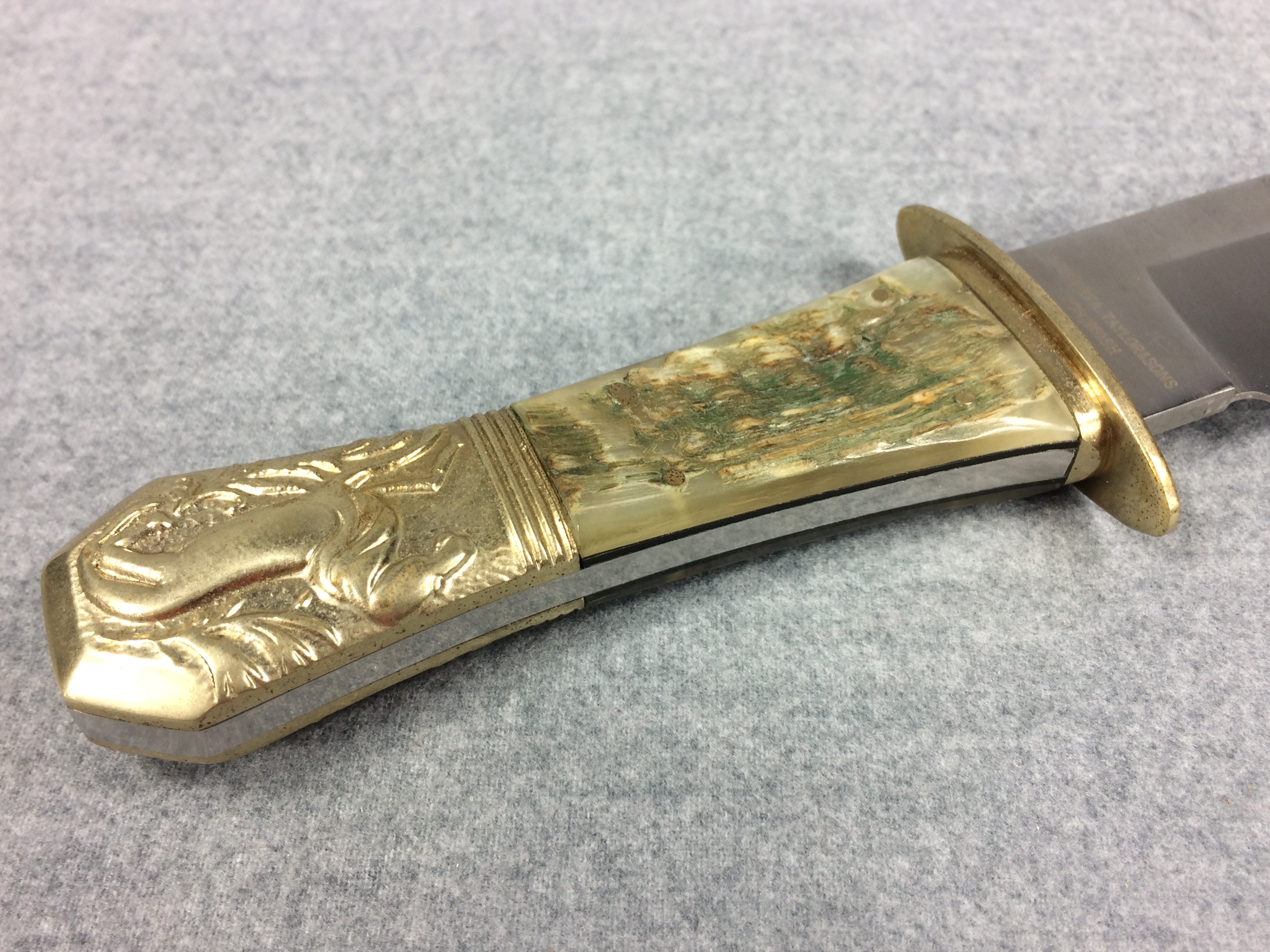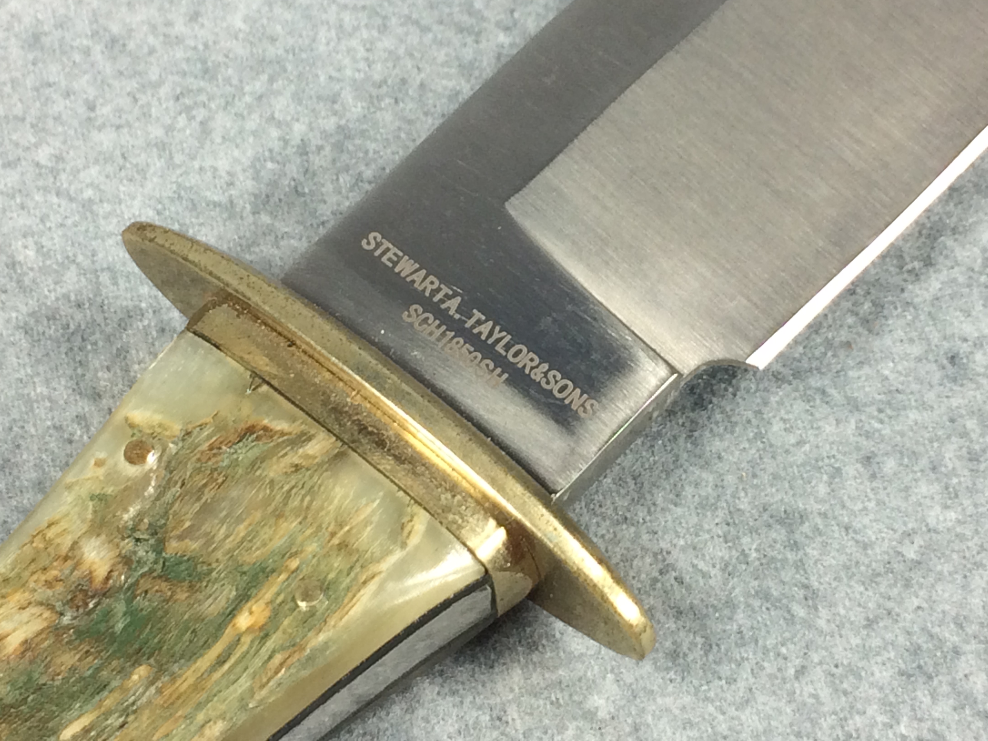You have: SCHRADE Custom Stewart A Taylor & Sons SCH1850SH 15" Ram's Horn Horse Bowie Knife
