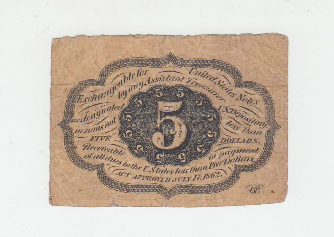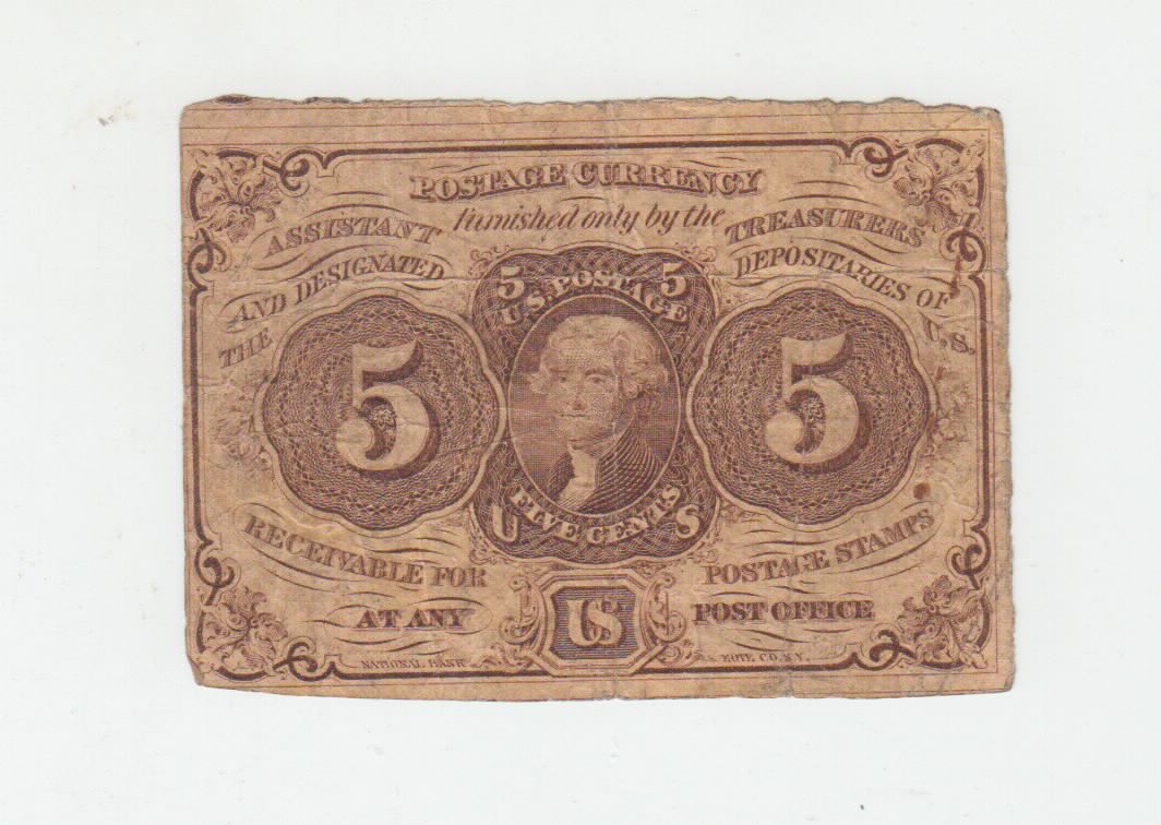 You have: (Fr-1230) 1862 5 Cents Postage Currency Note (Plain Edges)