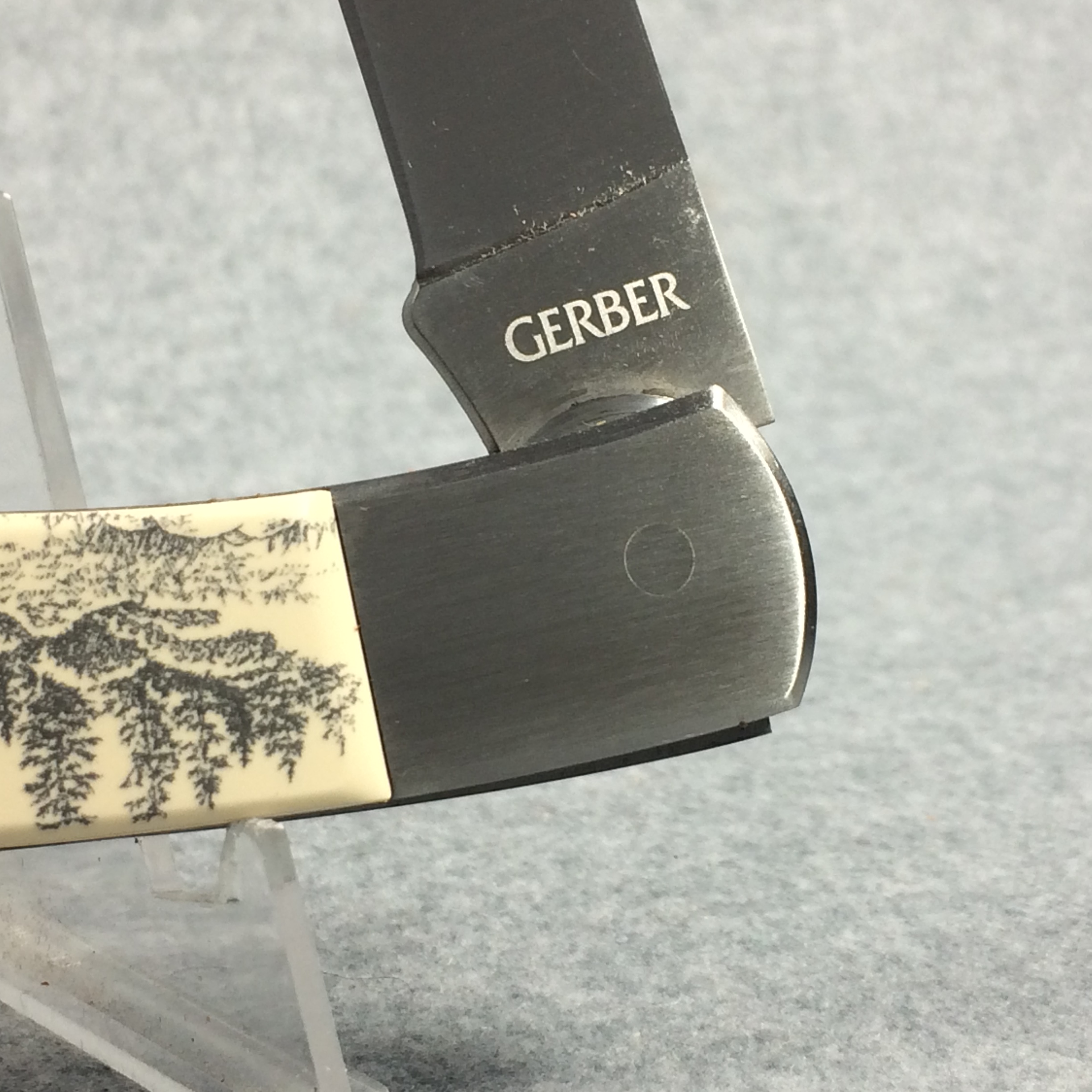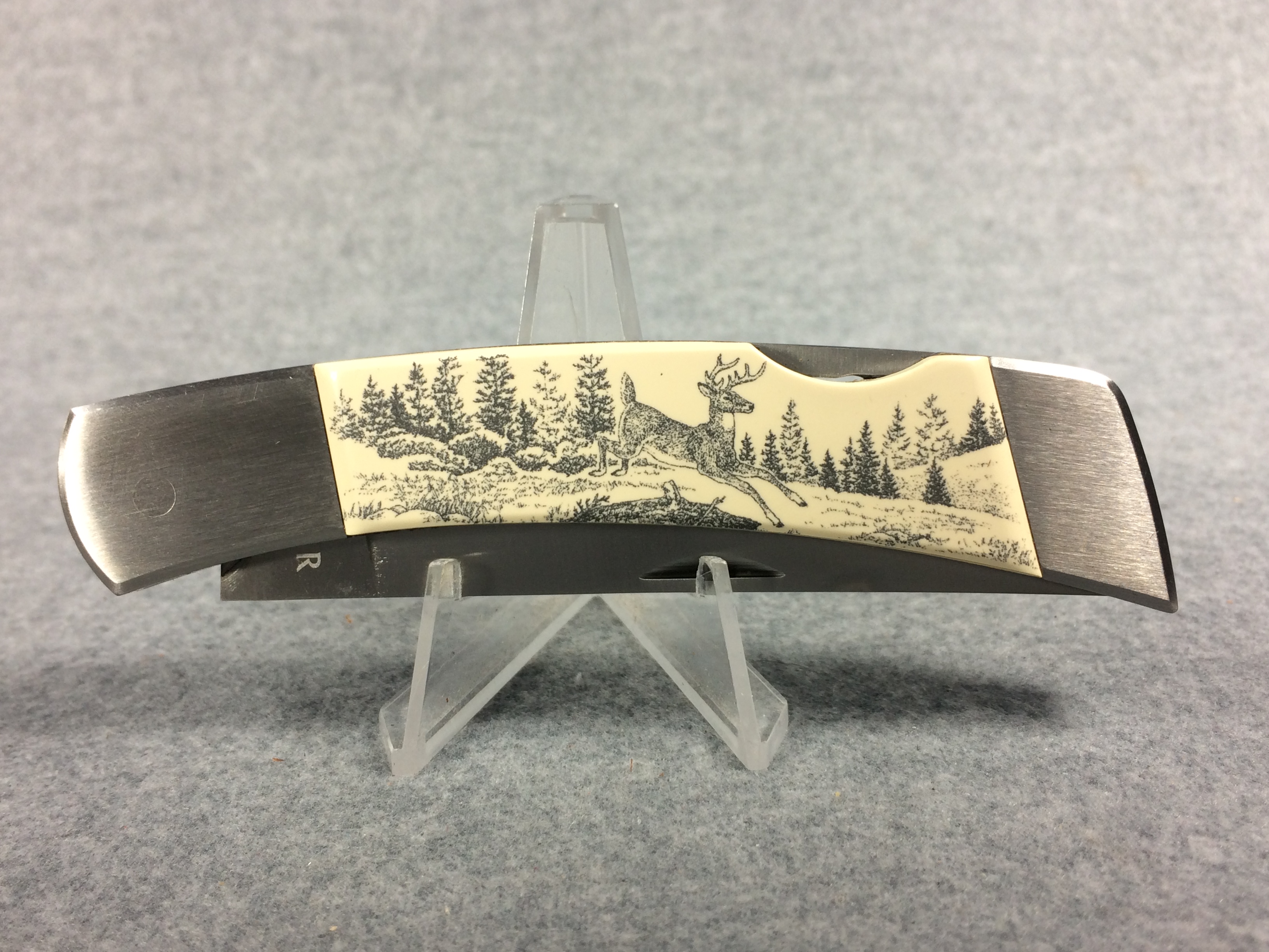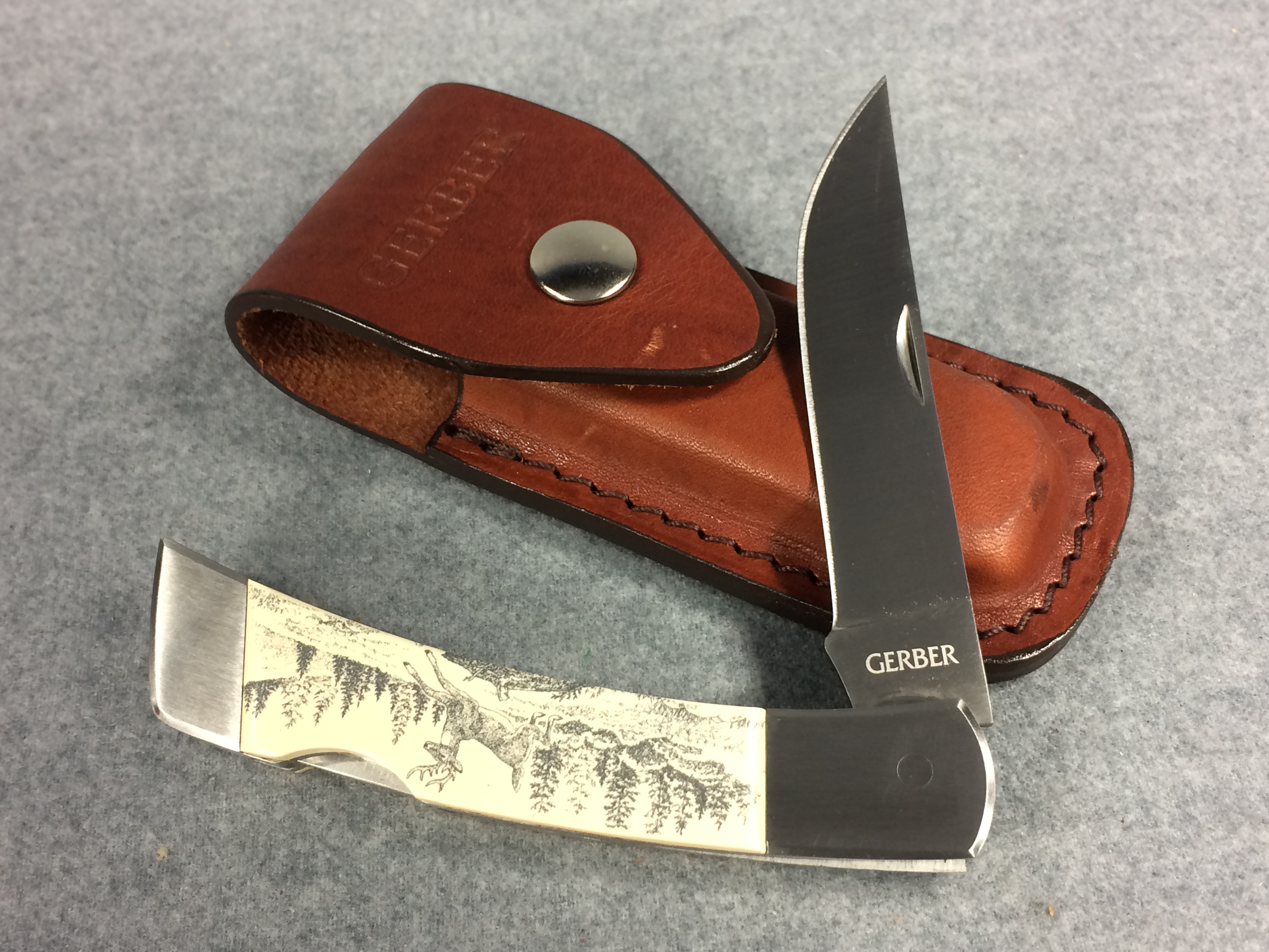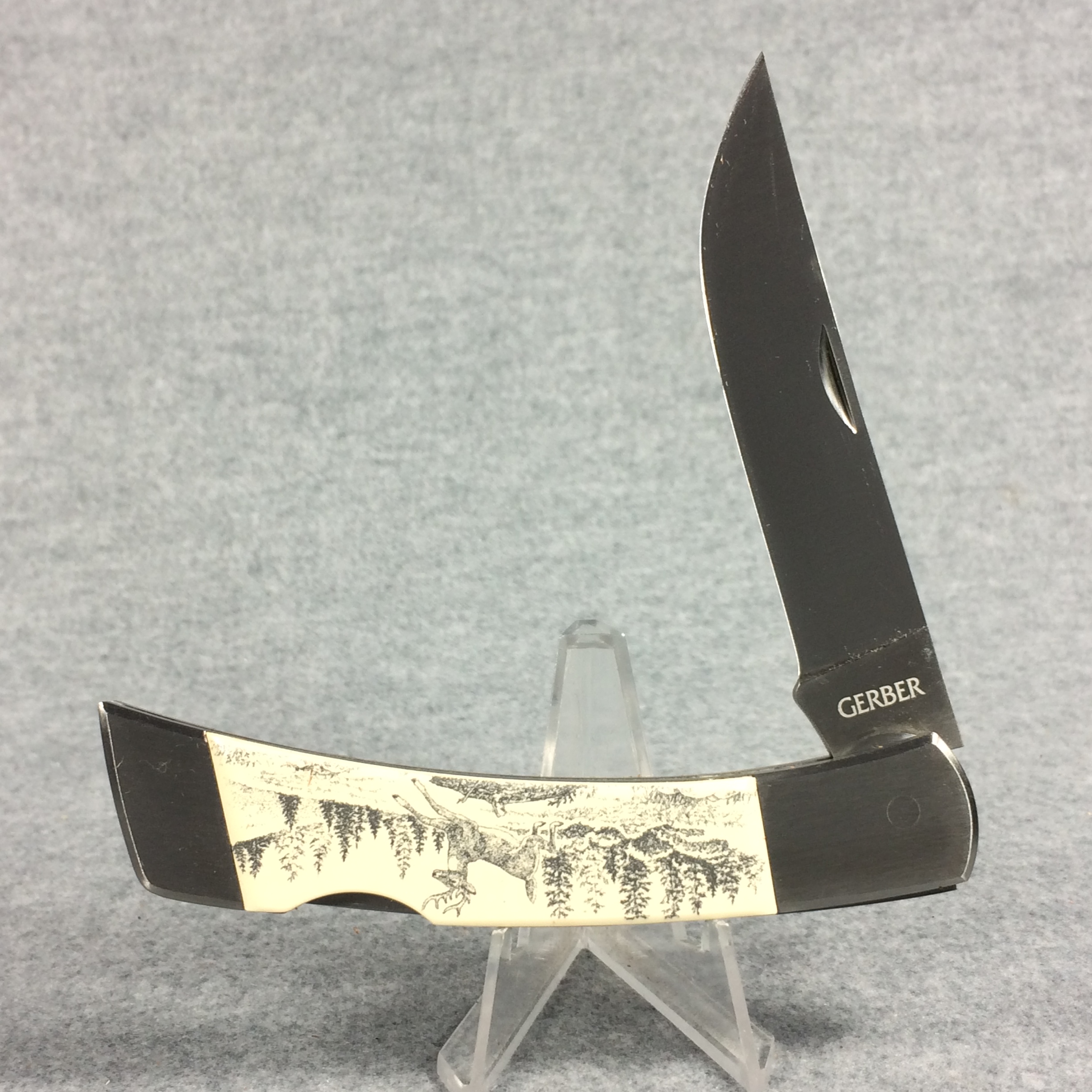 You have: GERBER Scrimshawed Deer 4-1/2" Lockback with Leather Belt Sheath
