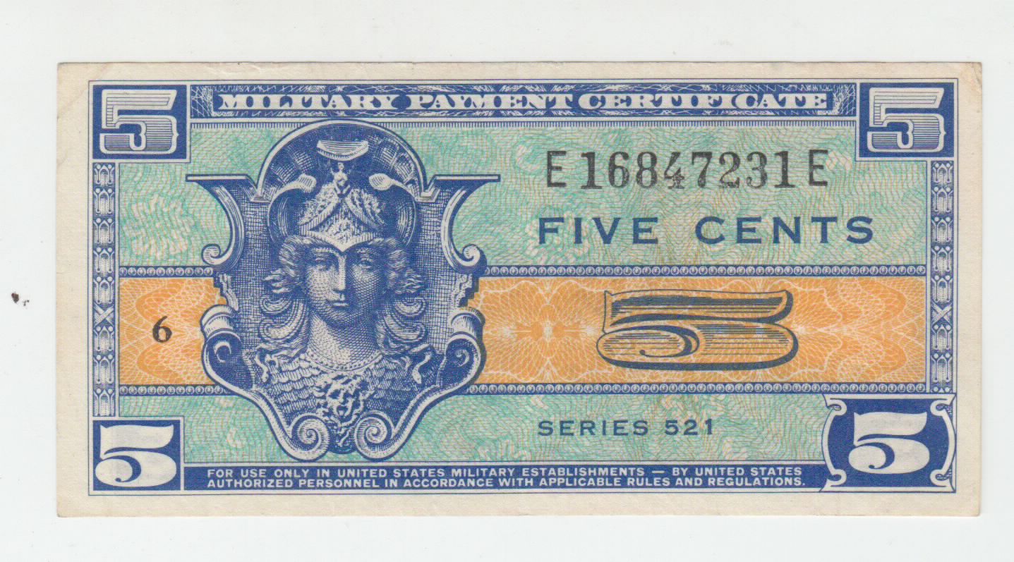 You have: 1954 5 cent Military Payment Certificate (Series 521)