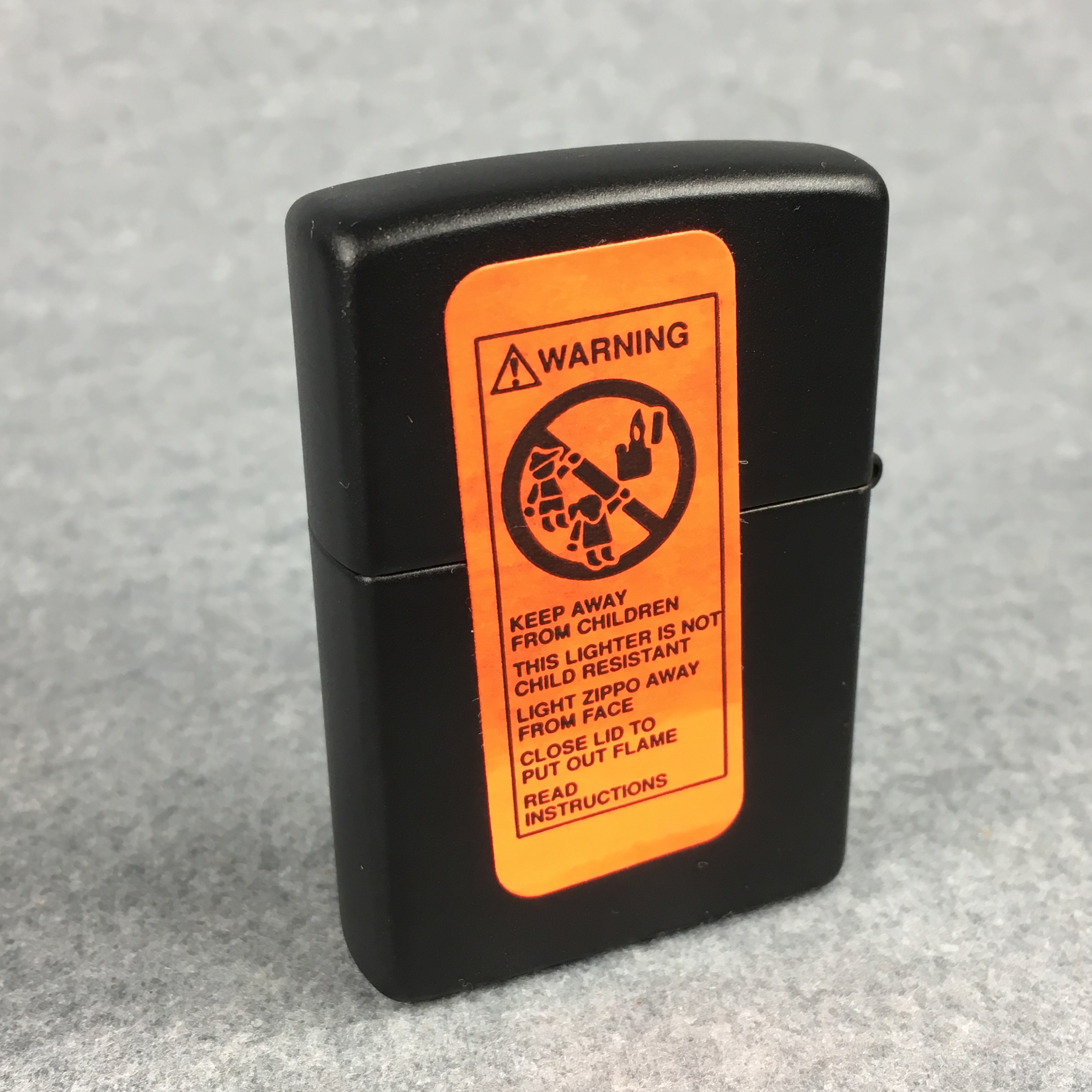 March 20, 2026 - ZIPPO Lighter, 1999. Matte black finish over solid brass. Standard size 1-7/16 inches wide by 2-1/4 inches high. Bottom of lighter reads: L Zippo XV Bradford, PA. Made in U.S.A. Sealed, no box.