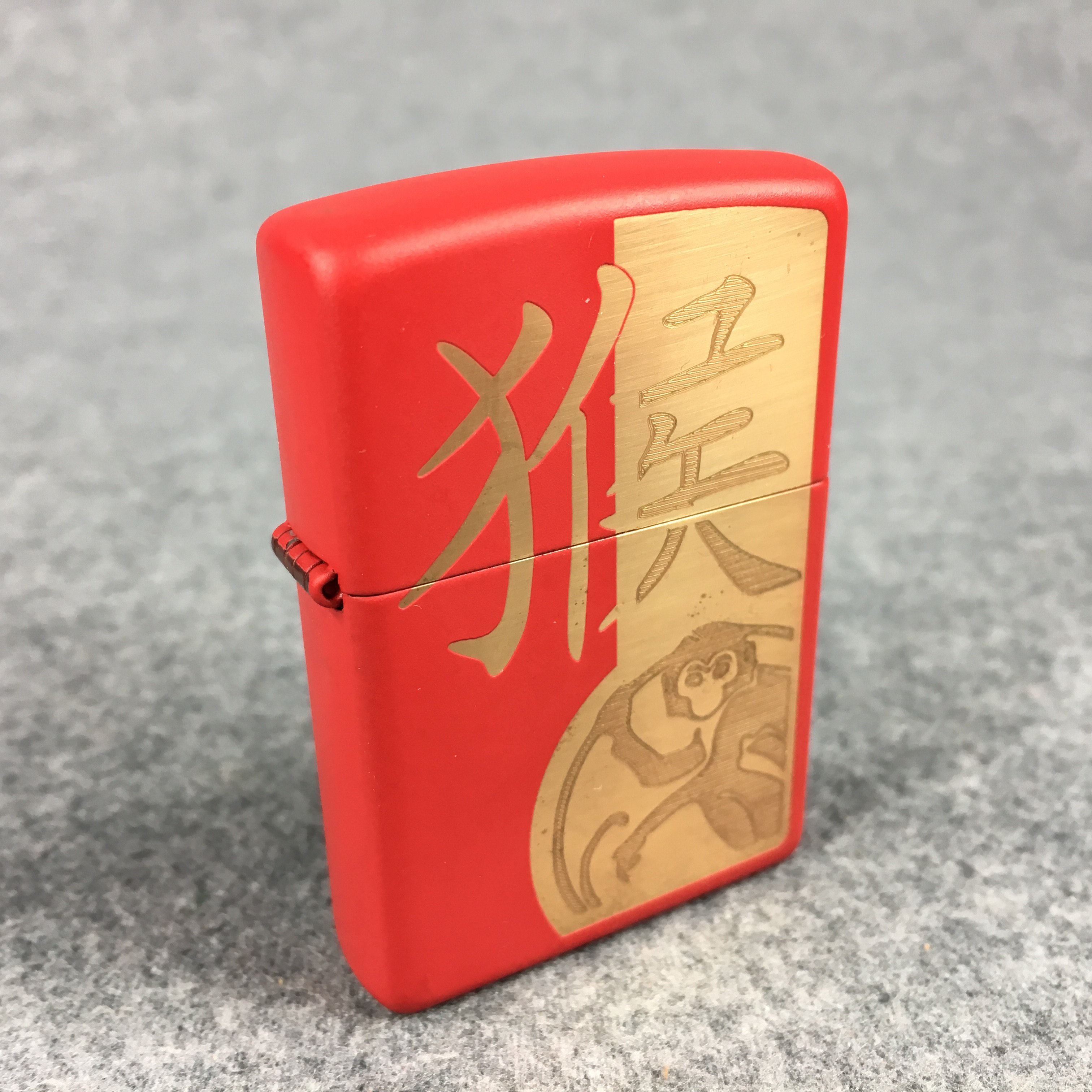 You have: YEAR OF THE MONKEY Laser Etched Matte Red Lighter (Zippo, 2015)