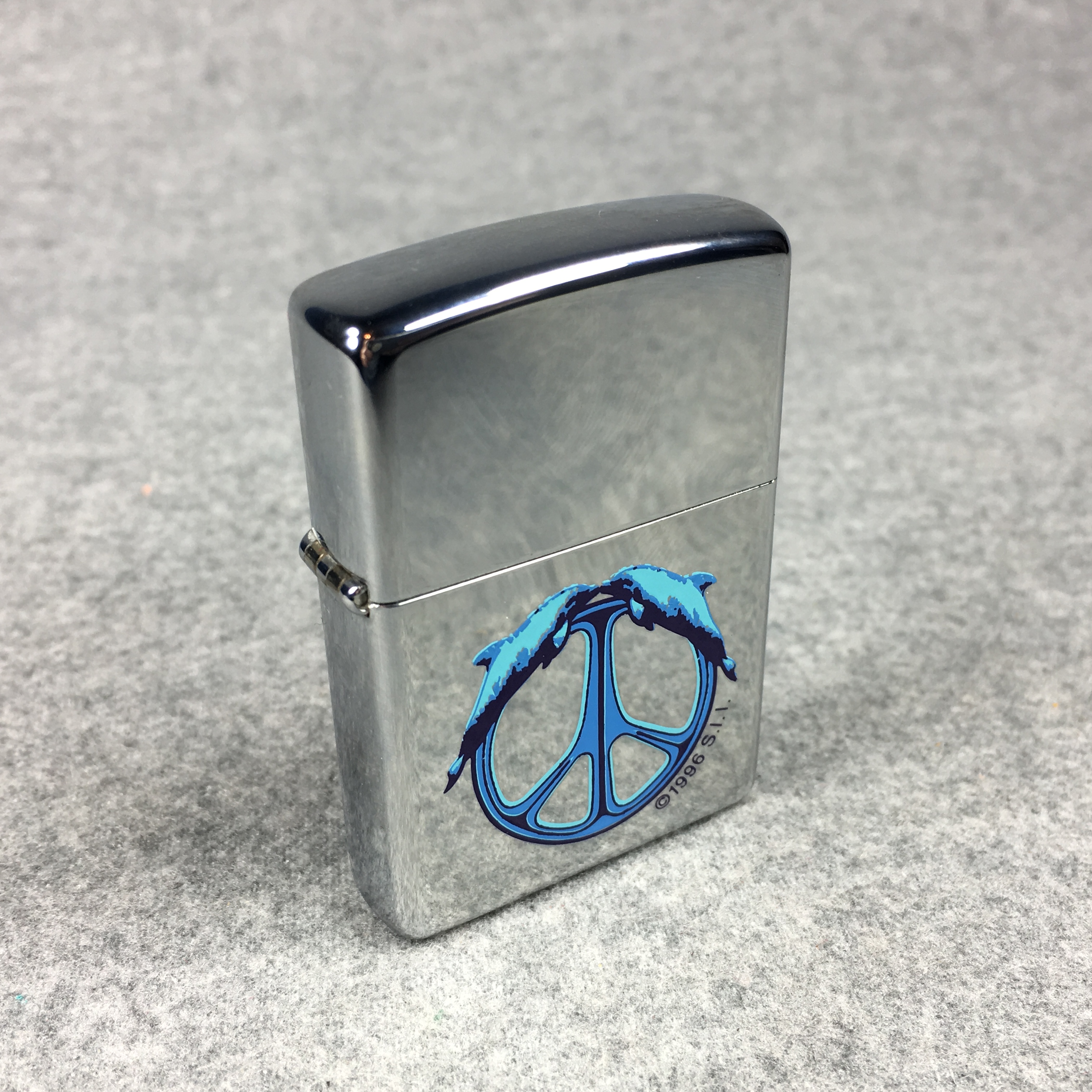 You have: ZIPPO PEACE DOLPHINS Polished Chrome Lighter (Zippo, 1996)