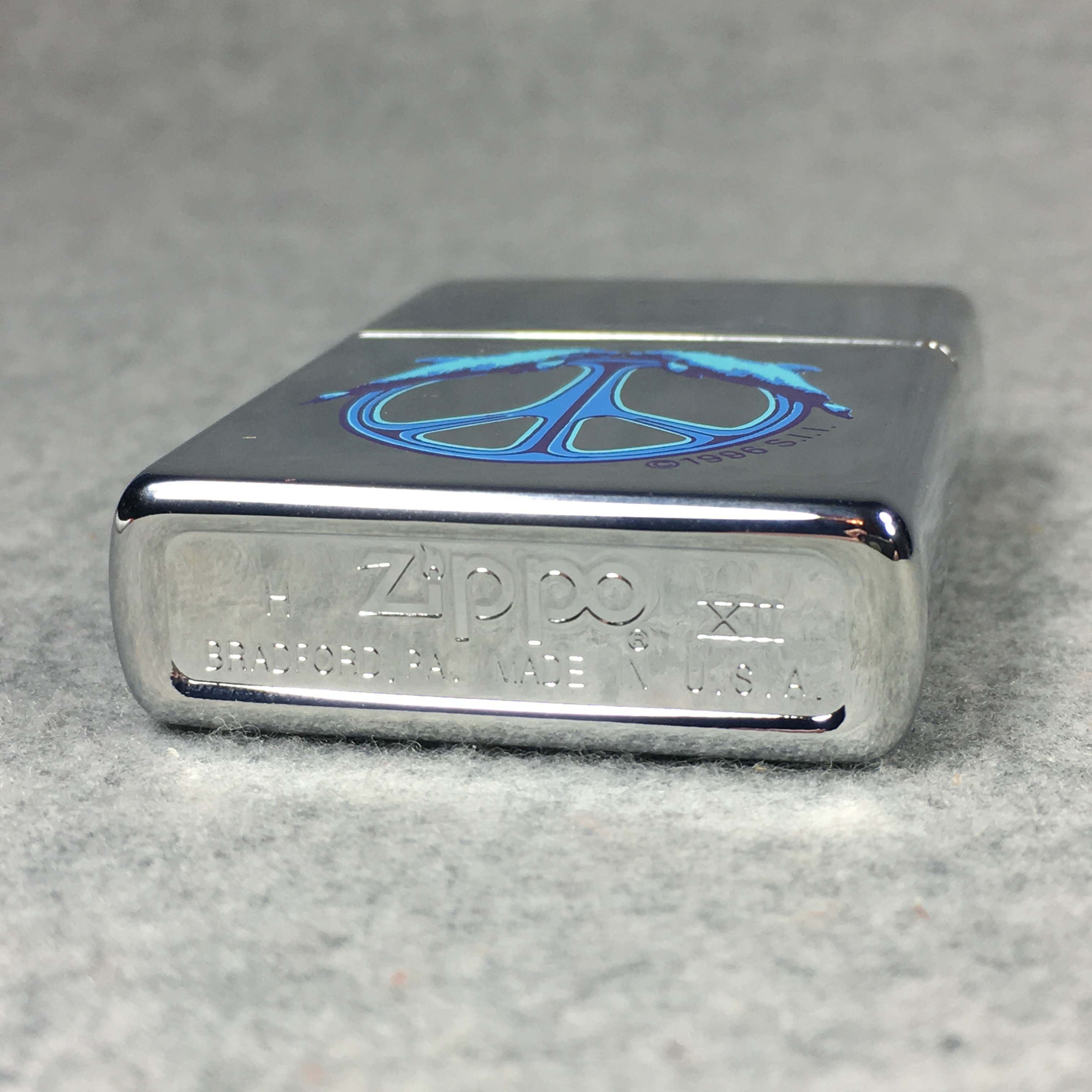 December 07, 2025 - ZIPPO PEACE DOLPHINS Lighter. Polished Chrome finish over Solid Brass. Standard size 1-7/16 inches wide by 2-1/4 inches high. Bottom of lighter reads: H Zippo XII Bradford, PA. Made in U.S.A. Sealed, no box.