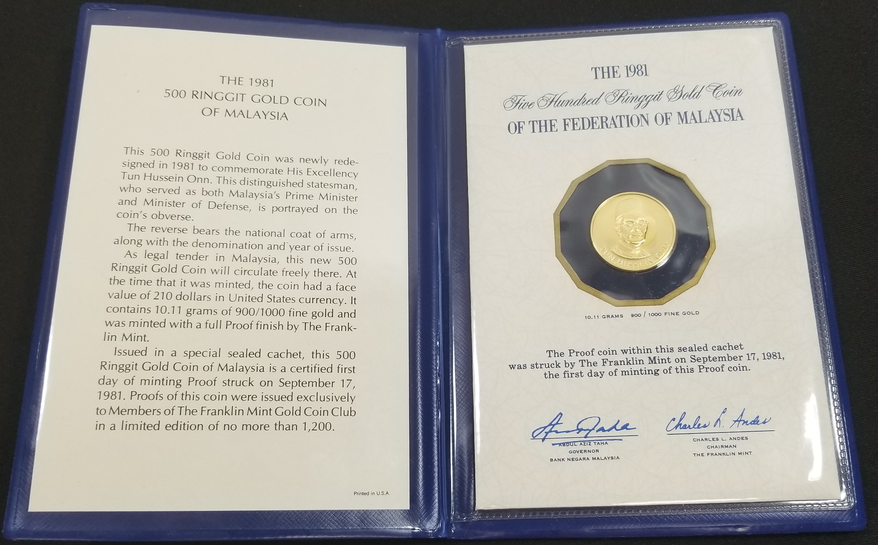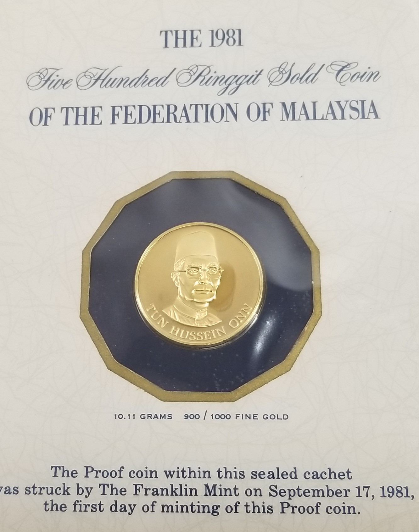 You have: (KM-31) 1981 MALAYSIA 500 Ringgit Gold Proof Coin (10.11 grams .900 fine)