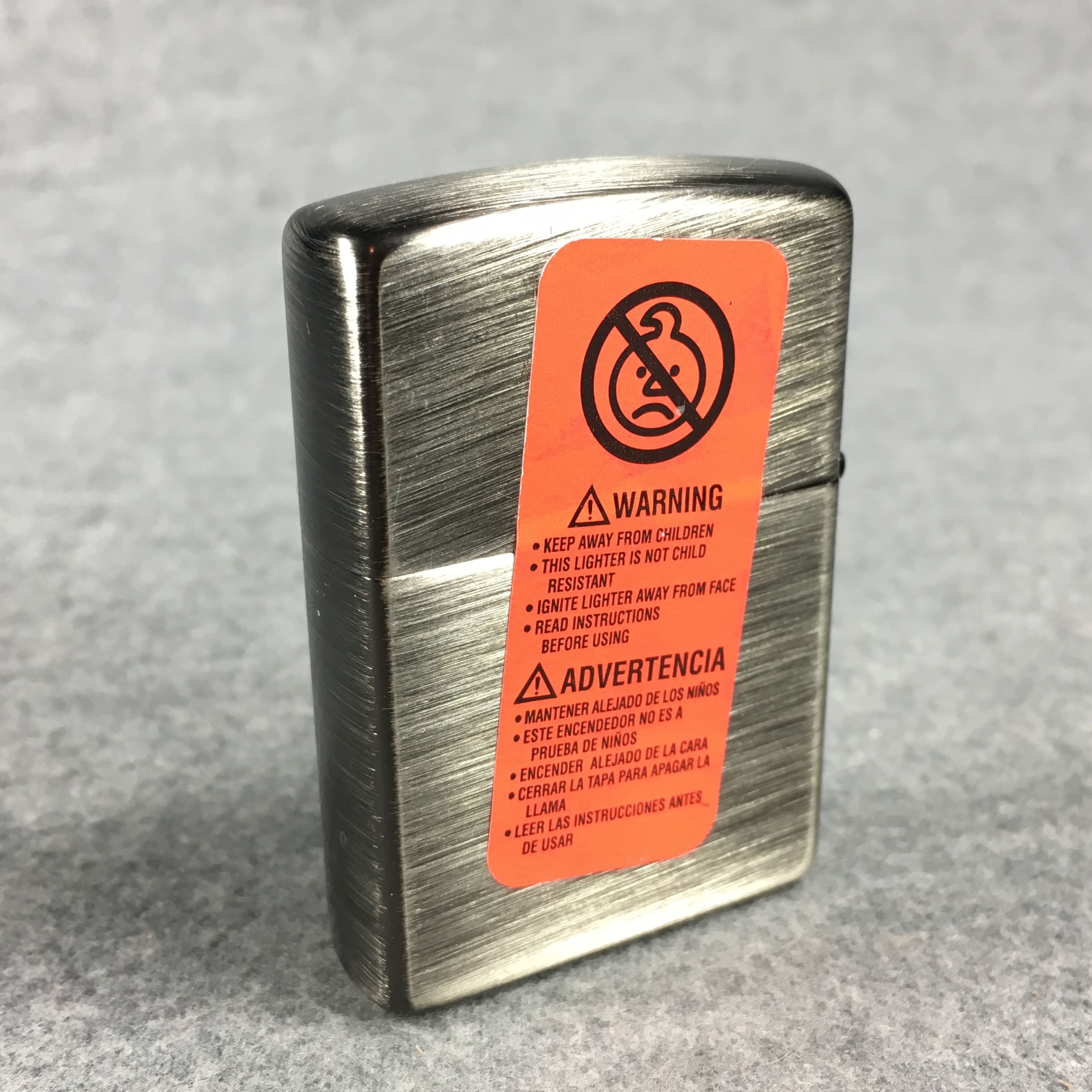 December 07, 2025 - ZIPPO Lighter. Gray Brushed Chrome finish over solid brass. Standard size 1-7/16 inches wide by 2-1/4 inches high. Bottom of lighter reads: E Zippo 06 BRADFORD, PA. MADE IN U.S.A. Sealed, no box.