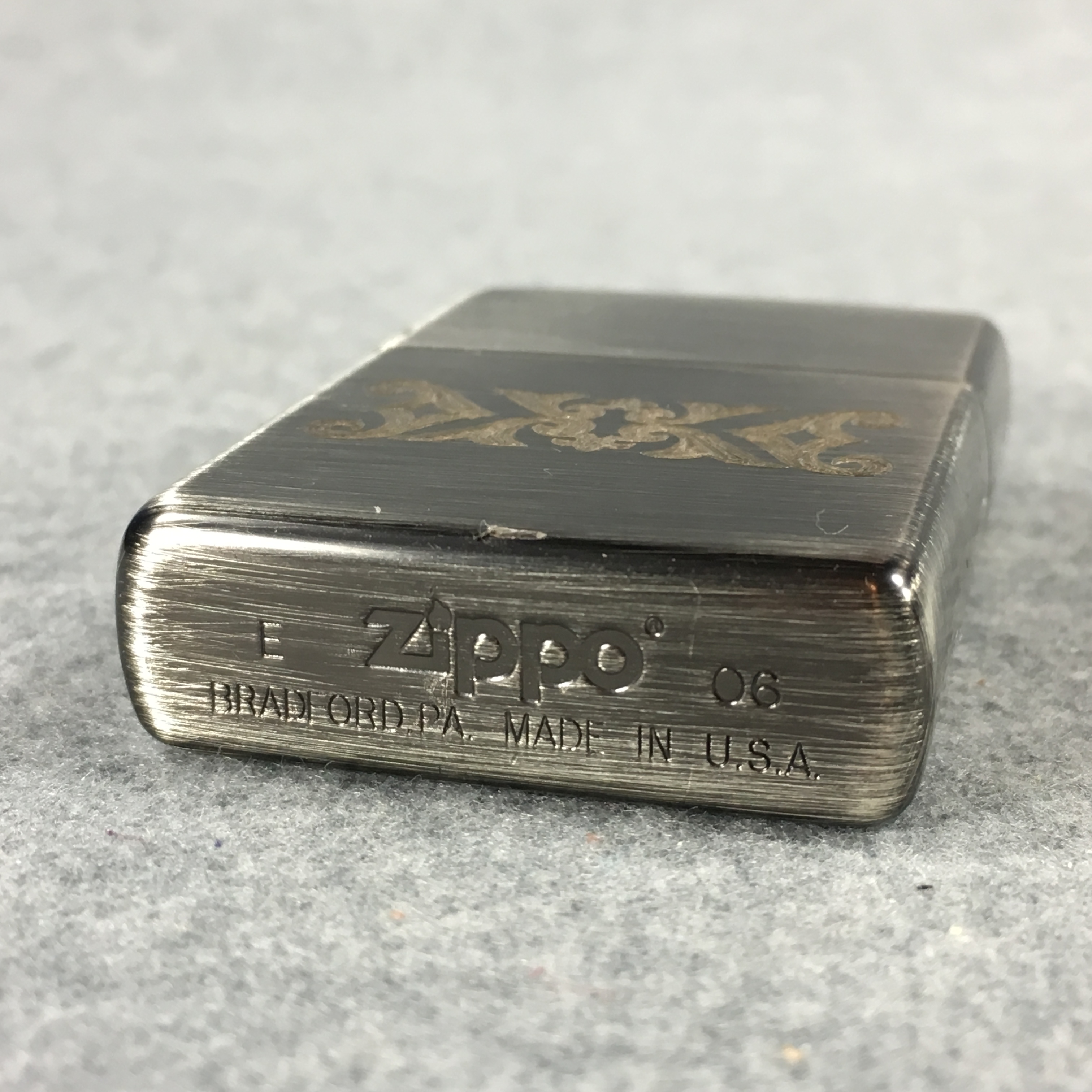 FRONT LASER ETCHED SCROLL Gray Brushed Chrome Lighter (Zippo, 2006)
