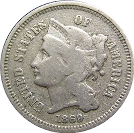 You have: USA 1869 3 Cent Nickel 9 over 8