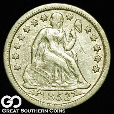 USA 1853 Seated Liberty Dime with arrows