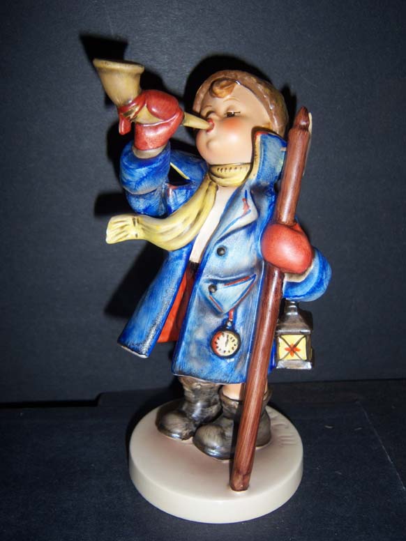 January 16, 2026 - Old name: "Night Watchman."  There are some variations in color of mittens.  Originally modeled by master sculptor Arthur Moeller in 1935.  Older models usually incised 15/2 instead of 15/II.  A new small size (15 2/0) "Hear Ye, Hear Ye" was first issued in 1985 (A separate page is provided especially for this size figurine).  A few sample pieces have been found decorated with bright colors and glossy finish of the "Faience" technique.  Size (15/I) was listed as "Temporarily Withdrawn" (TW) from production in January 1999.