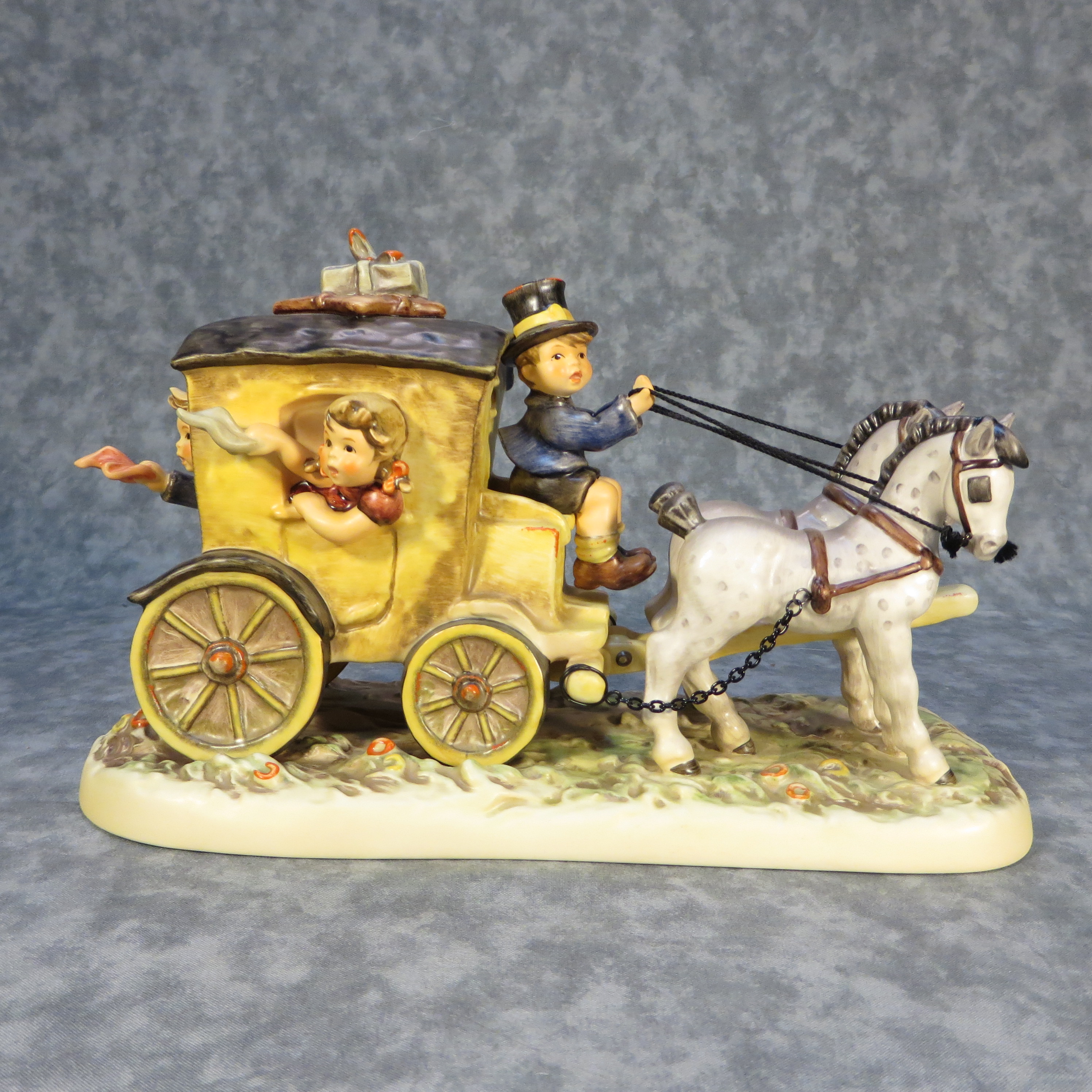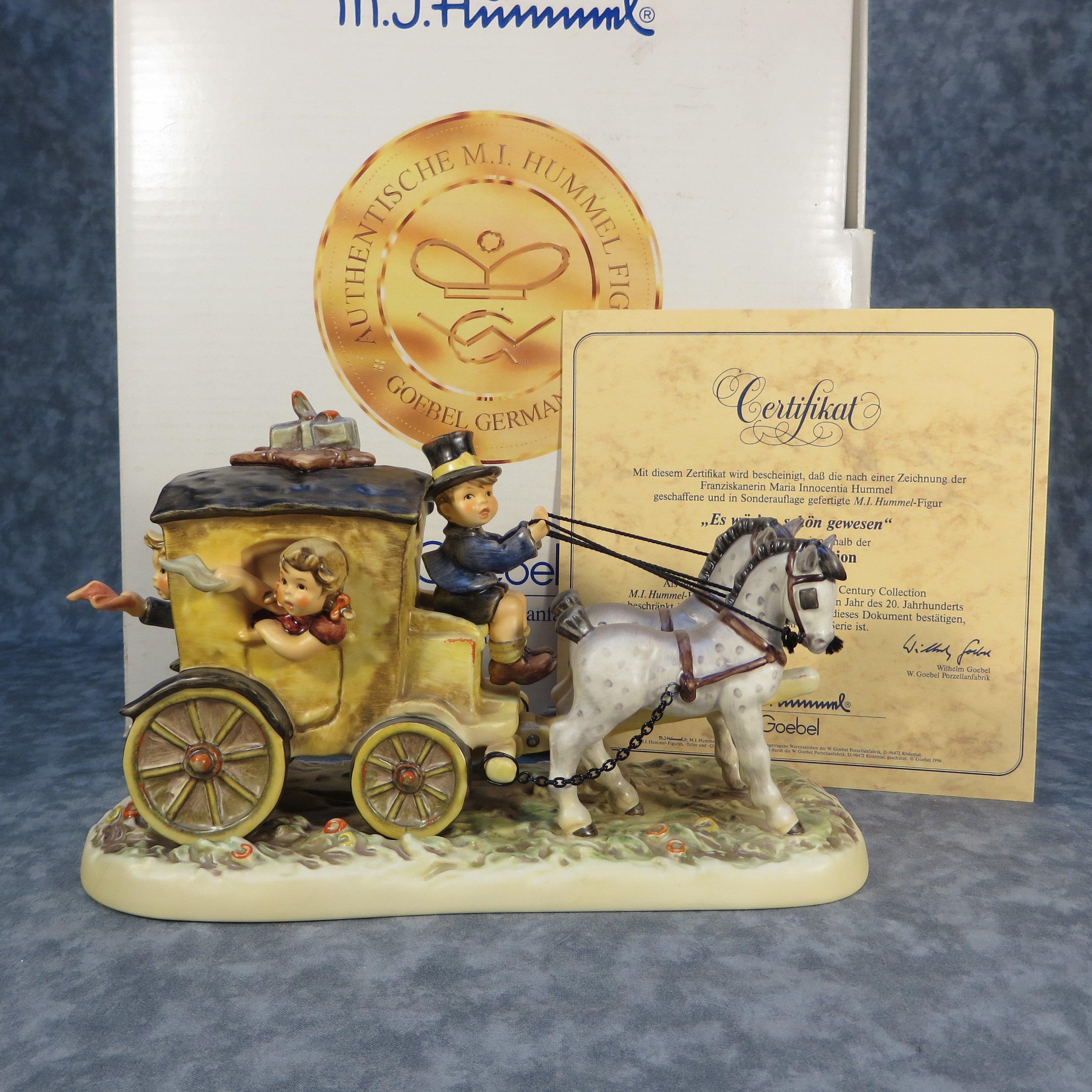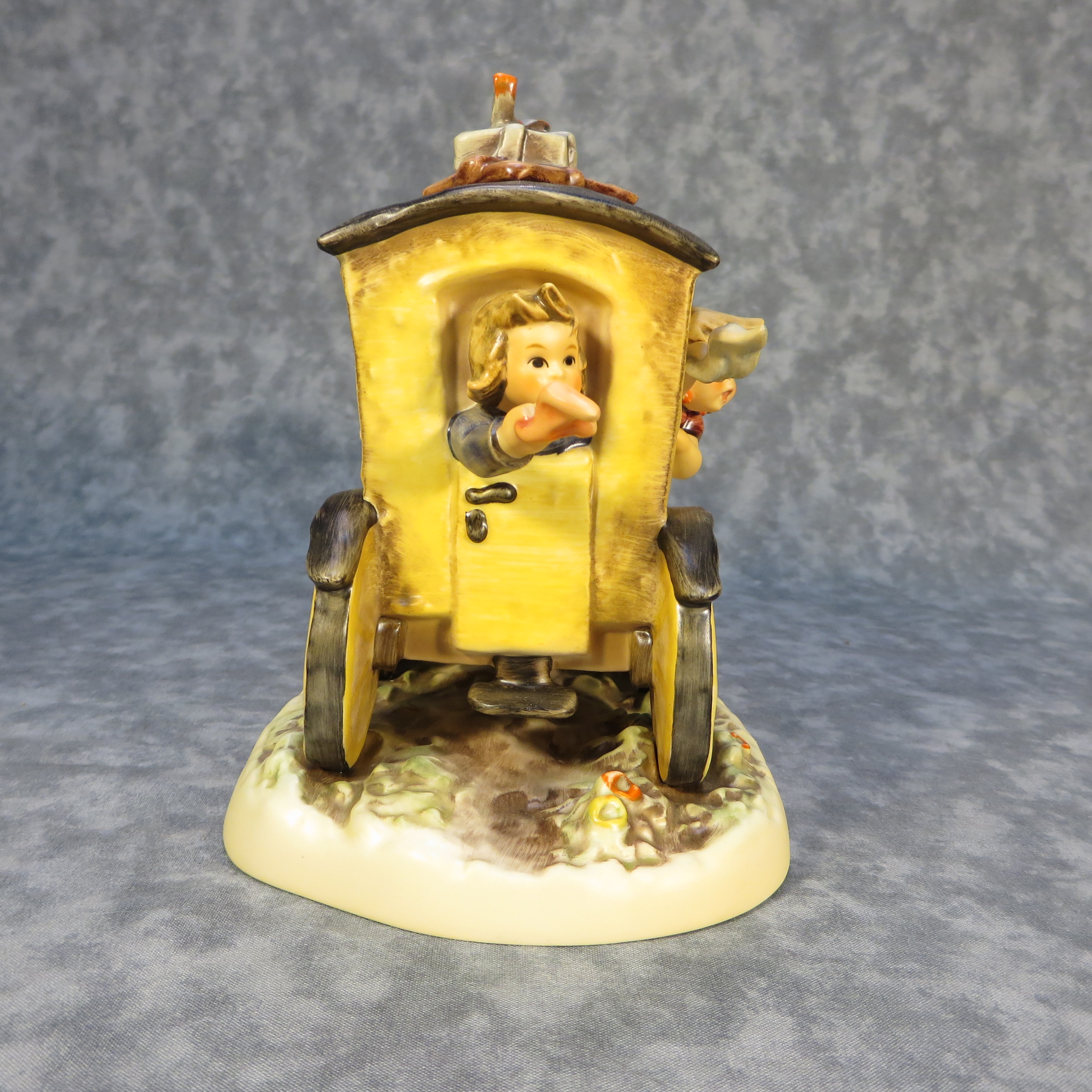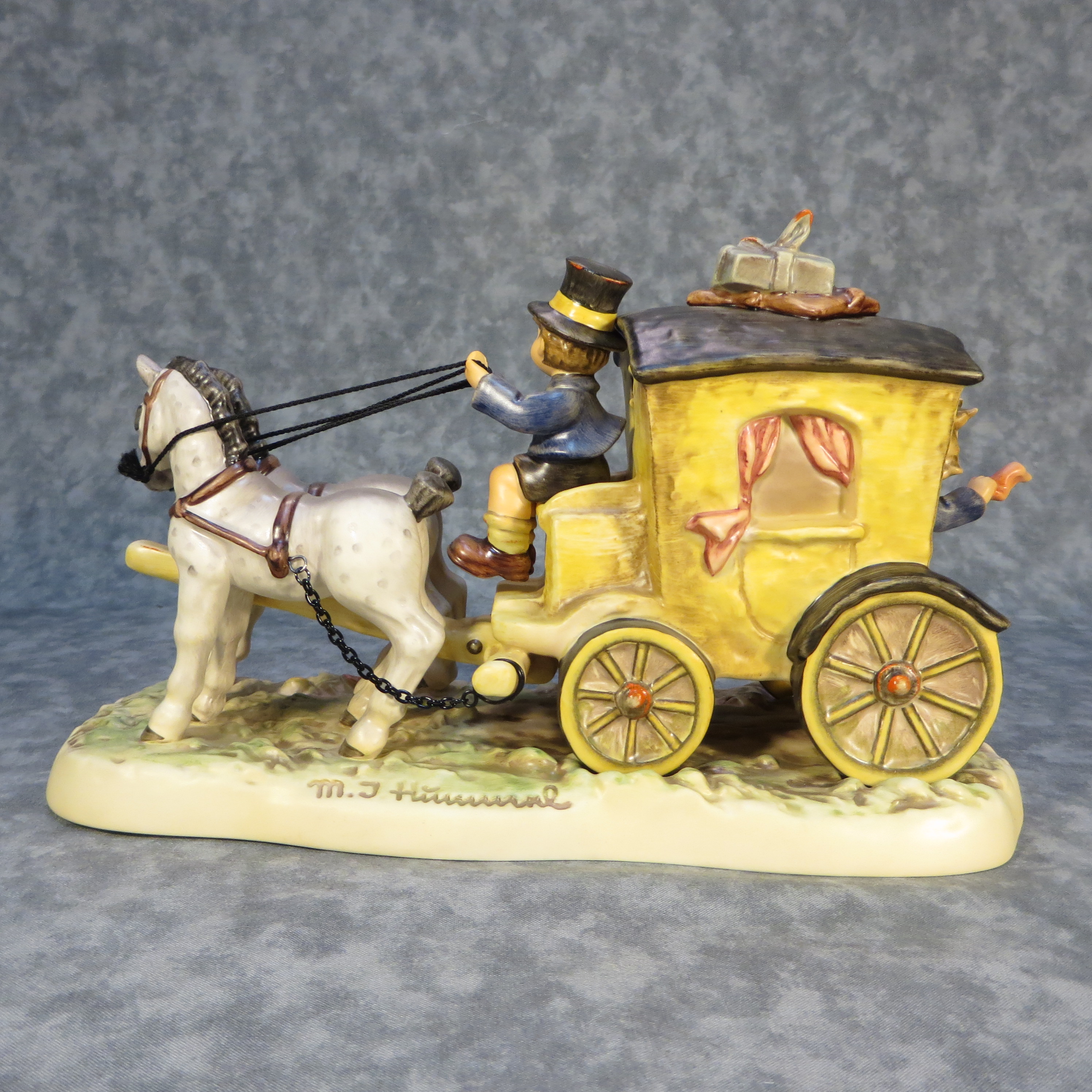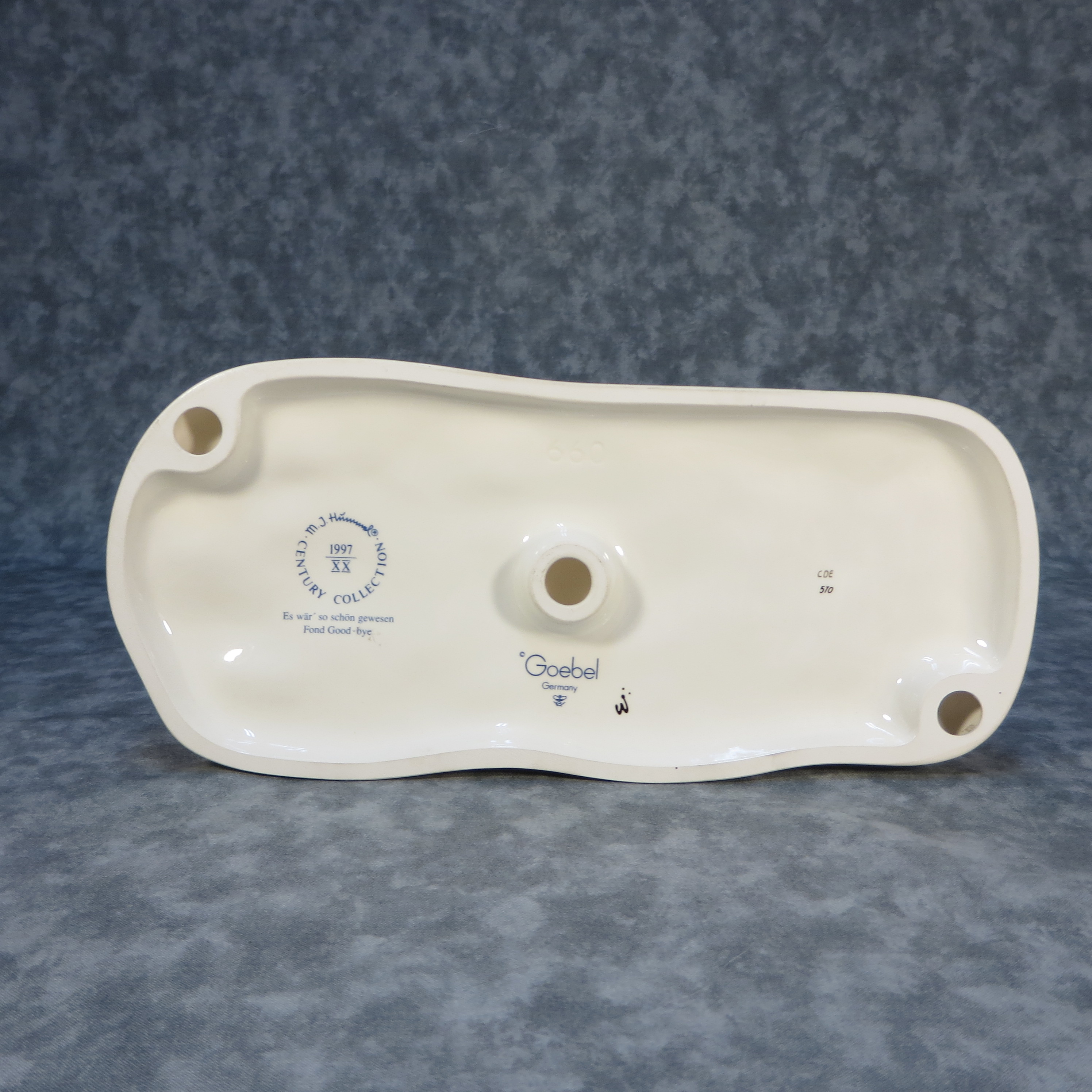 March 13, 2026 - 11 inches long x 6-7/8 inches high x 5 inches wide. Century Collection #12. Base incised 660 and 1992. Goebel TMK 7 trademark and 'M.I. Hummel / Century Collection / 1997 / XX / Fond Goodbye' imprinted in blue on bottom of base. Painter hand-initialed on bottom of base.