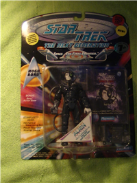 Retail repaint. Black body wiht purple armour. Figure is wearing helmet inside the package, with the space for the helmet in the inner bubble removed. Long black hair, translucent pink wings, Japanese script on chest armour.