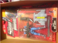 In white tank top and fatigues. Spring 2001; based on animated TV series.