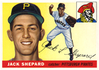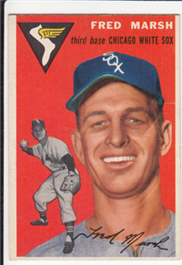 This card is one of 250 cards issued in the 1954 Topps set. This set was the first issue to use two player pictures on the front and is very popular today. Solid color backgrounds frame both color head-and-shoulders and black and white action pictures of the player. The player's name, position, team and team logo appear at the top. Backs include an "Inside Baseball" cartoon regarding the player as well as statistics and biography. The cards measure 2-5/8" by 3-3/4" and include manager and coaches cards. This was the first set to use two players together on a modern card; the players were, appropriately, the O'Brien twins.